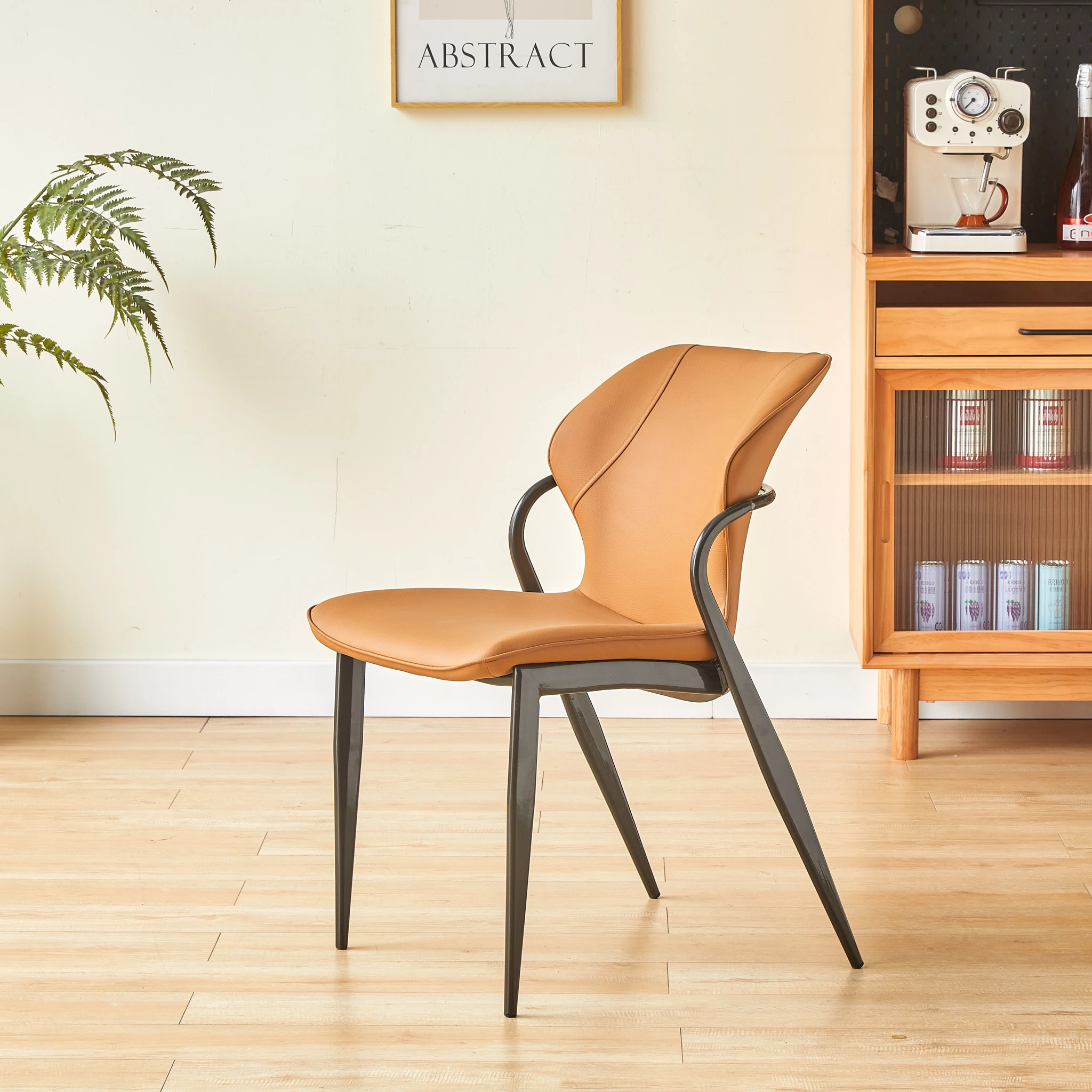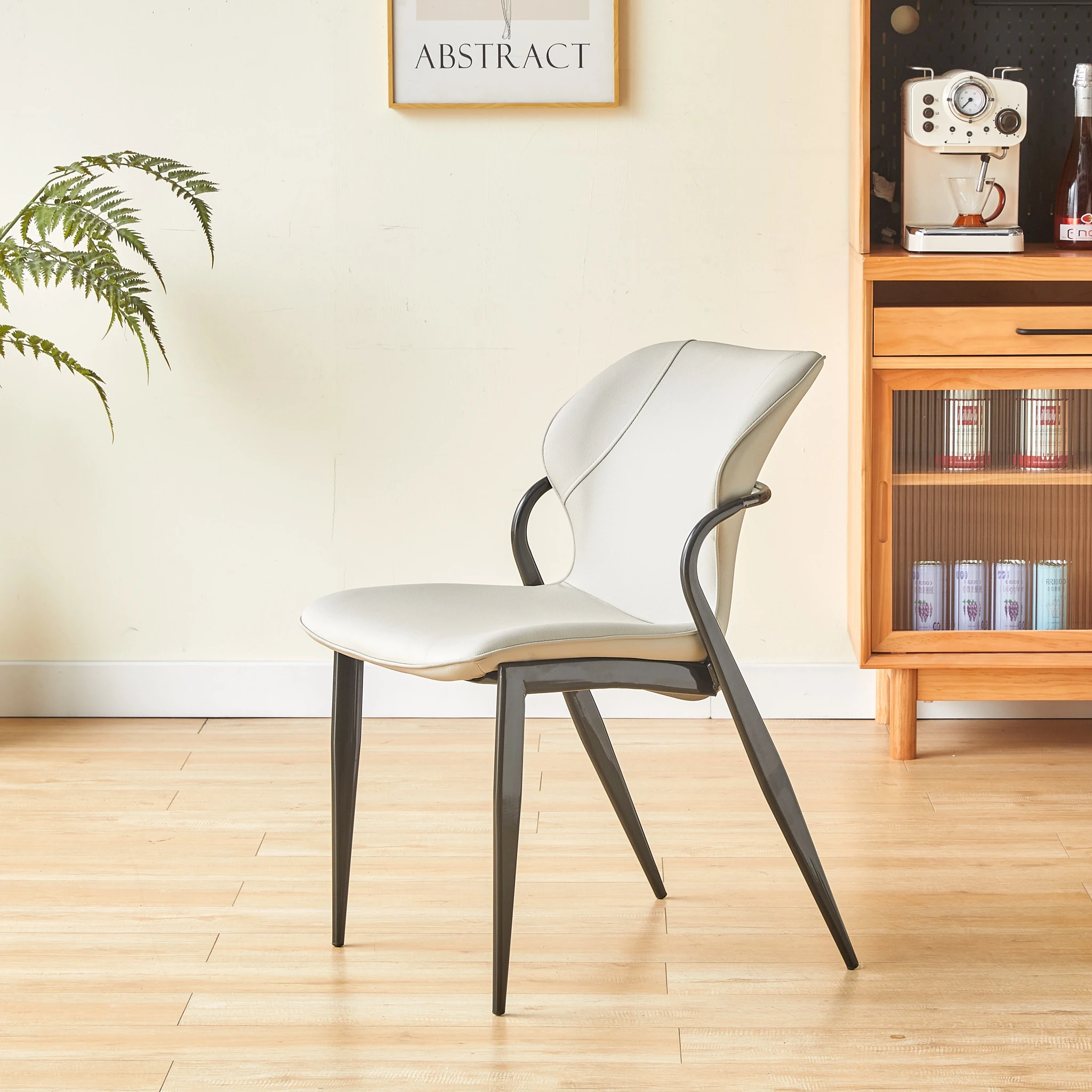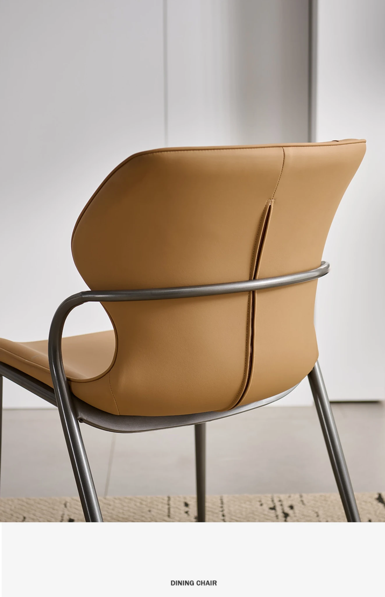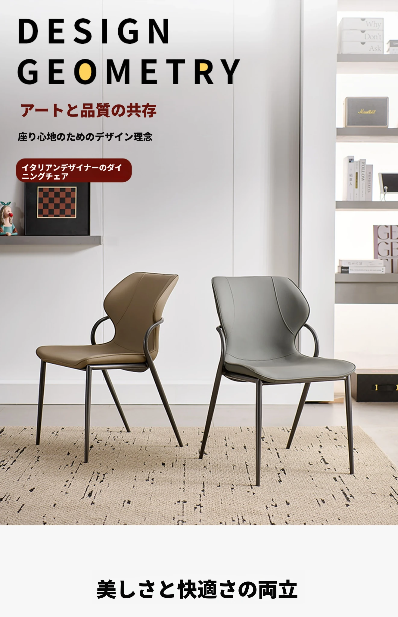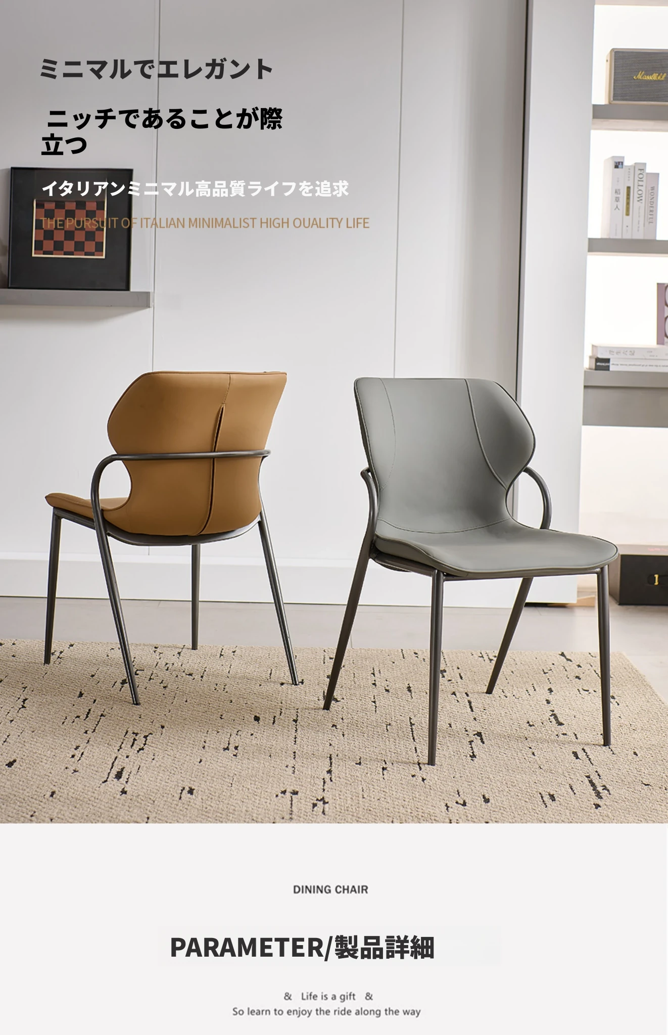 現代的な軽奢華感を持つイタリアンミニマルデザインのダイニングチェア。洗練されたデザイナーによる高級感あふれる一品。リビングやダイニングに最適な背もたれ付き、快適な座り心地を提供します。