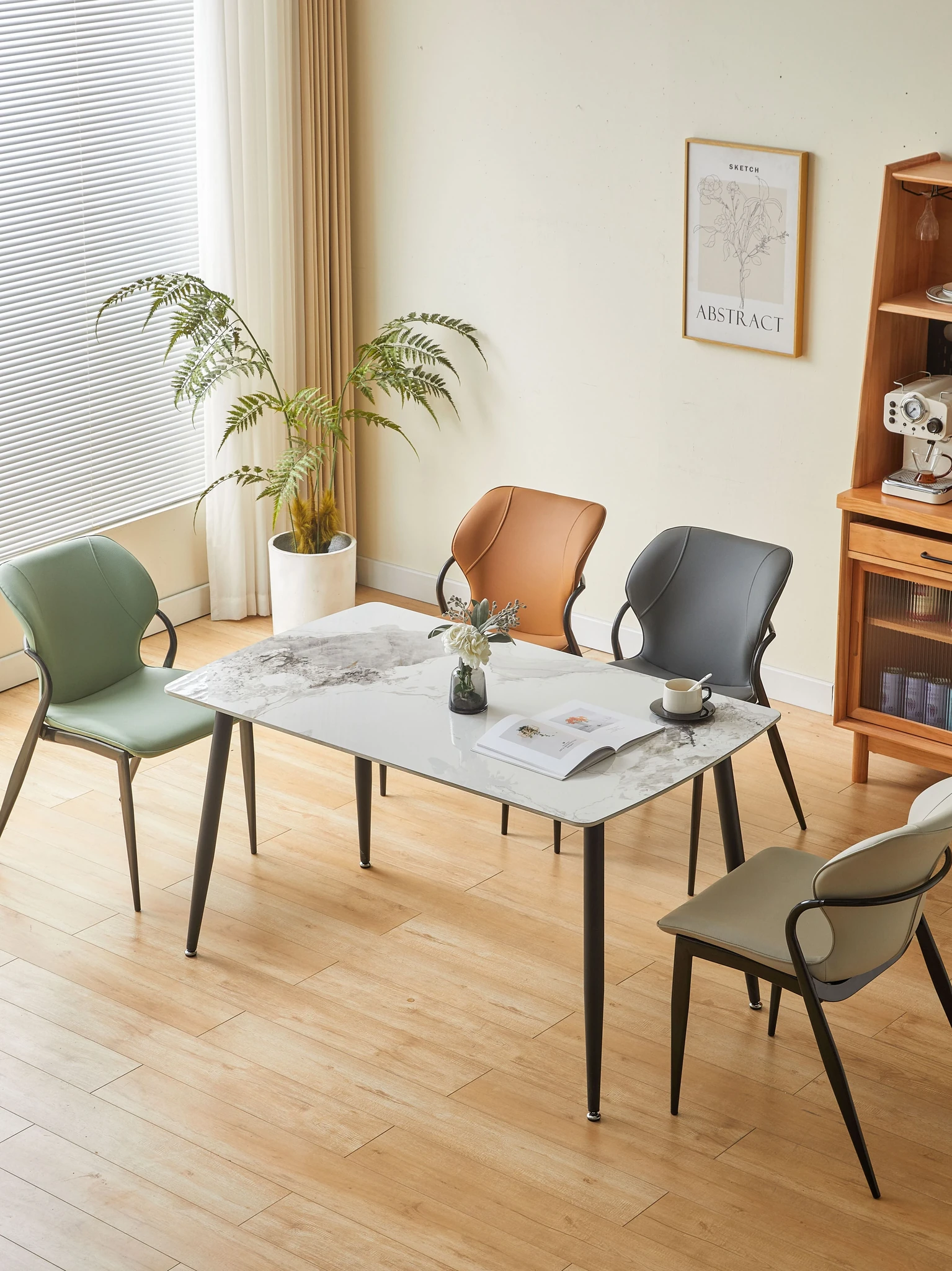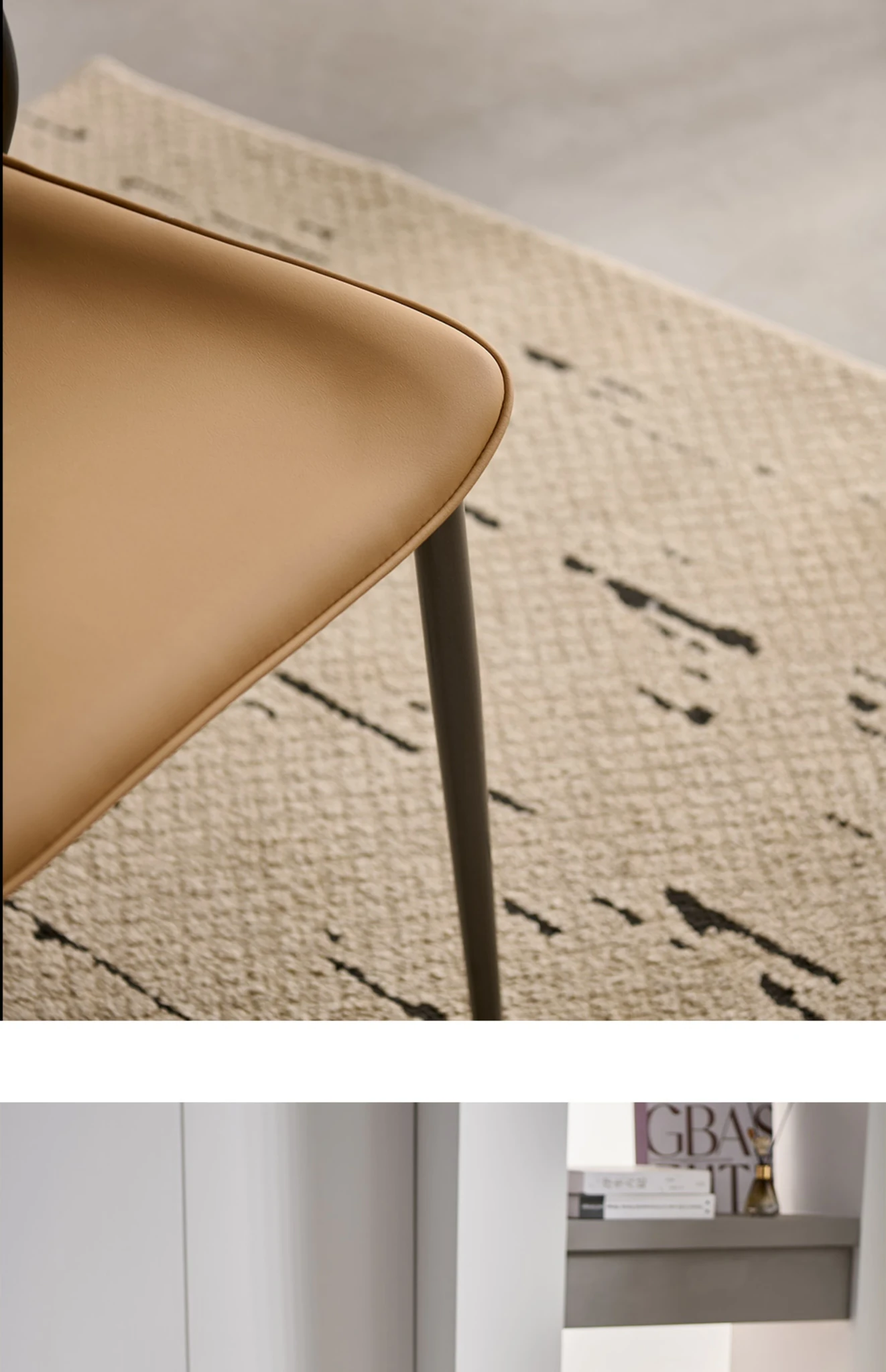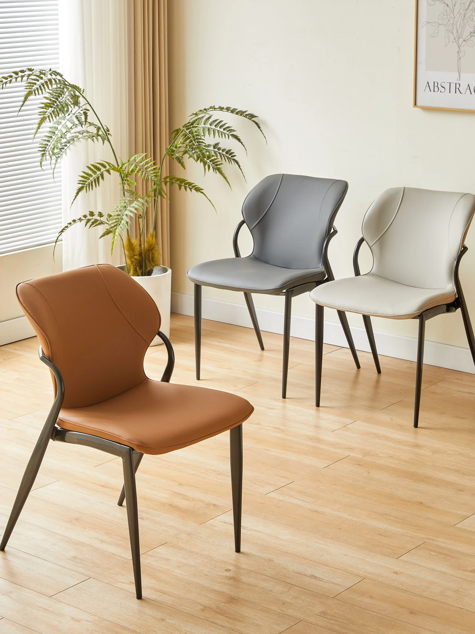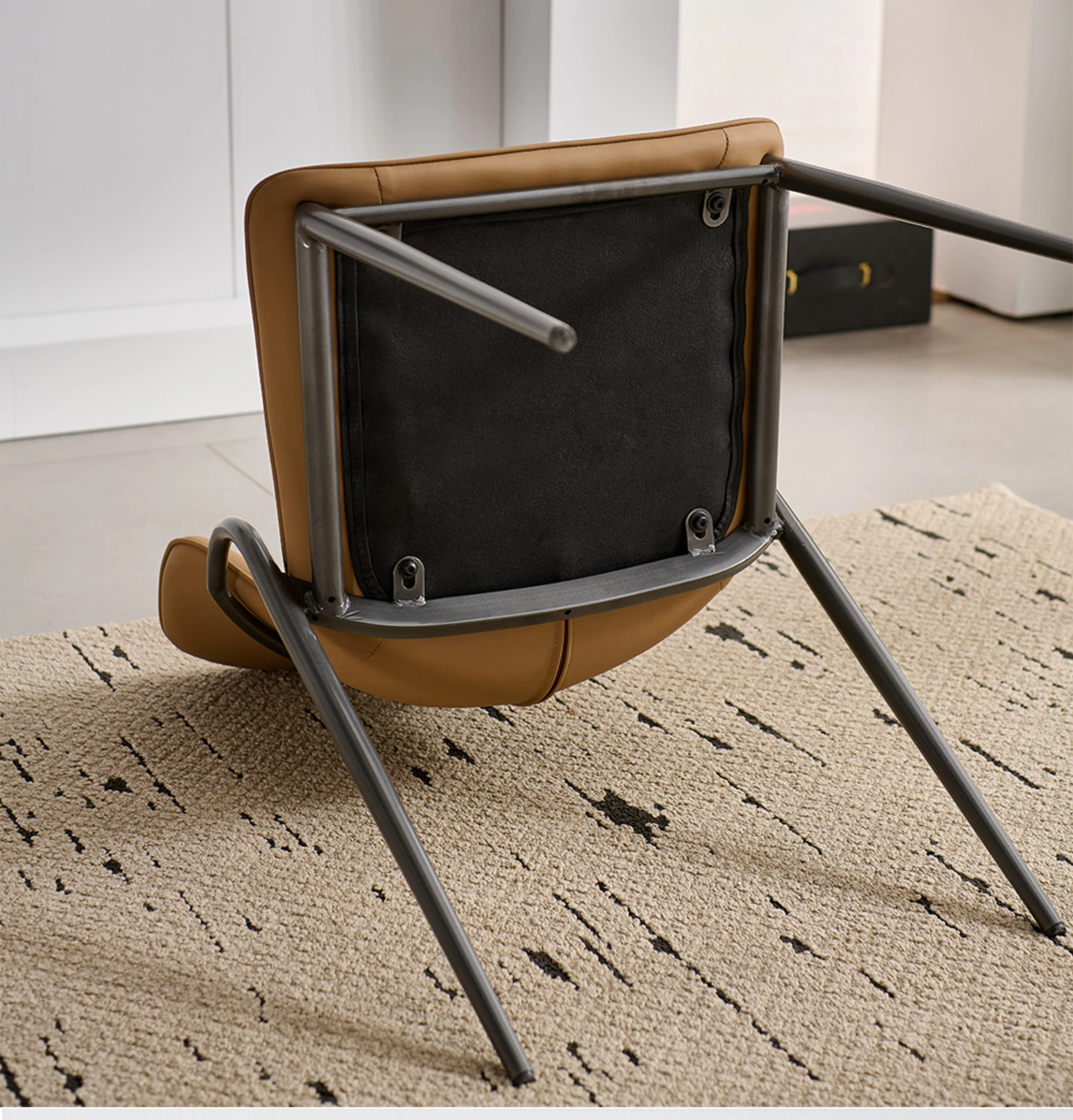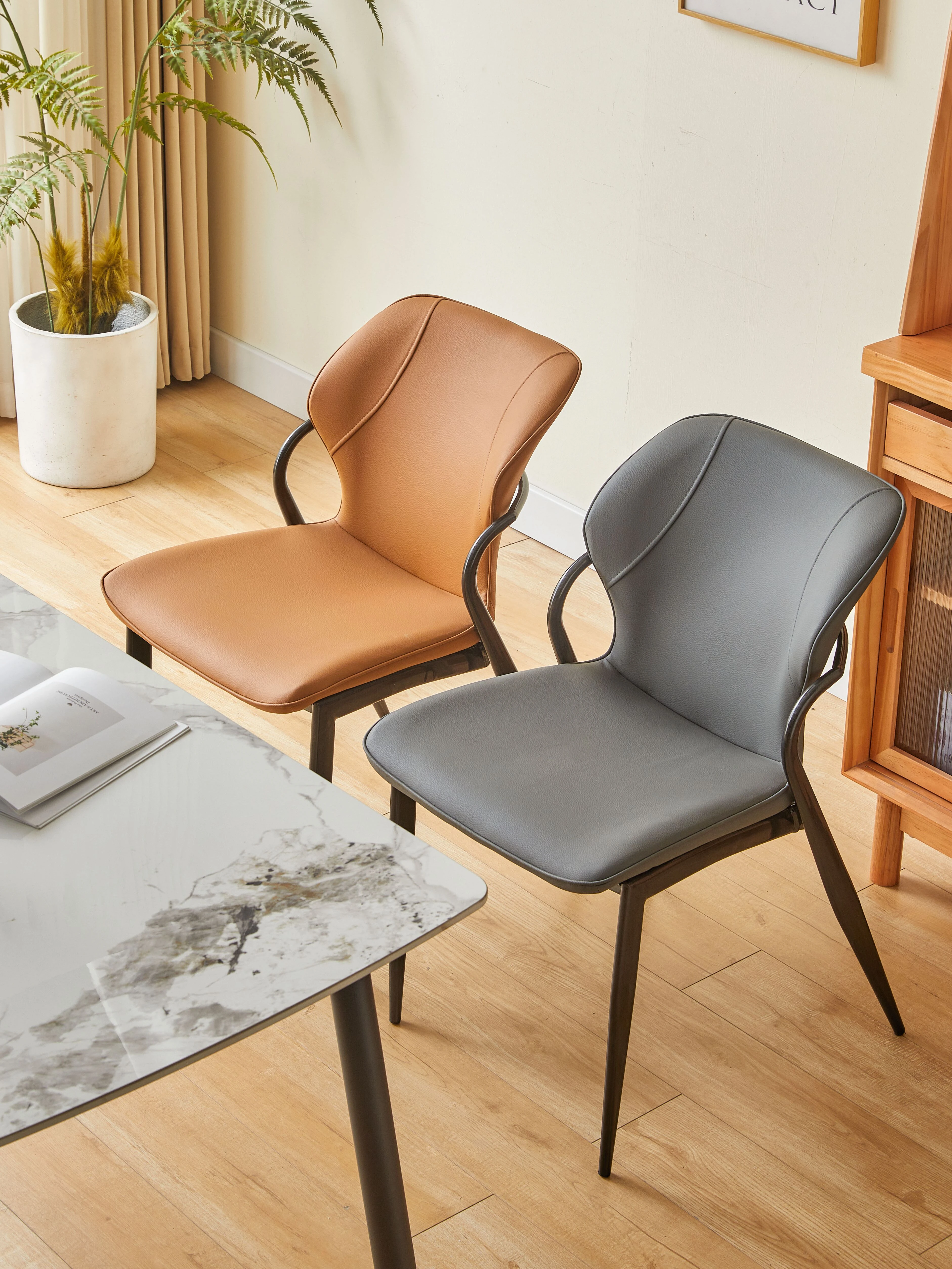 現代的な軽奢華感を持つイタリアンミニマルデザインのダイニングチェア。洗練されたデザイナーによる高級感あふれる一品。リビングやダイニングに最適な背もたれ付き、快適な座り心地を提供します。