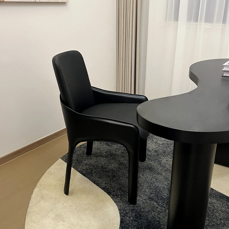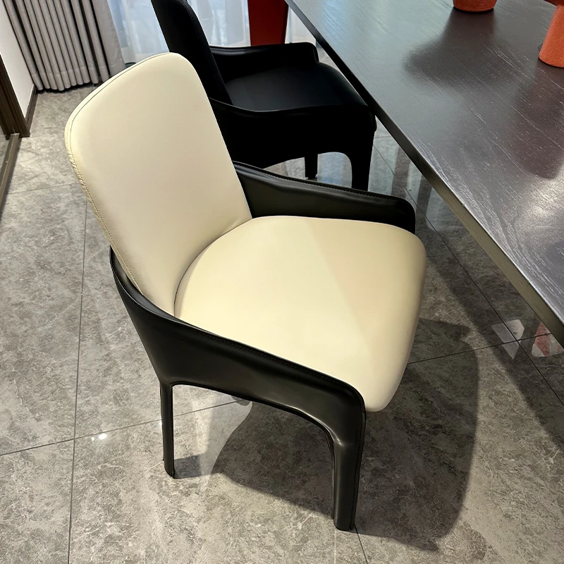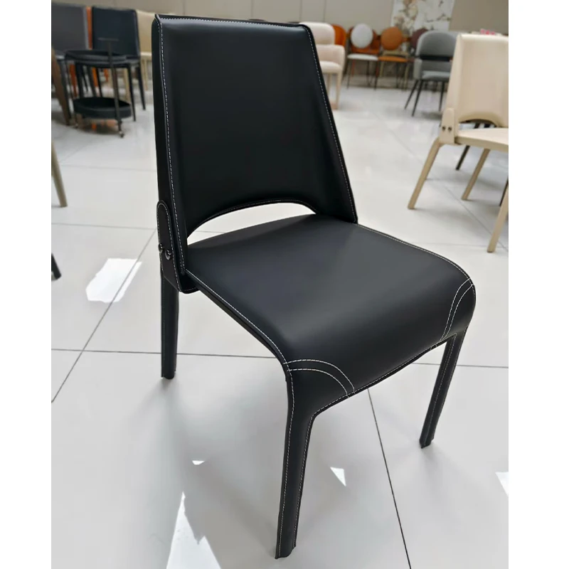 イタリアンミニマリズムのサドルレザー背もたれ付きダイニングチェア – モダンでシンプル、家庭やホテルに最適!寝室や書斎にもぴったりのスタイリッシュな椅子!