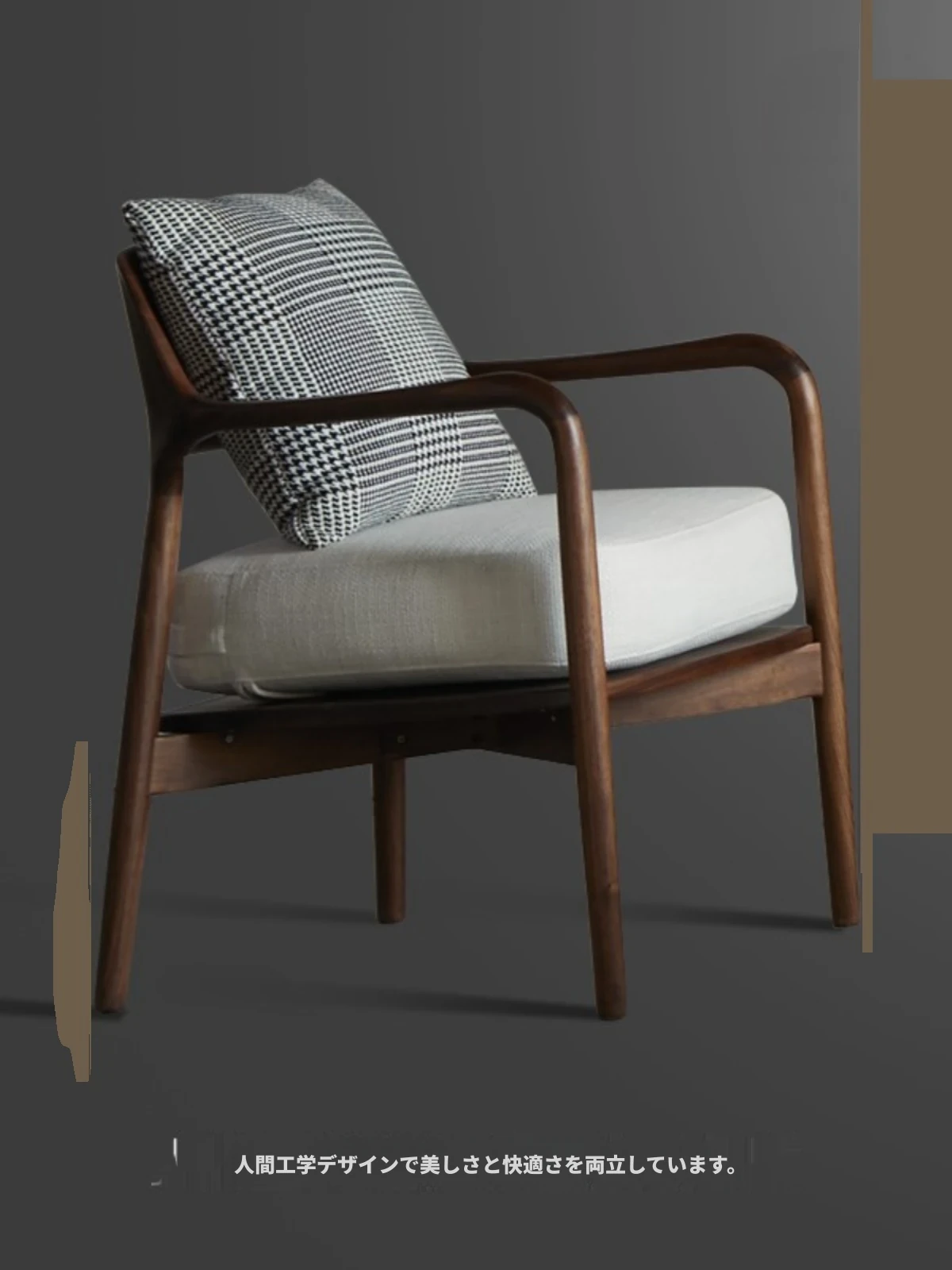 北米産ブラックウォールナットのシンプルでモダンな一人掛けソファチェア - リビングルームにぴったりなファブリック製の快適なリラックスチェア、書斎用にも最適な背もたれ付き!