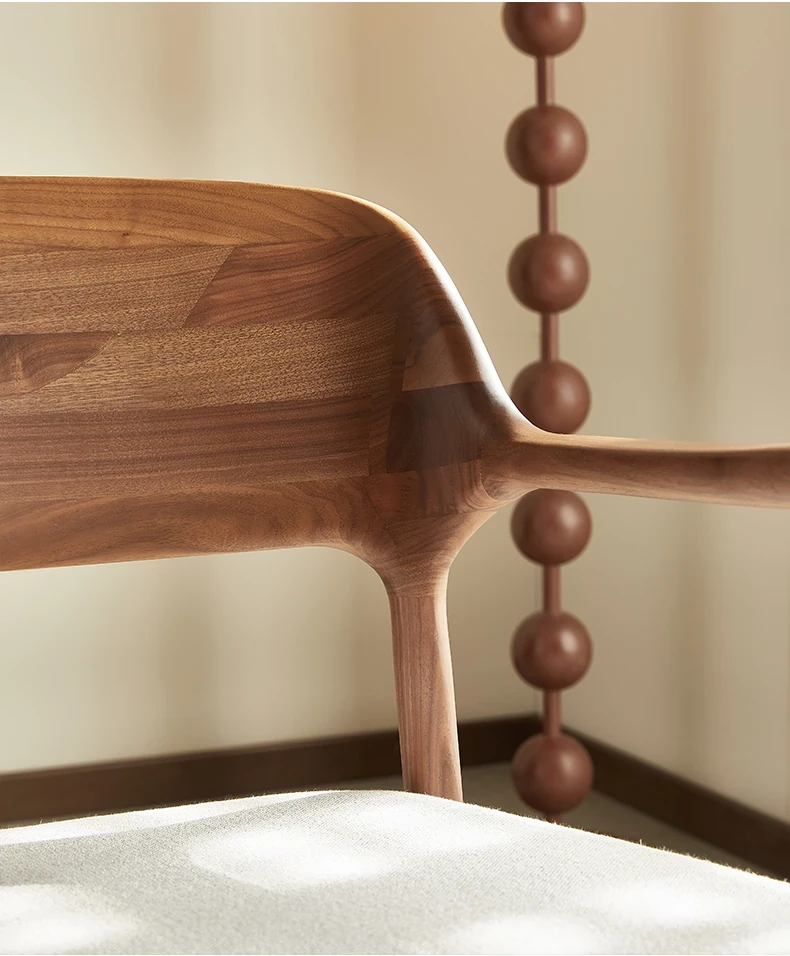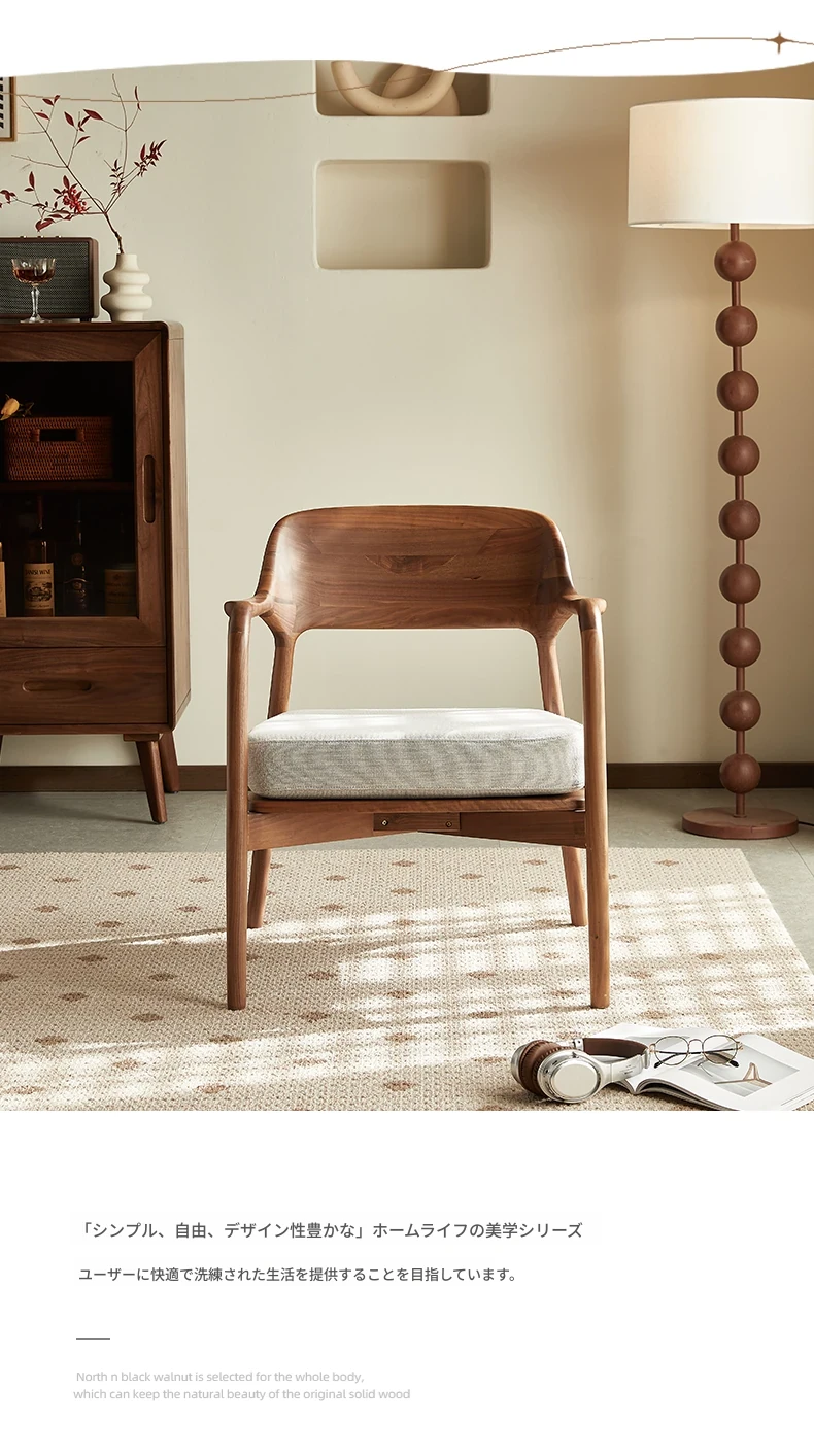 北米産ブラックウォールナット無垢材ダイニングチェア|高級レザーソフトパッド付き|リラックスできるデザイン|茶室やリビングにも最適な主役の椅子!