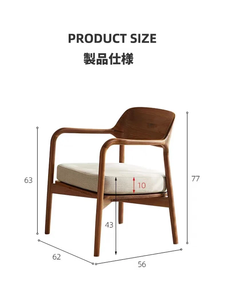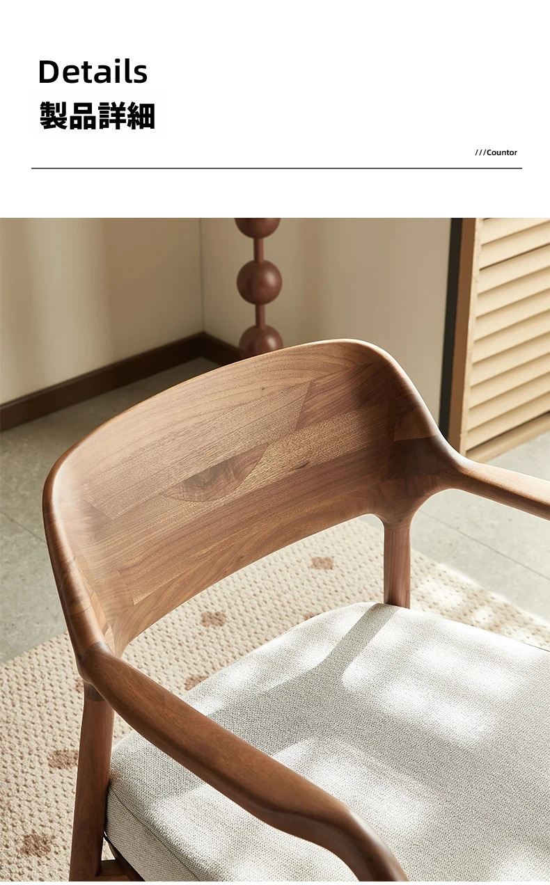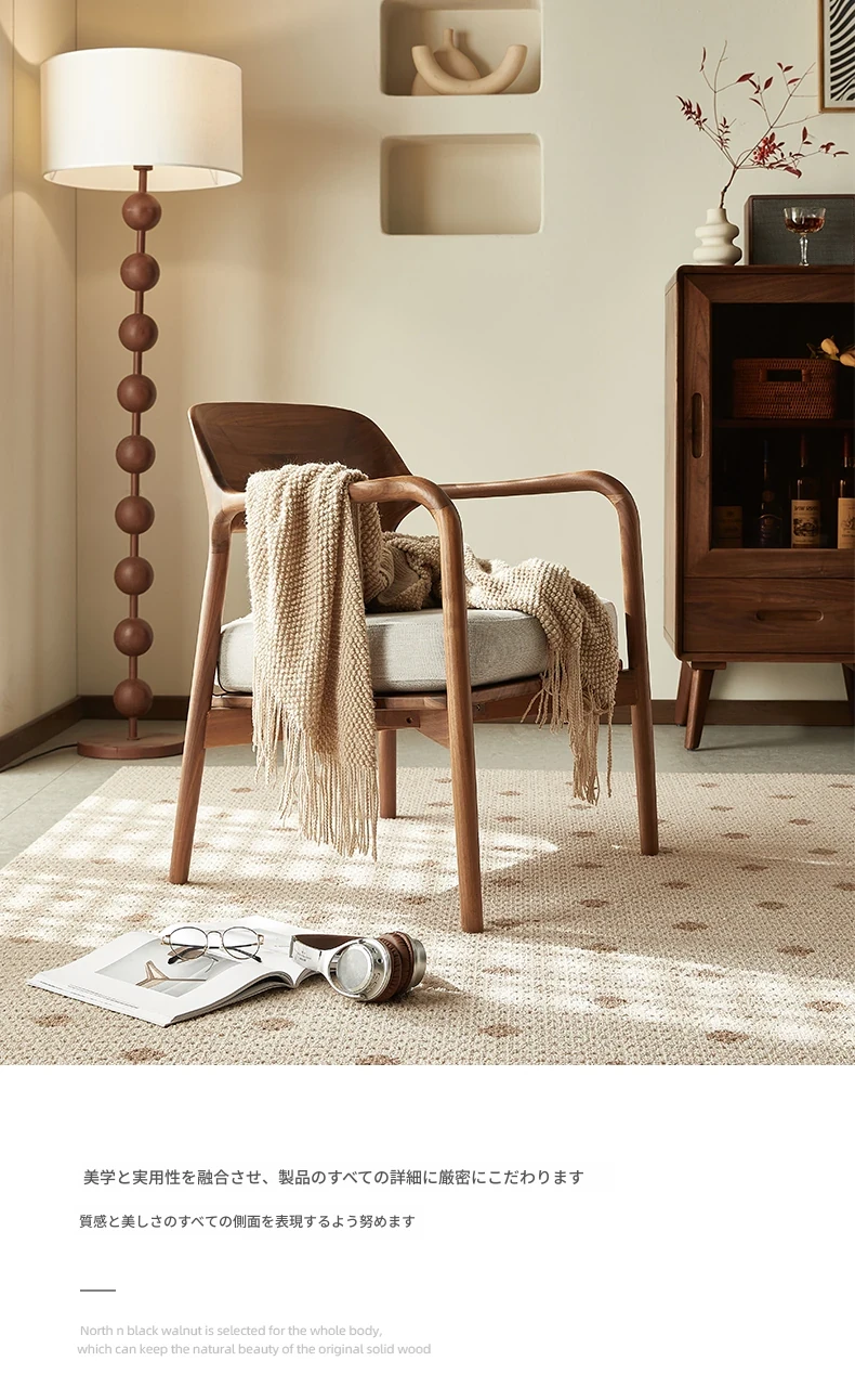 高級感溢れるミニマルデザインのダイニングチェア|快適なアームレスト&背もたれ付き|高品質無垢材使用|家庭やホテルの打ち合わせに最適な一品!