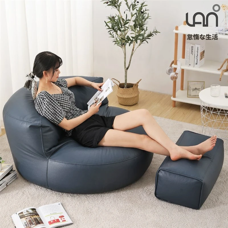 ダークブルーのハーフムーンソファ+丸スツール 超微細ナノソフトレザータイプ
