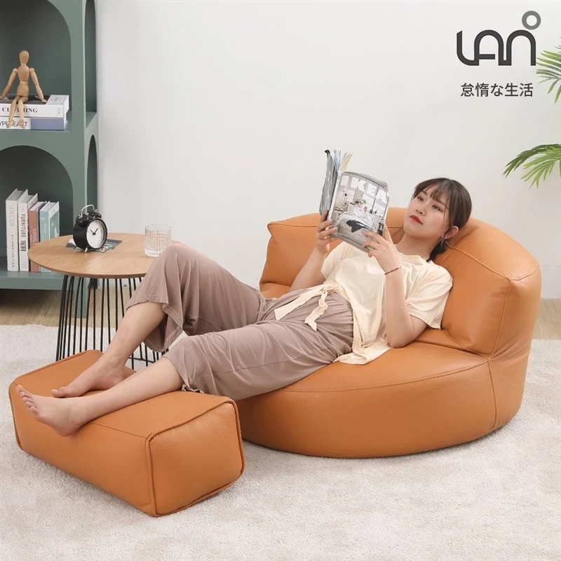 オレンジのハーフムーンソファ+丸スツール 超微細ナノソフトレザータイプ