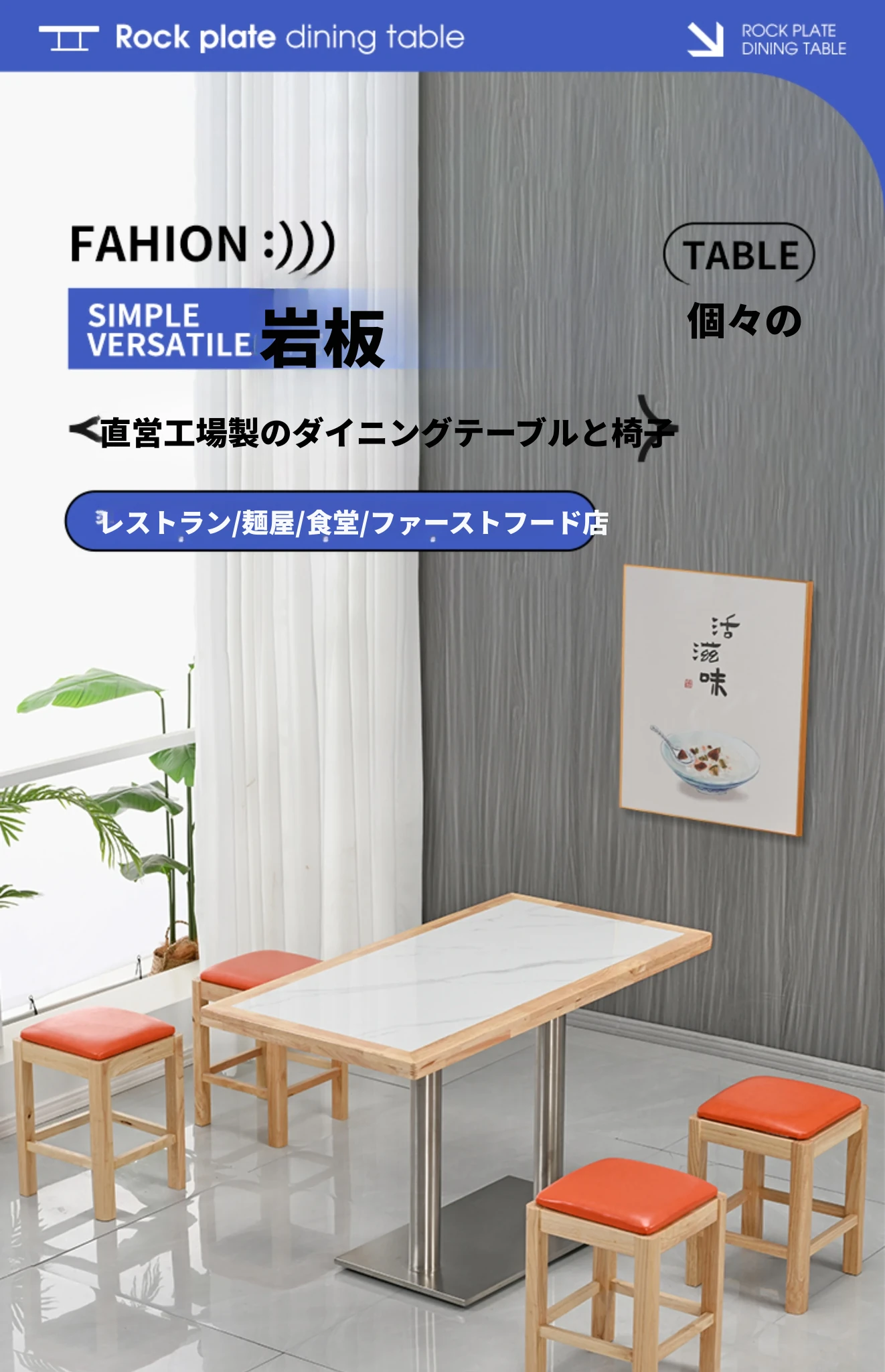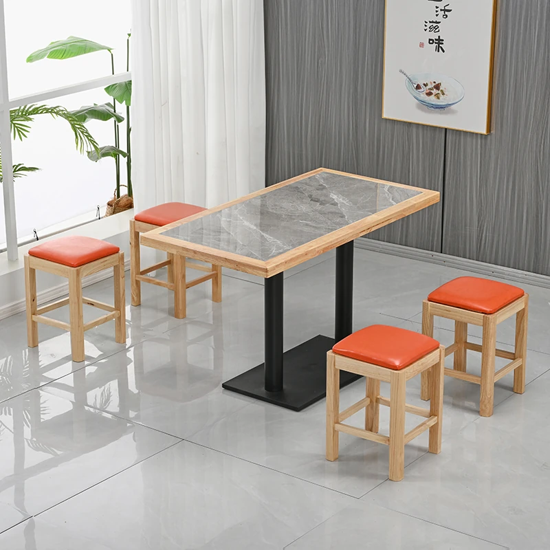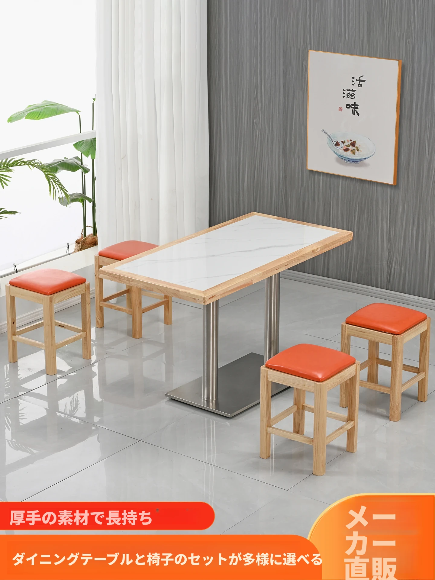 モダンミニマリストの無垢材と石板のカフェ用麻辣烫レストラン向けファーストフード・スナック・麺類・ミルクティー食堂用テーブル&チェア|商業利用に最適!