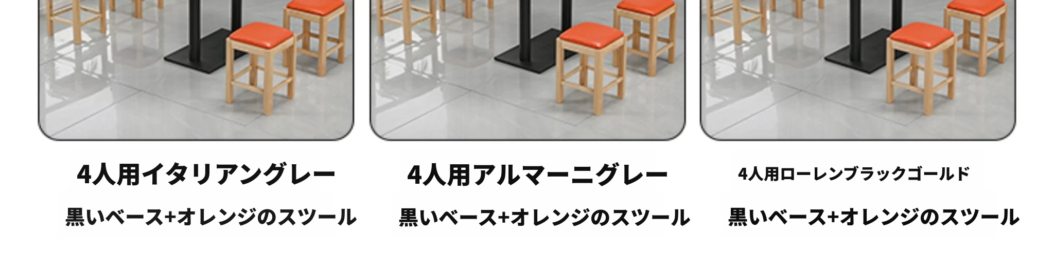 120*70四人イタリアングレー合成天板ベーステーブルオレンジスツール