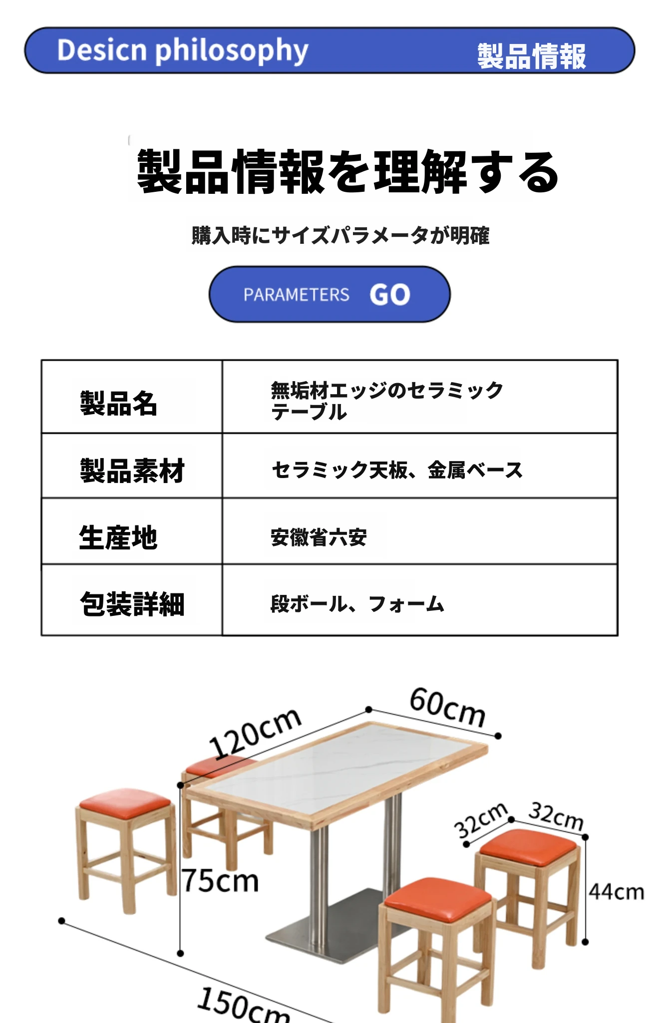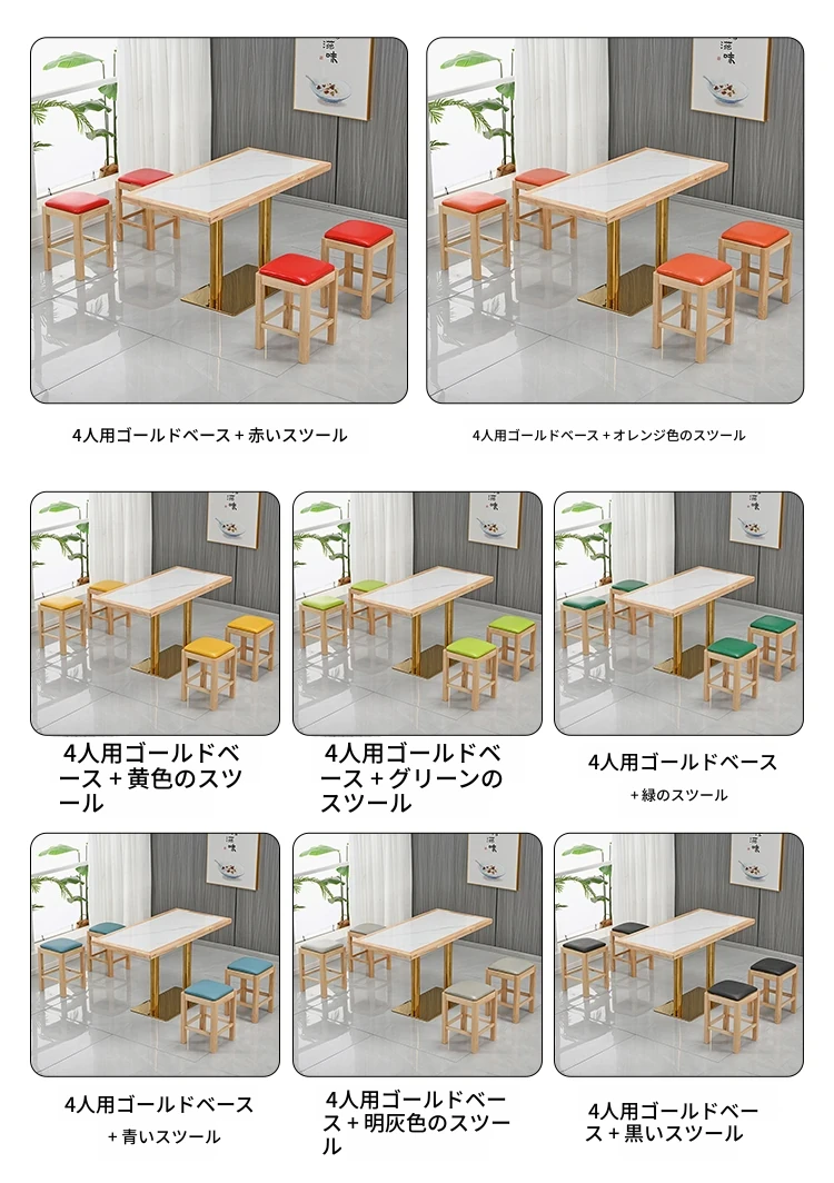 120*60四人ローレンブラックゴールド合成天板ベーステーブルオレンジスツール