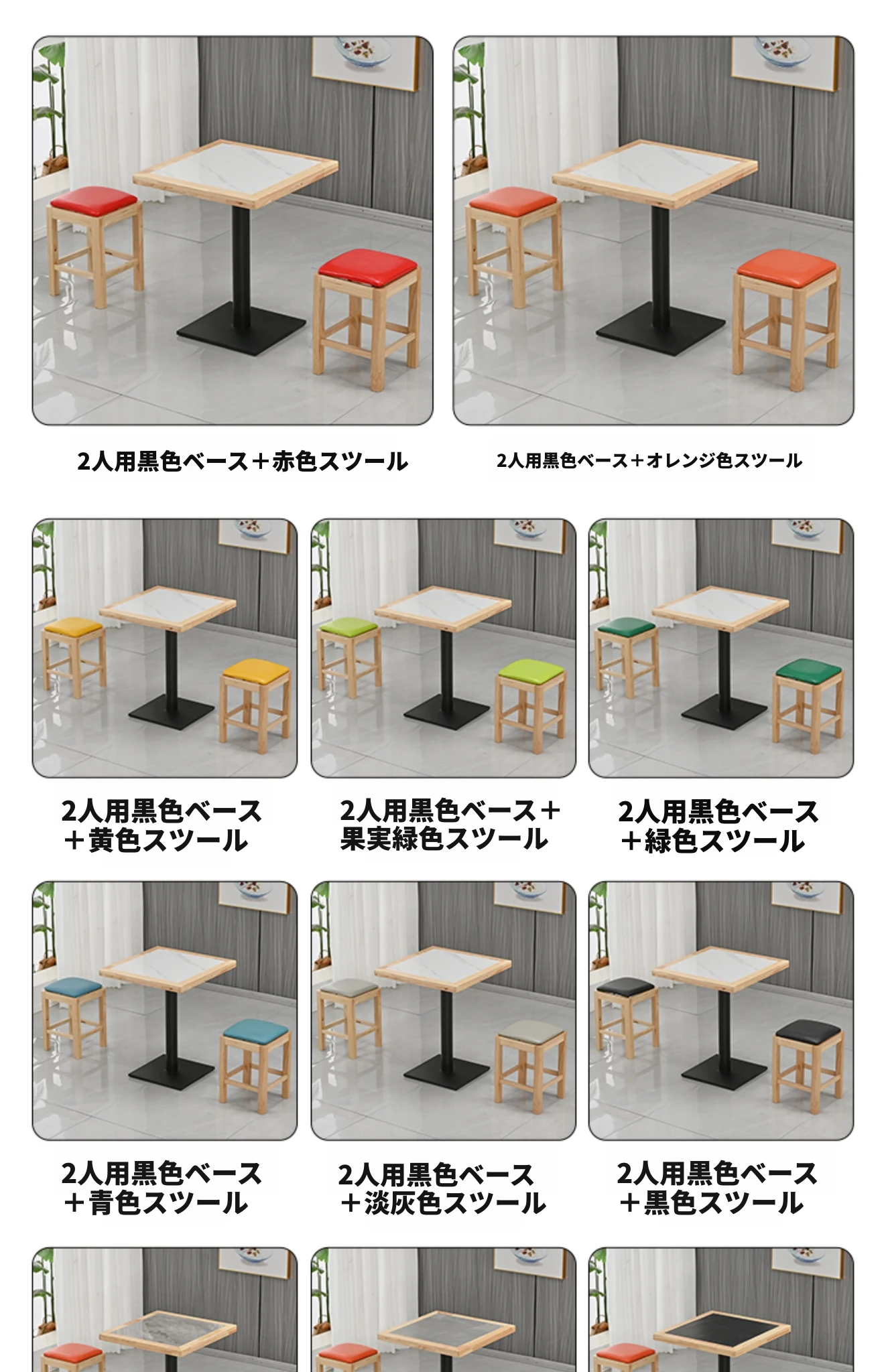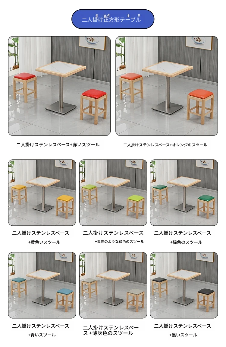 70*70二人スノーフレークホワイト合成天板ベーステーブルオレンジスツール