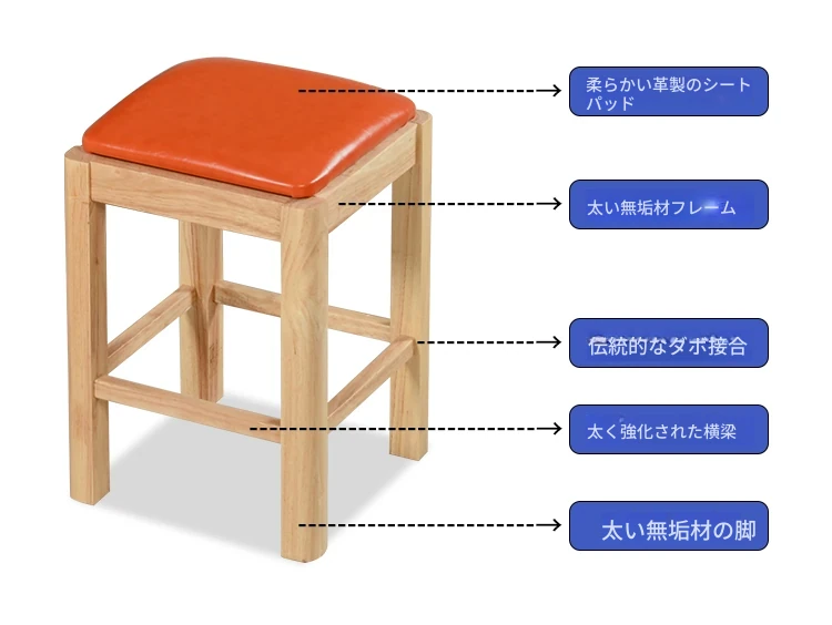 120*60四人スノーフレークホワイト無垢材脚テーブルオレンジスツール