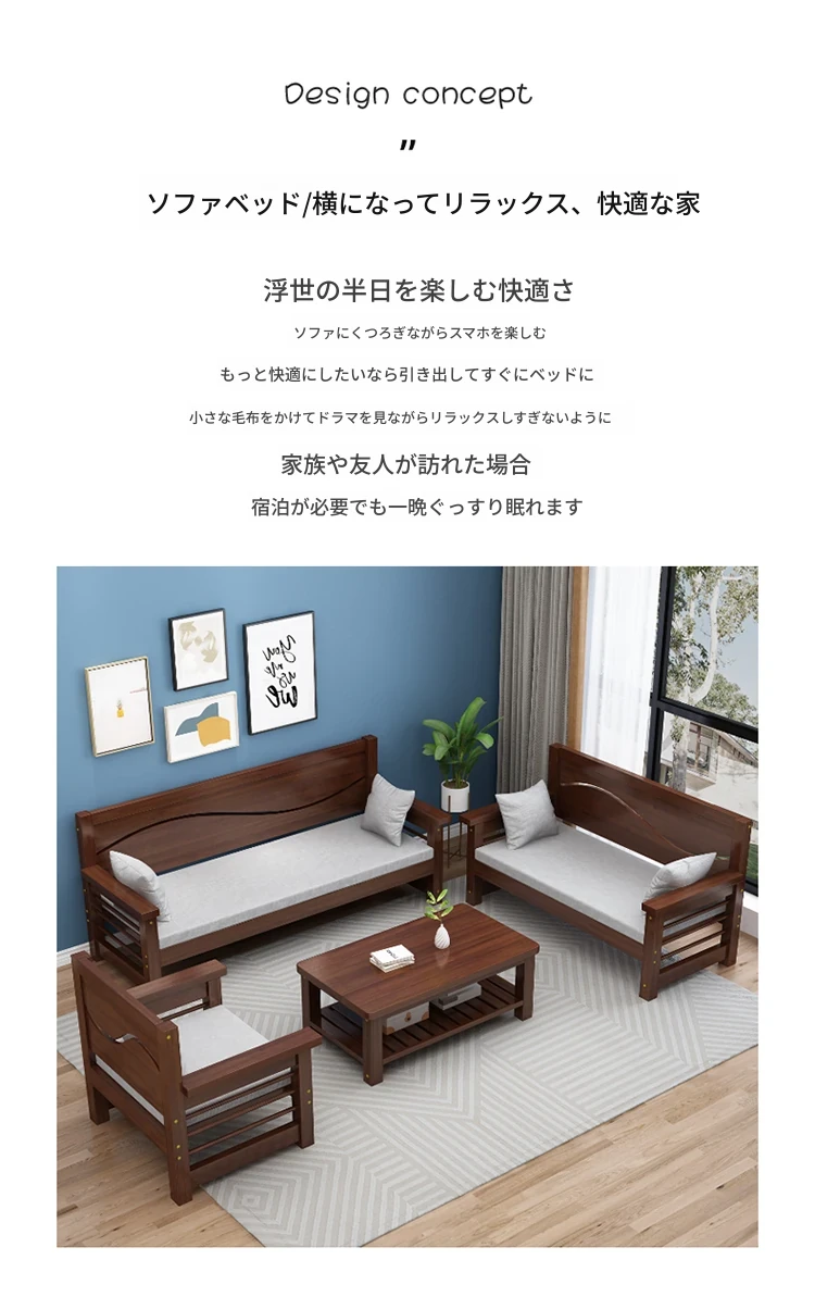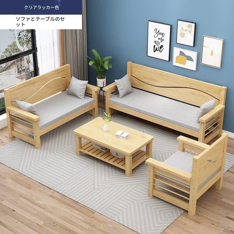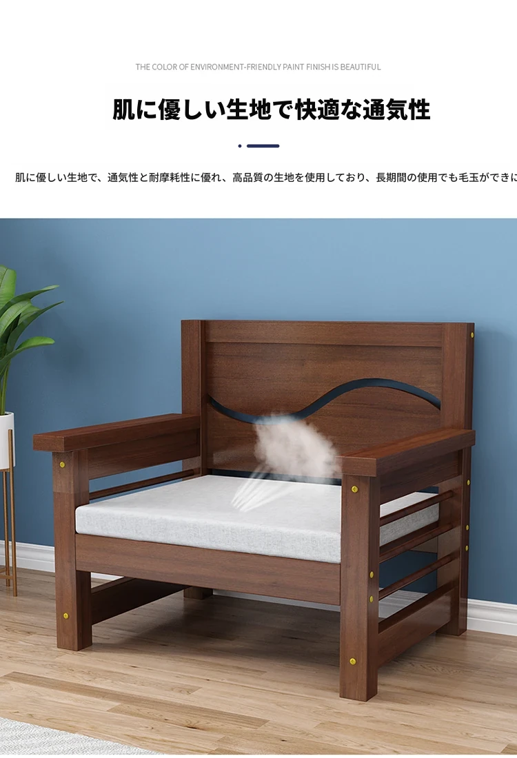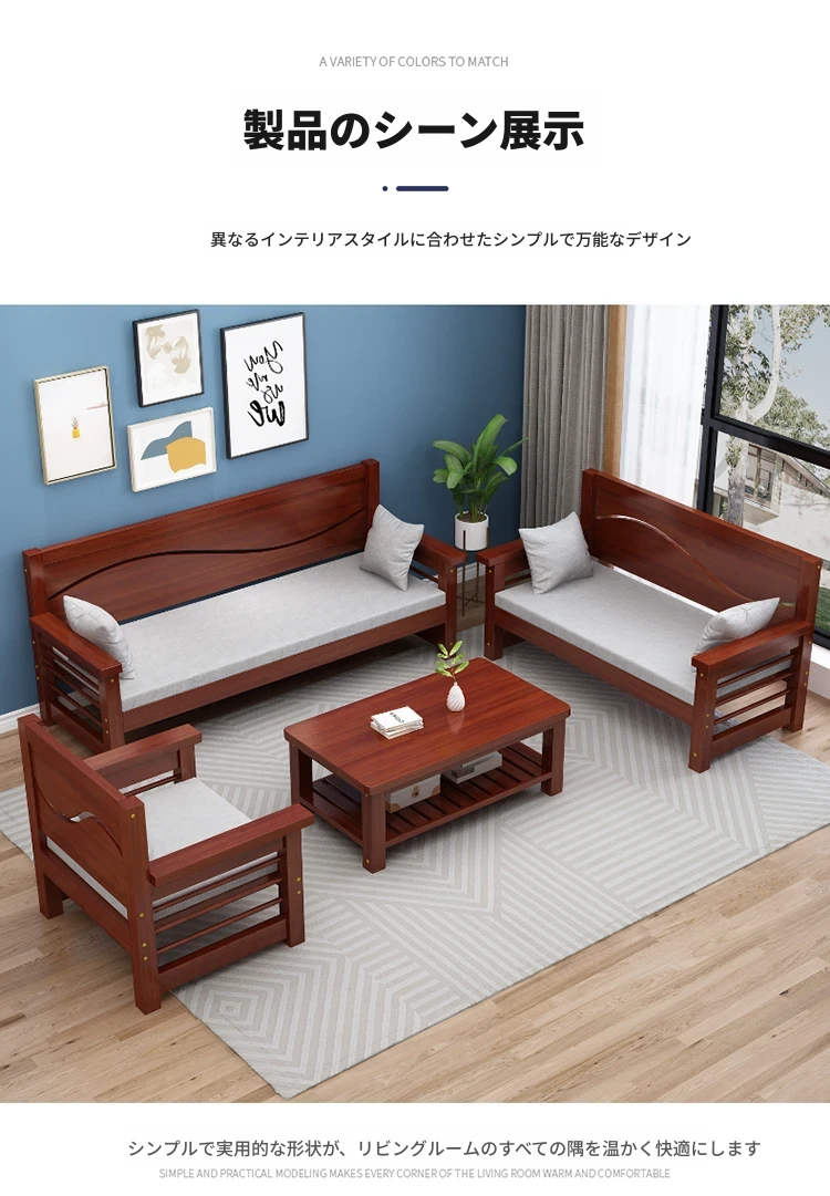 モダンでシンプルな新中式デザイン!実木製ソファとコーヒーテーブルのセット、小型住宅に最適なリビングルーム用。寝室やバルコニーにもぴったりの背もたれ付きロングベンチで、心地よい空間を演出します。