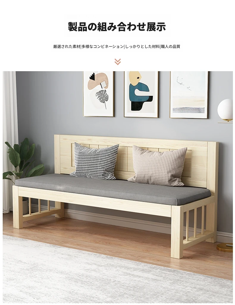 長さ200cm 幅55cm 高さ80cm【ナチュラル】