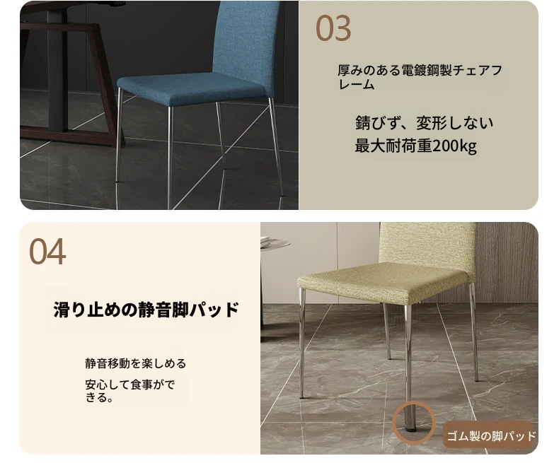 現代的シンプルでスタイリッシュなダイニングチェア、リラックスできる背もたれ付き。小型住宅にもぴったりの軽奢なデザイン。大理石テーブルと組み合わせて、洗練された食卓を演出します!