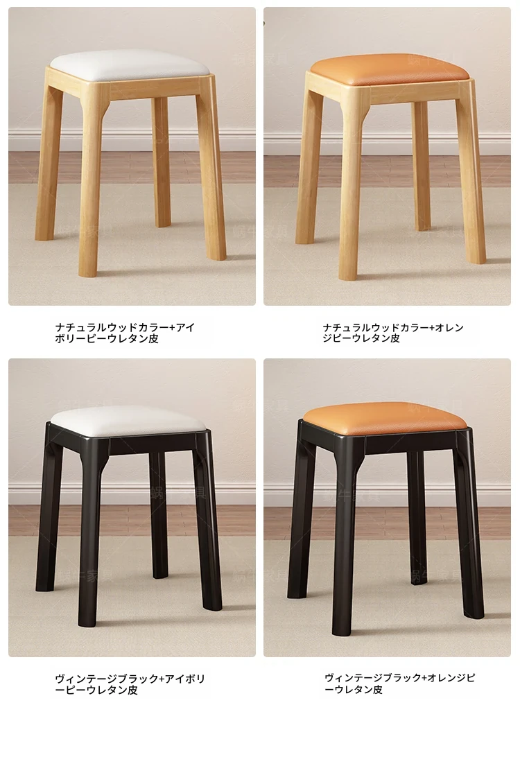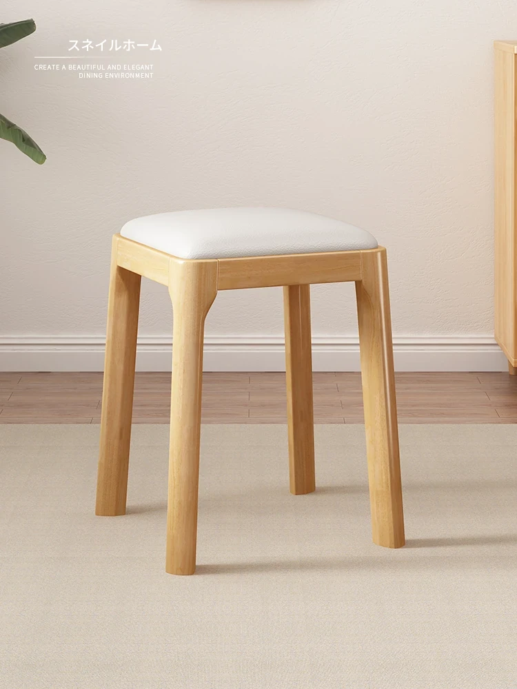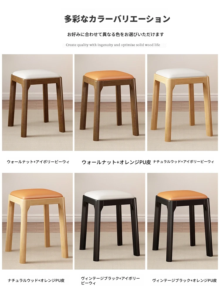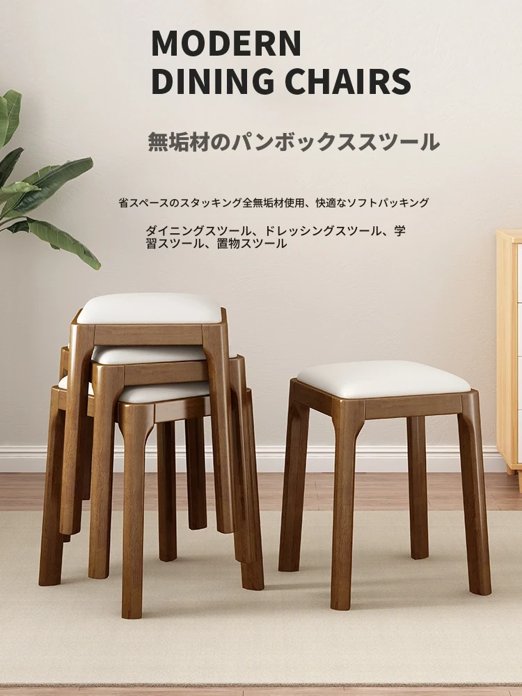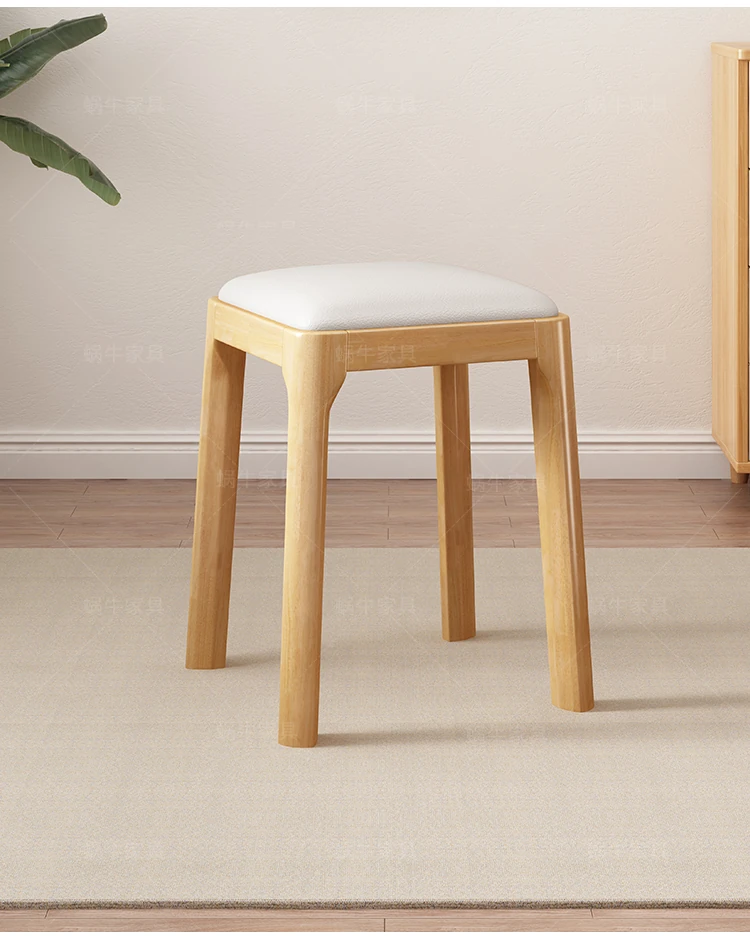 実木製スタッキングソフトパッケージスツール|シンプルでモダンな北欧デザイン|リビングにもぴったりなコンパクトな小方椅子|快適さとスタイルを兼ね備えた家庭用アイテム!
