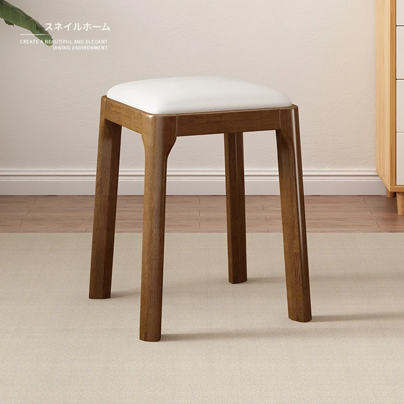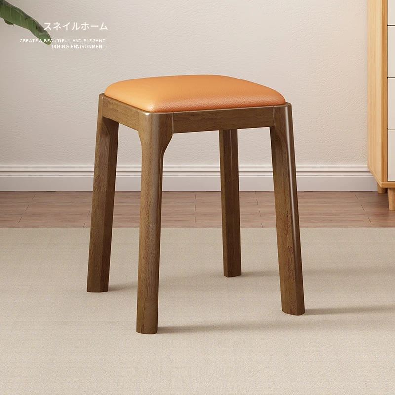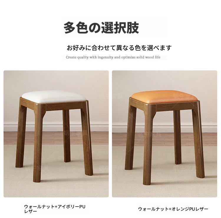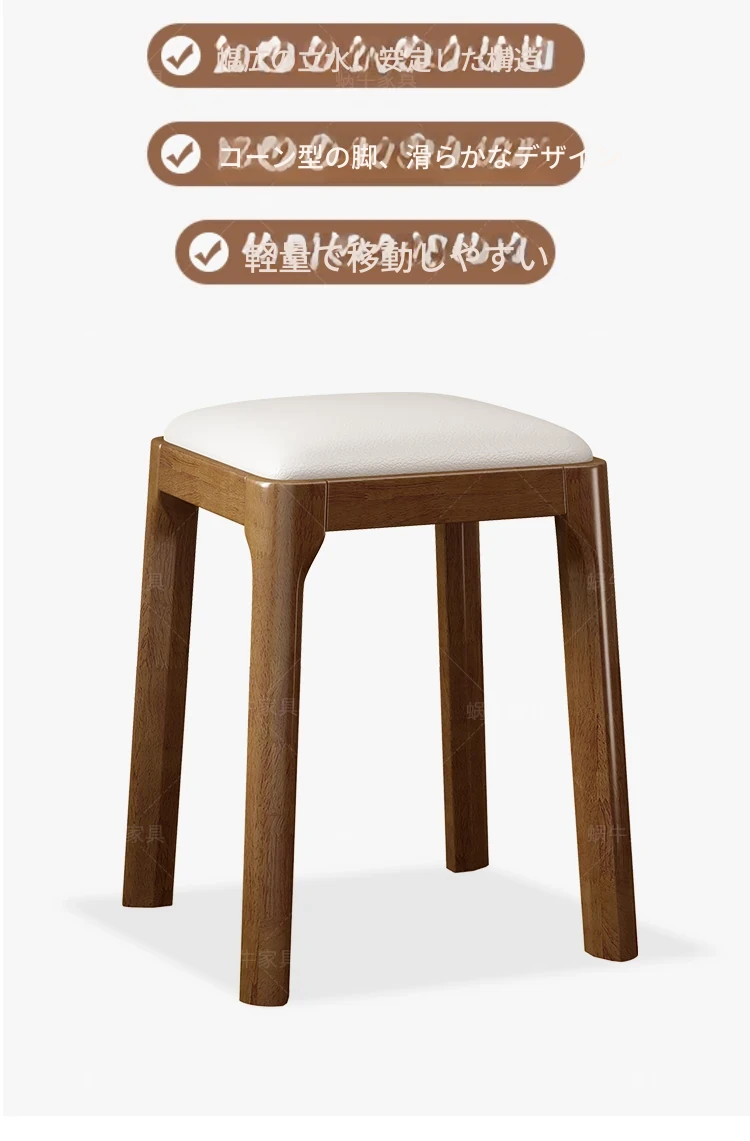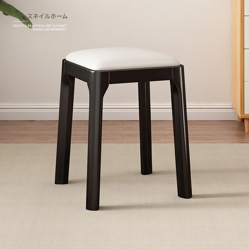 実木製スタッキングソフトパッケージスツール|シンプルでモダンな北欧デザイン|リビングにもぴったりなコンパクトな小方椅子|快適さとスタイルを兼ね備えた家庭用アイテム!