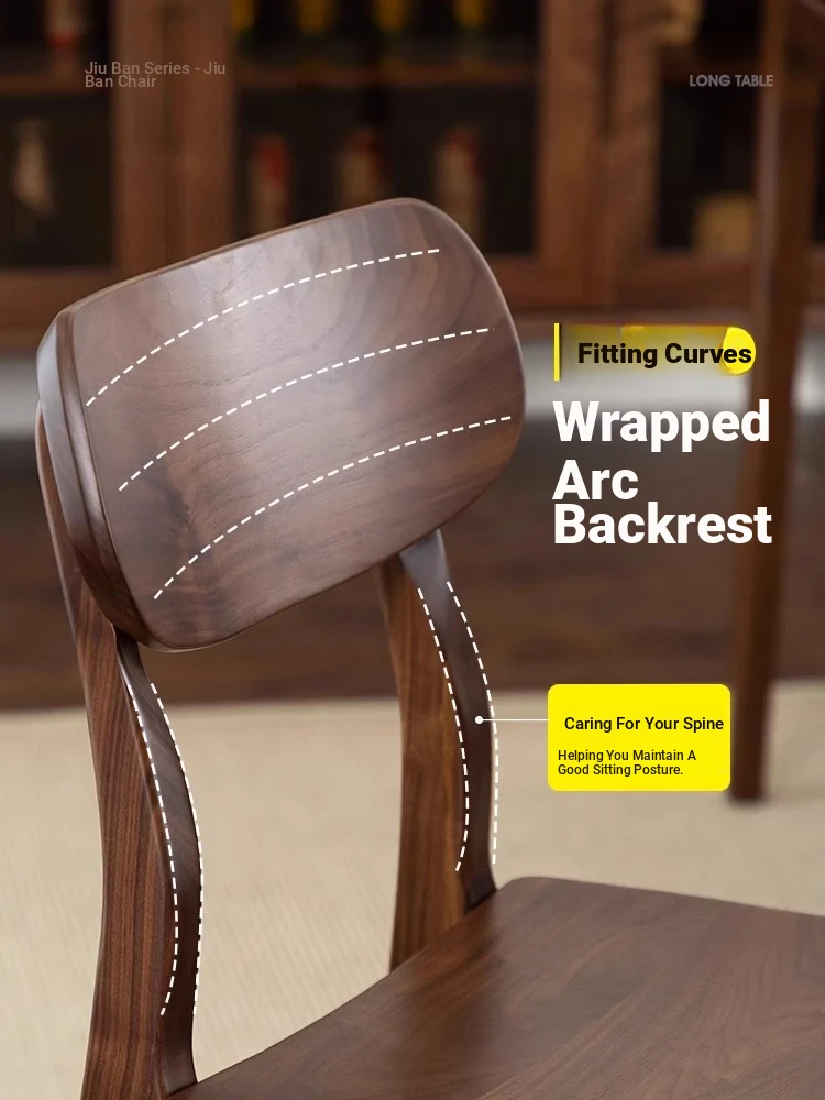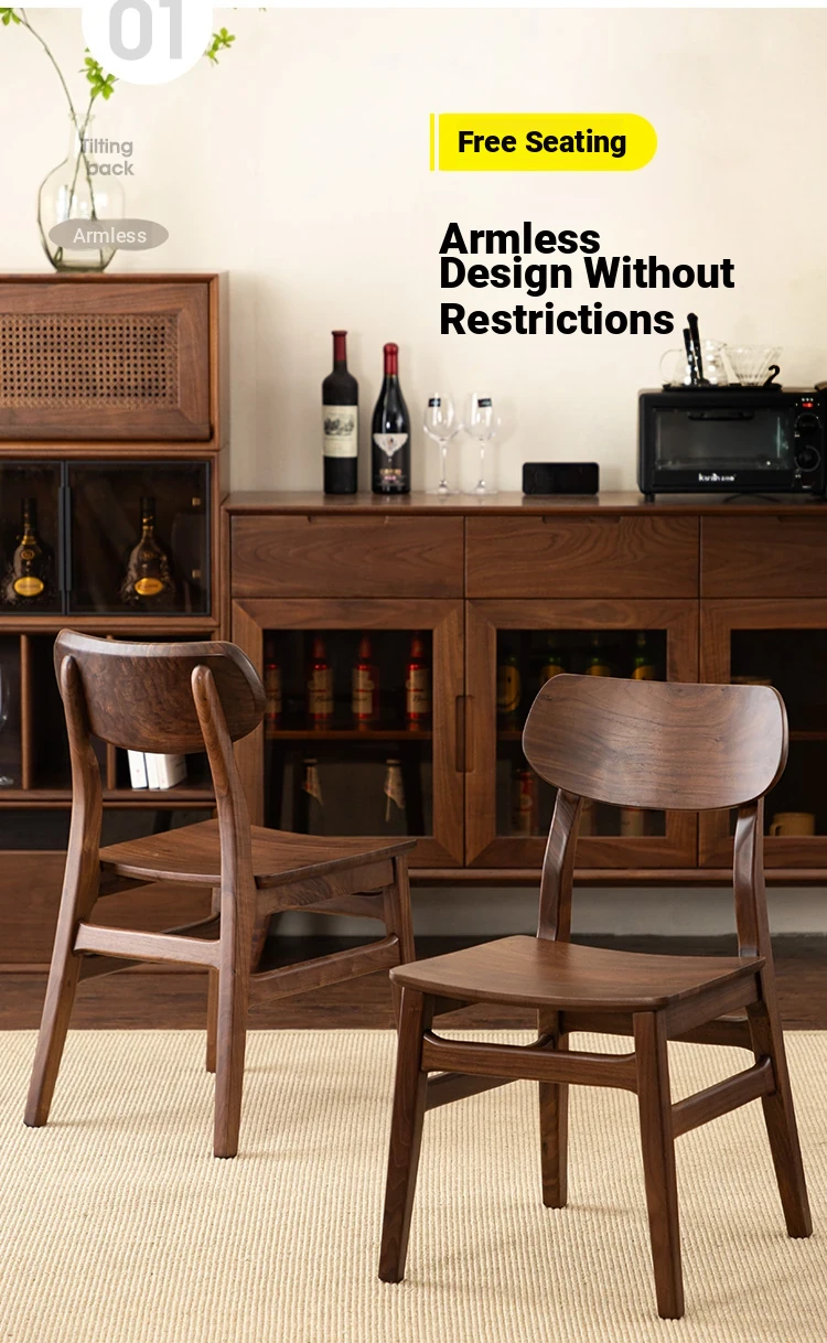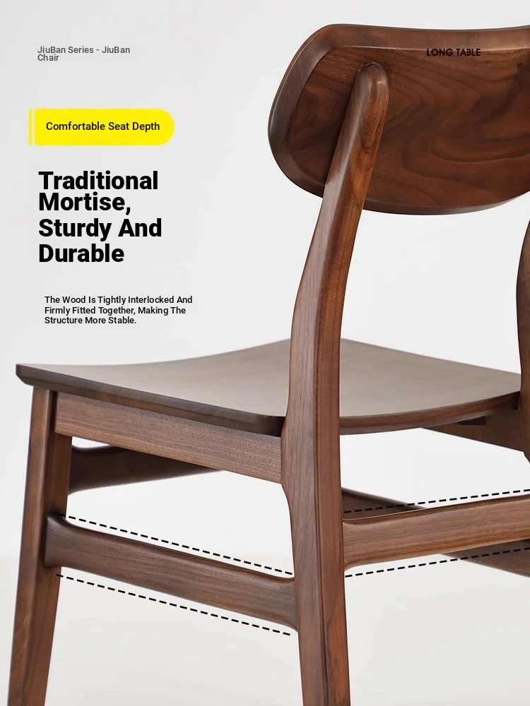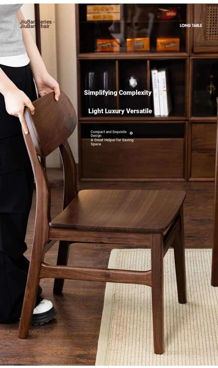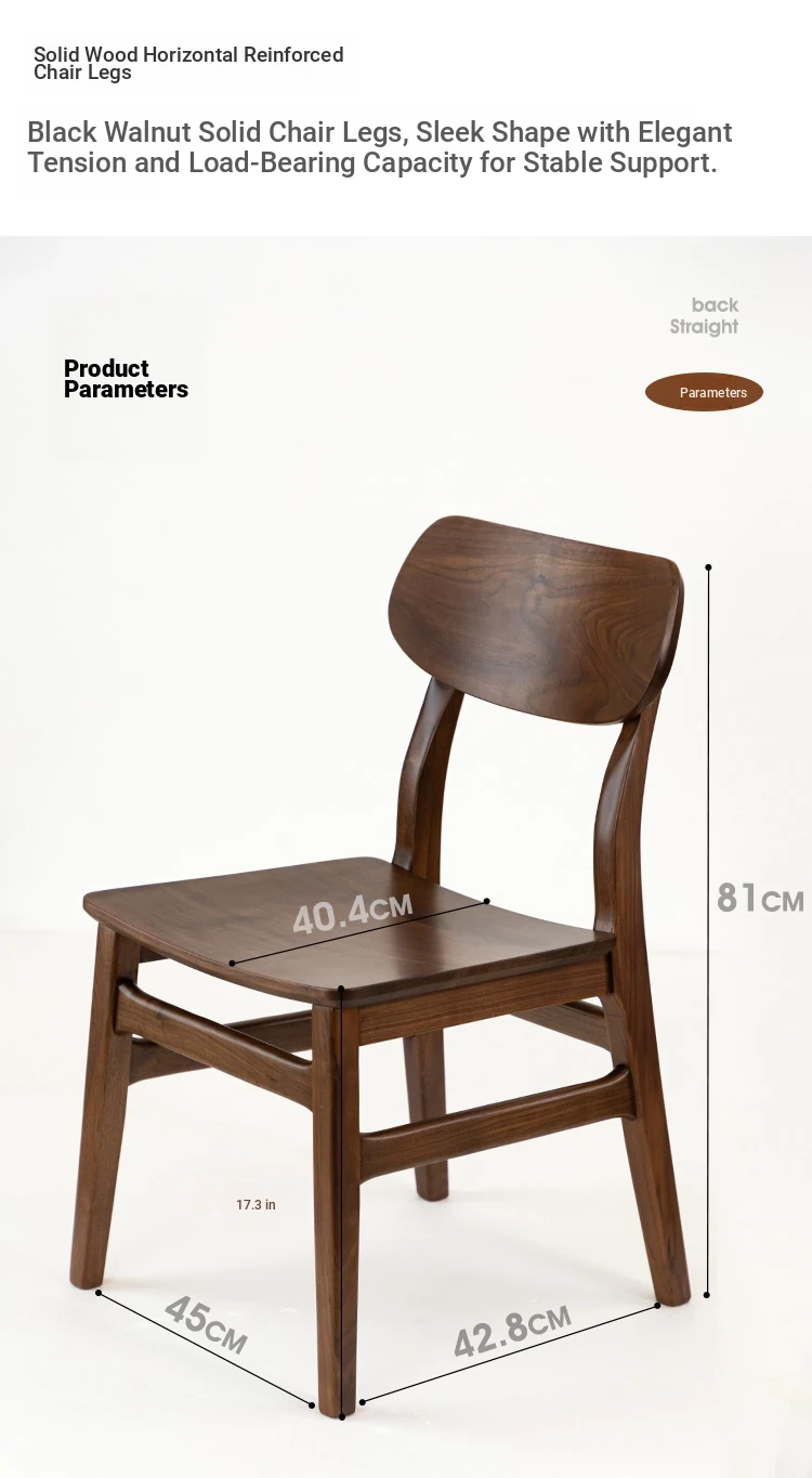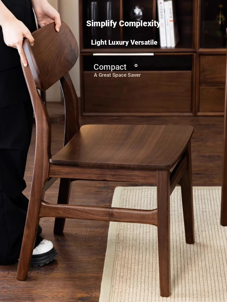 Modern Solid Black Walnut Dining Chair - Stylish Wooden Desk Chair with Backrest for Home Use, Perfect for Small Spaces