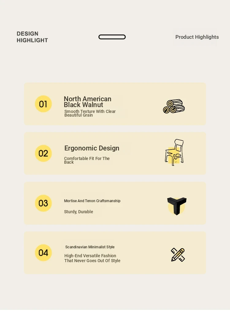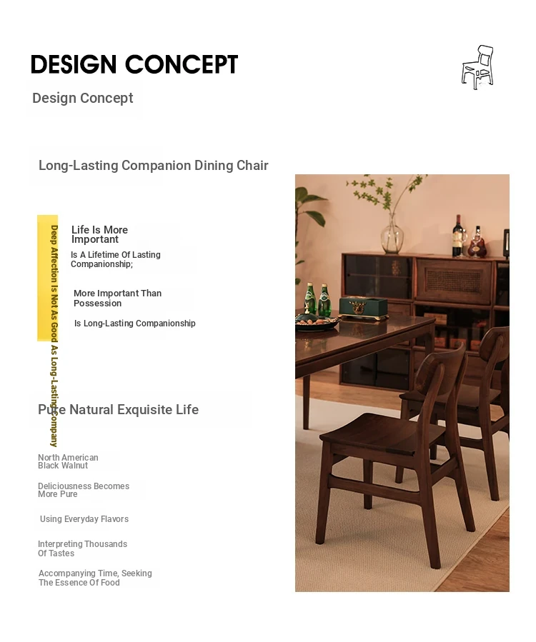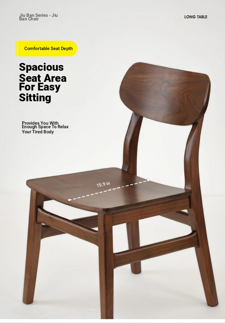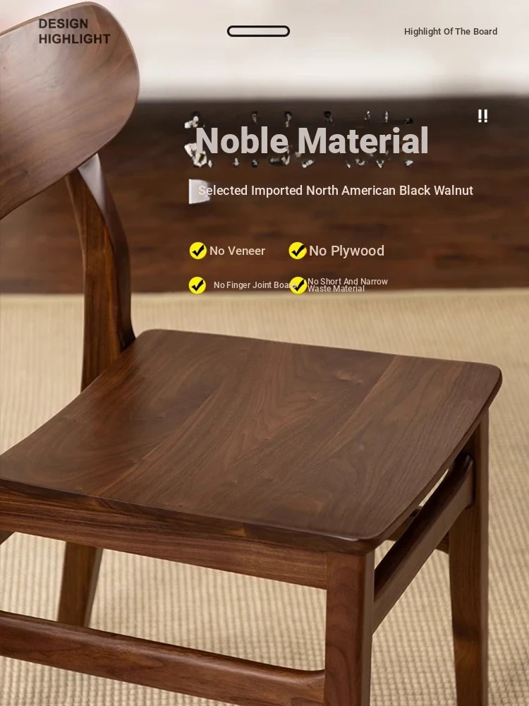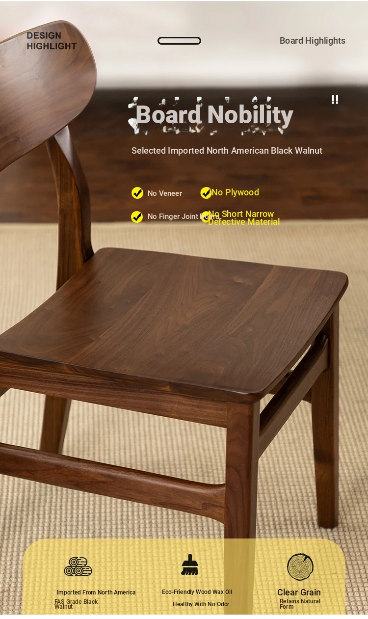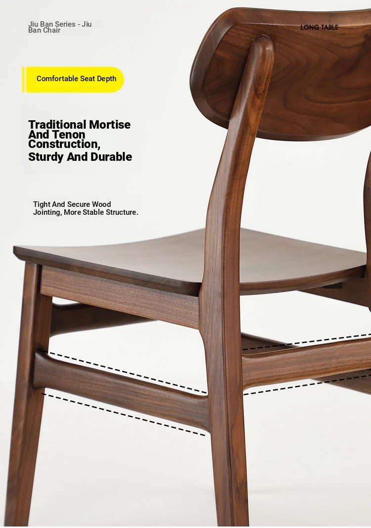 Modern Solid Black Walnut Dining Chair - Stylish Wooden Desk Chair with Backrest for Home Use, Perfect for Small Spaces