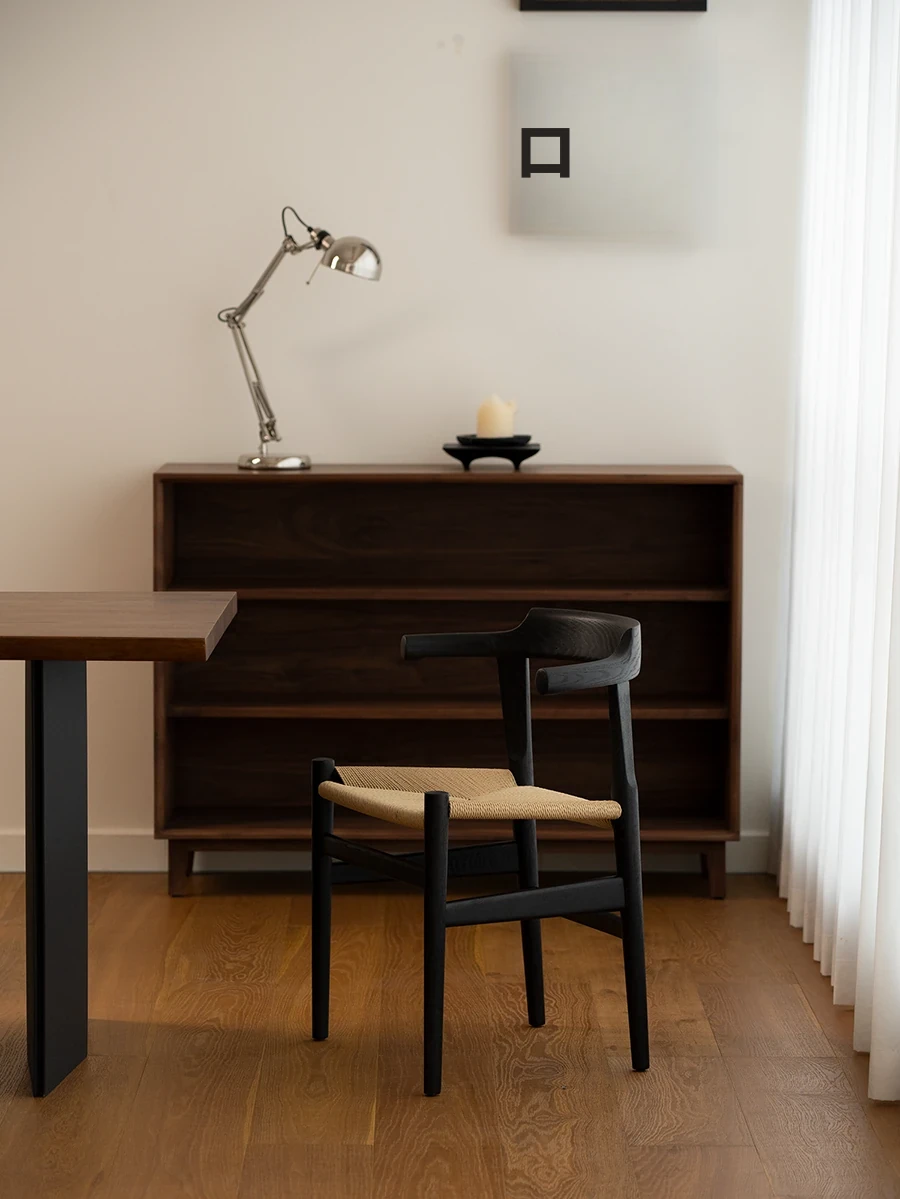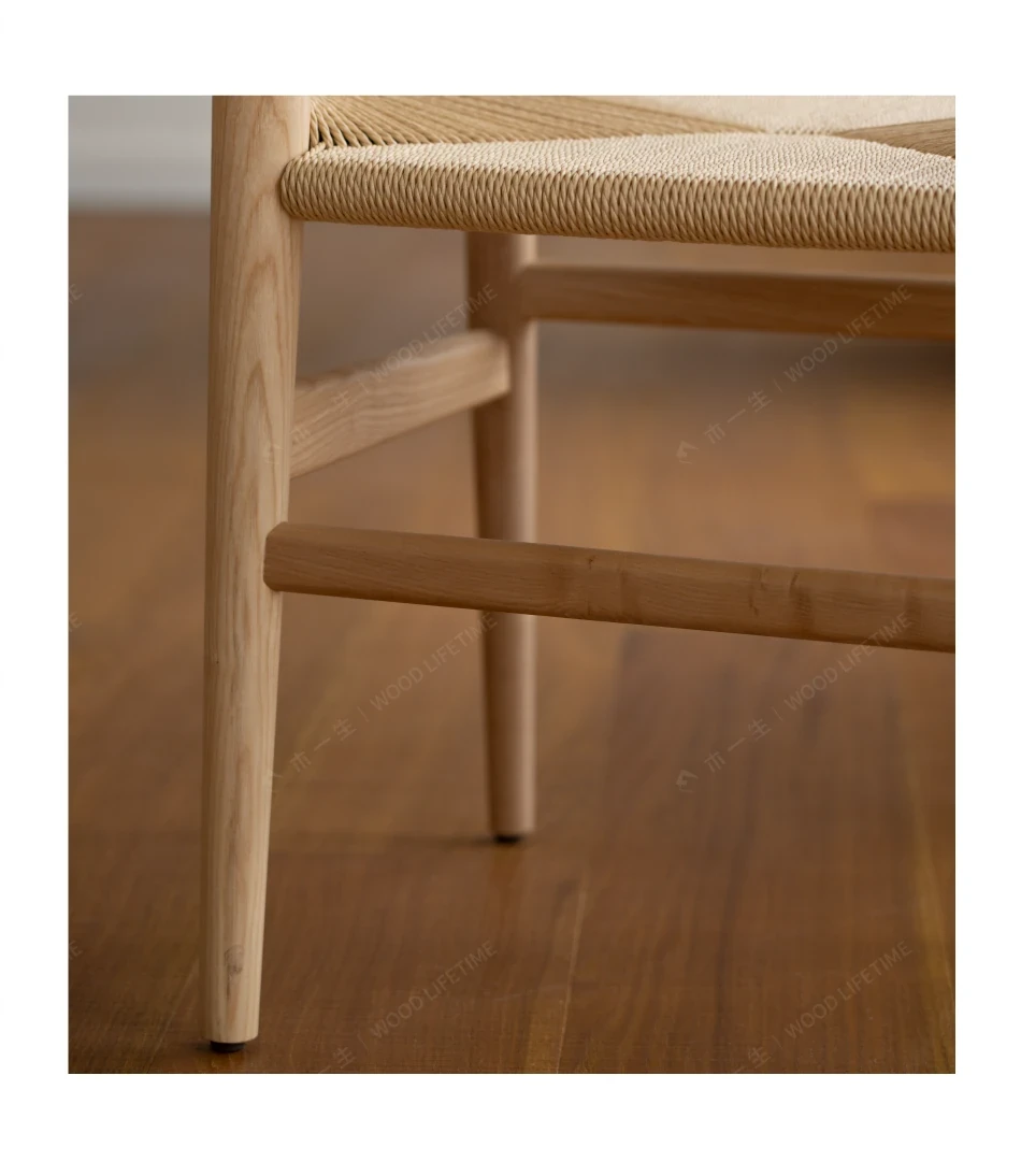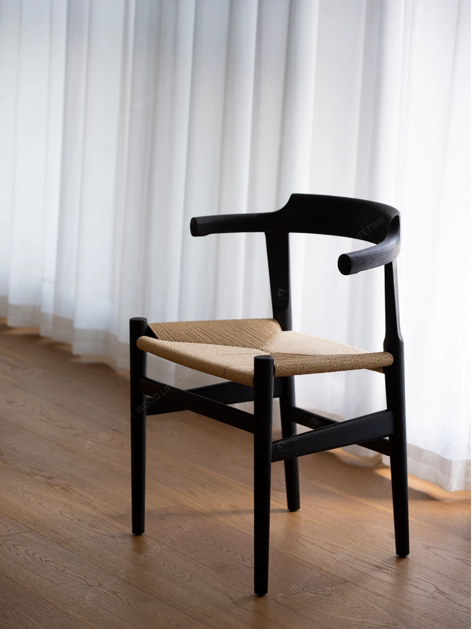 侘寂風の無垢材使用!チャンディガールスタイルの藤編みアームチェア。おしゃれな民宿や家庭用にぴったりのデザイナーバルコニー用リラックスダイニングチェア。自然の温もりを感じる一品。