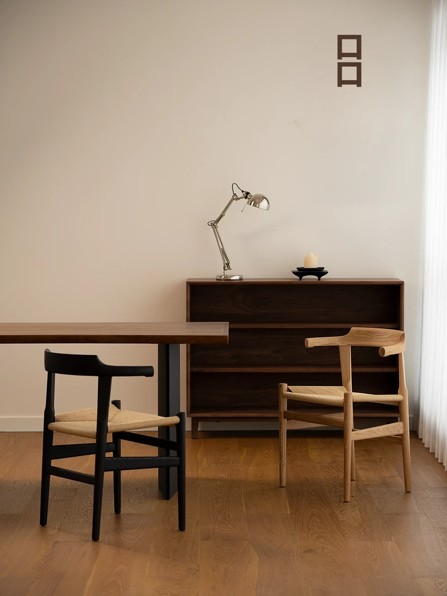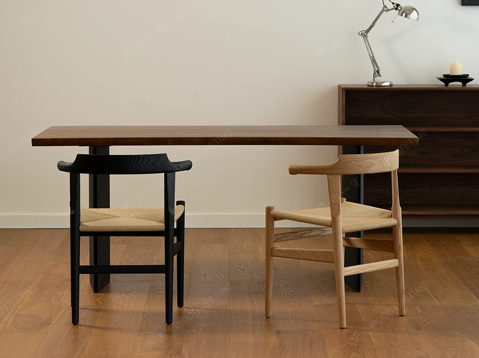 北米産ブラックウォールナット無垢材ダイニングチェア|高級レザーソフトパッド付き|リラックスできるデザイン|茶室やリビングにも最適な主役の椅子!