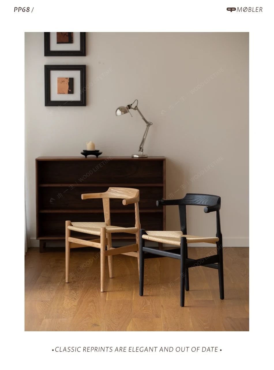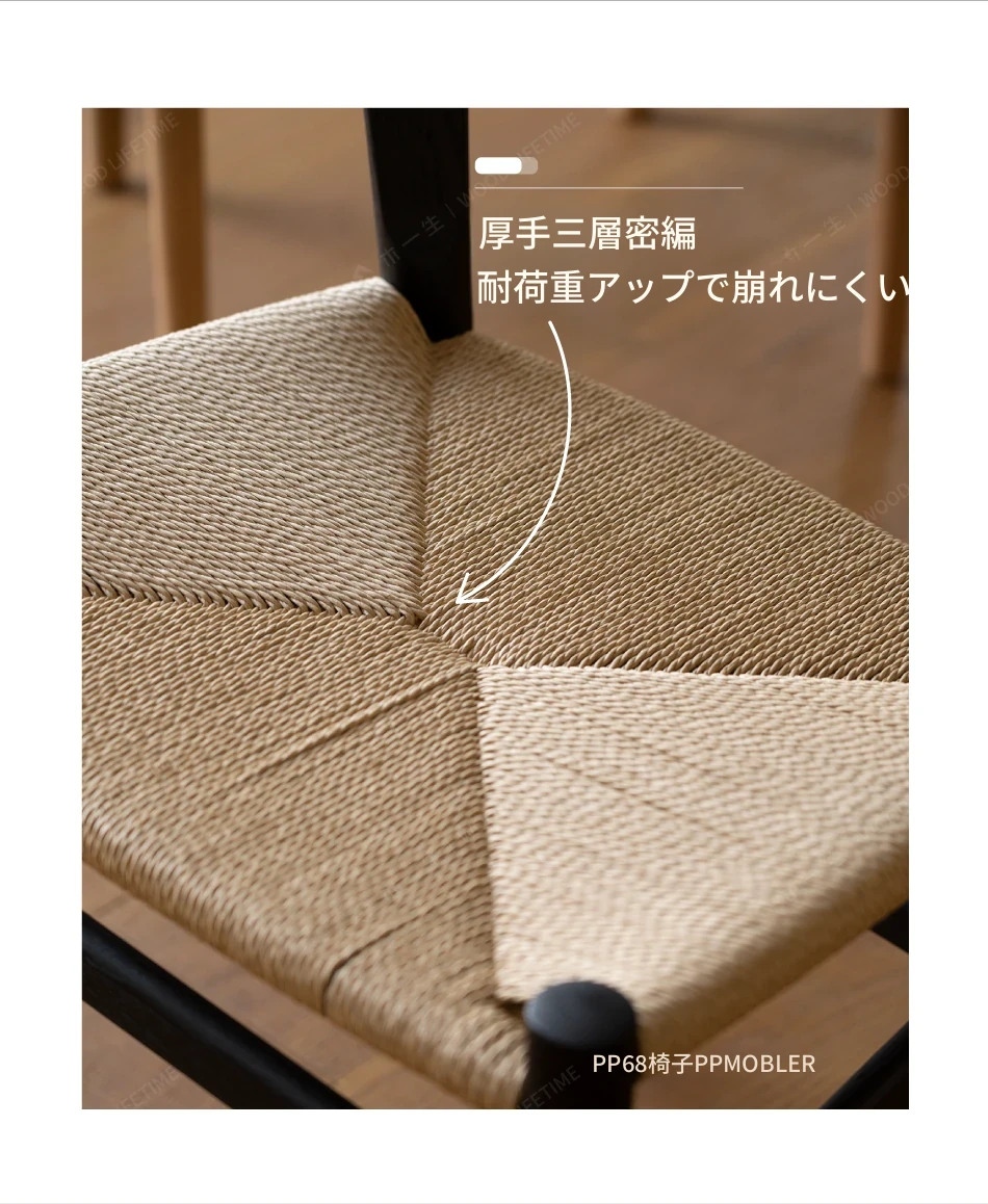 木一生|PP MoblerシリーズPP68チェア 家庭用 中古ダイニングチェア 北欧スタイル 無垢材 背もたれ付き ラタン編みデザインで心地よい座り心地を実現!