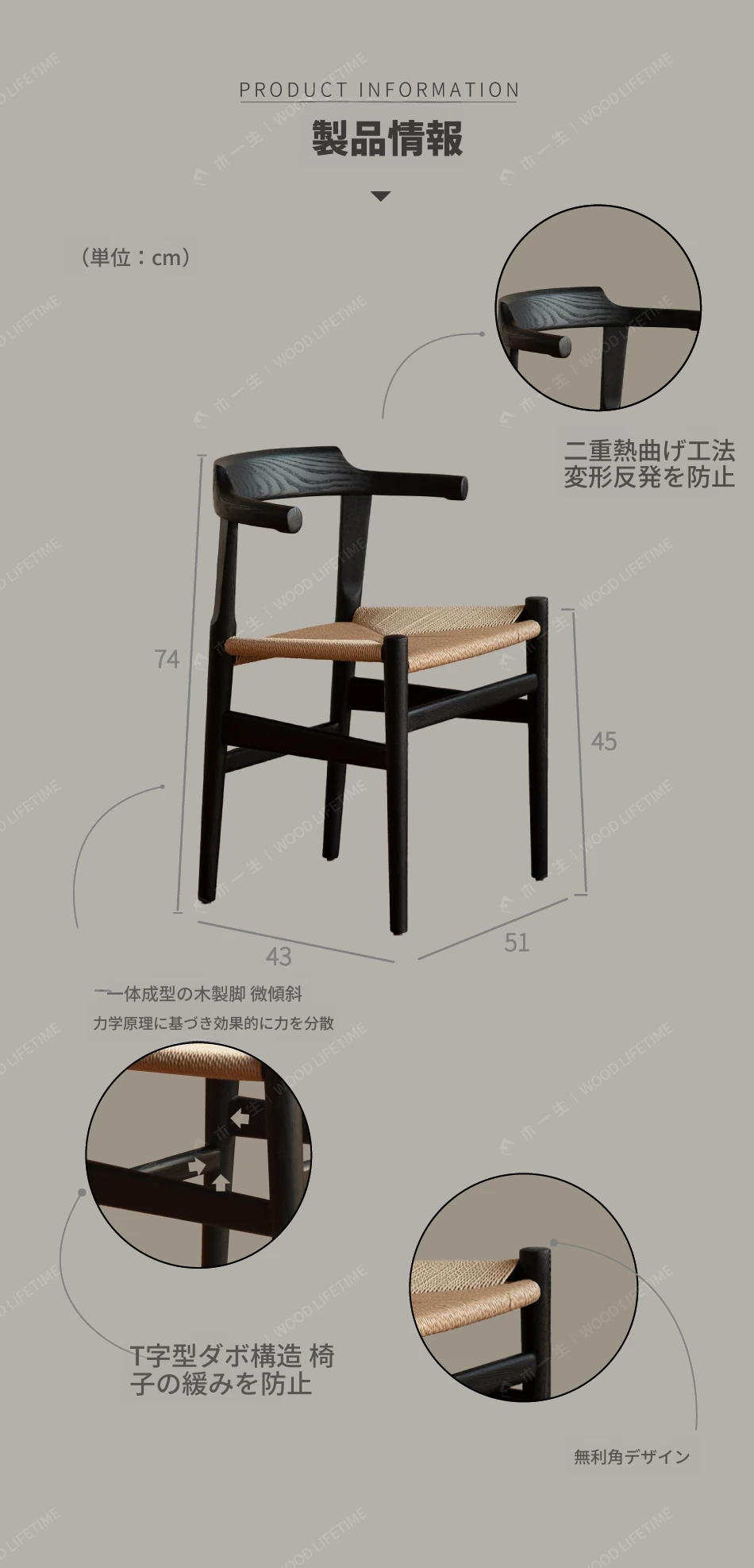 高級感溢れるミニマルデザインのダイニングチェア|快適なアームレスト&背もたれ付き|高品質無垢材使用|家庭やホテルの打ち合わせに最適な一品!