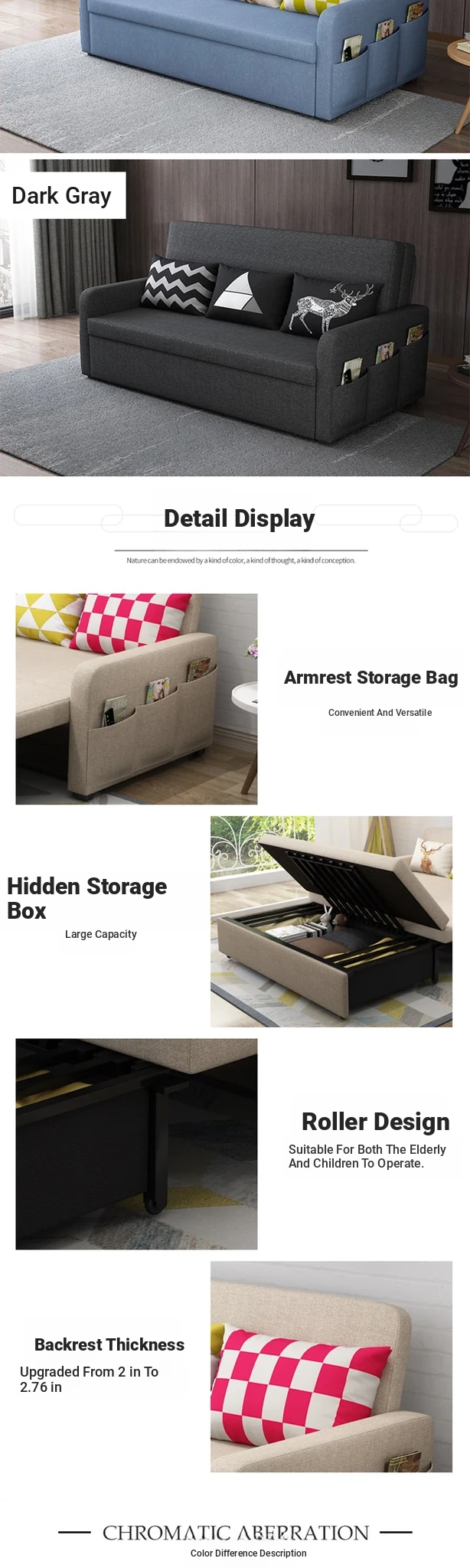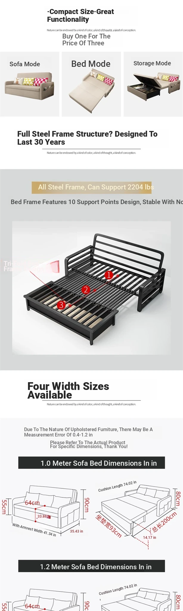Multi-Functional Folding Sofa Bed - Space-Saving 1.5m Double and 1.8m Triple Version with Storage for Small Apartments