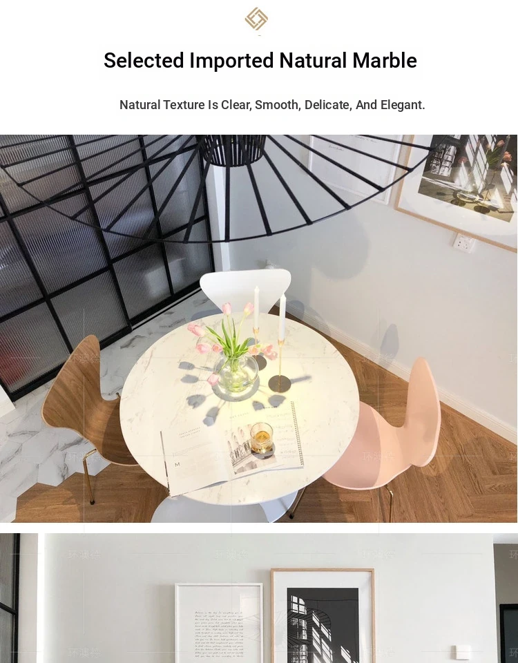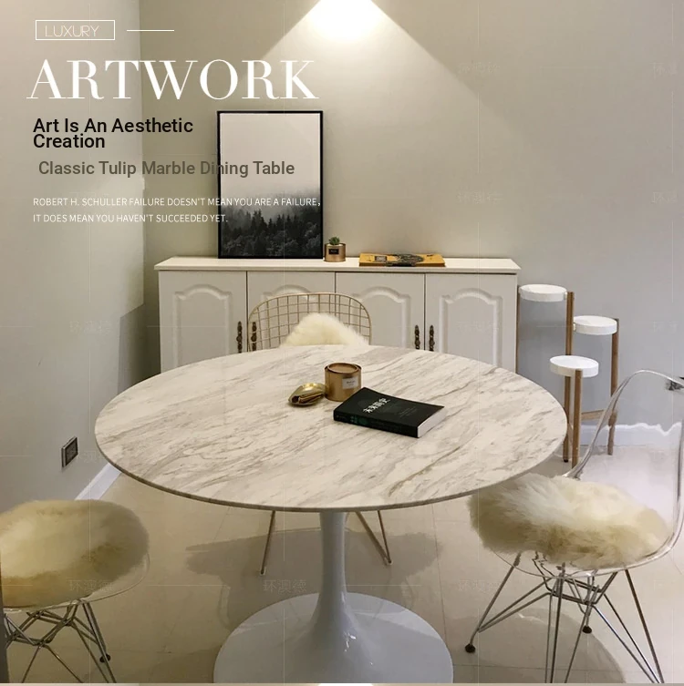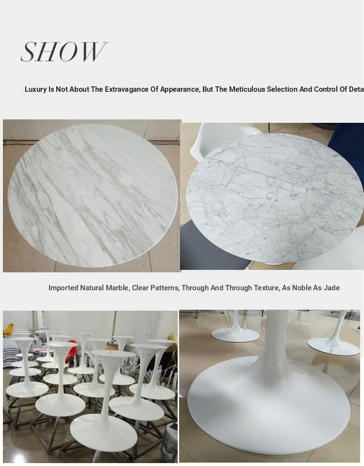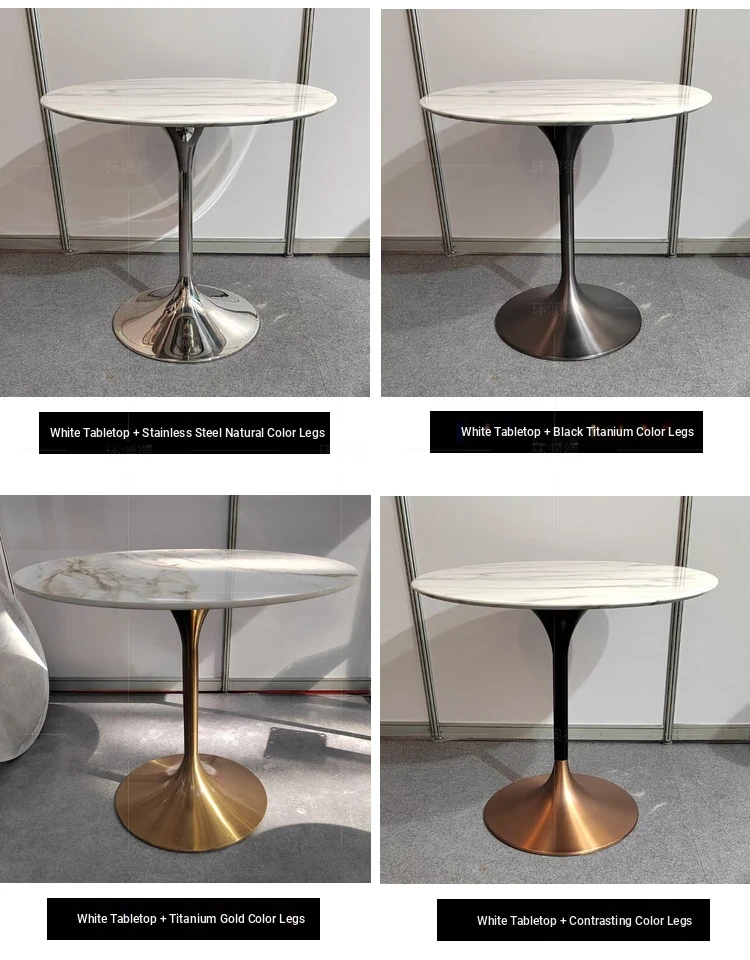 Natural Marble Dining Table from Foshan, Guangdong - Elegant Tulip Round Table for Home Use, Perfect for Small Spaces, 1 Meter Dining Table with Rock Plate Design
