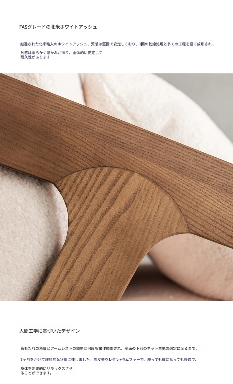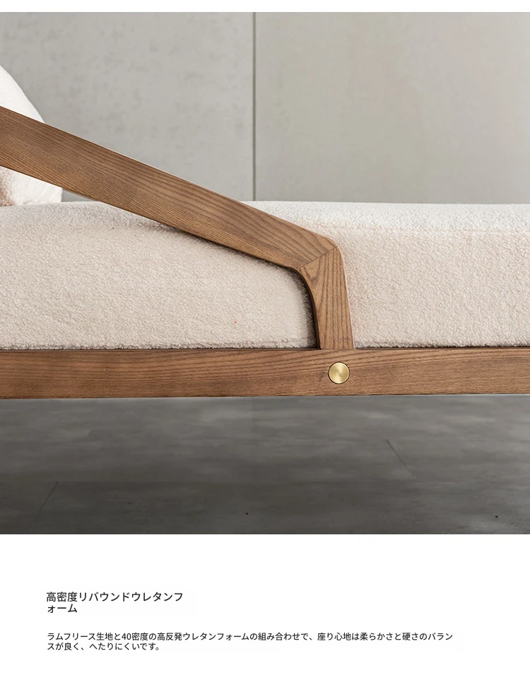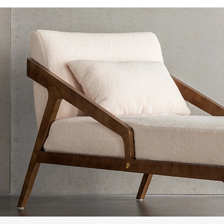 新中式デザインの無垢材使用、心安らぐ禅の雰囲気を体感できる貴婦人椅子。ホワイトアッシュ材を使用した、スタイリッシュなリビングコーナー用布張りソファ。あなたの空間に優雅さと安らぎをもたらします。
