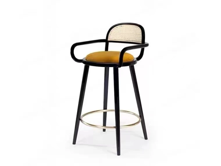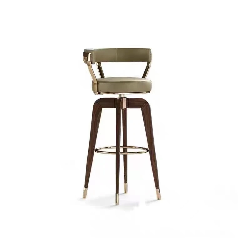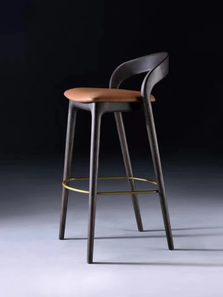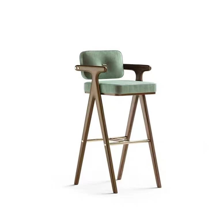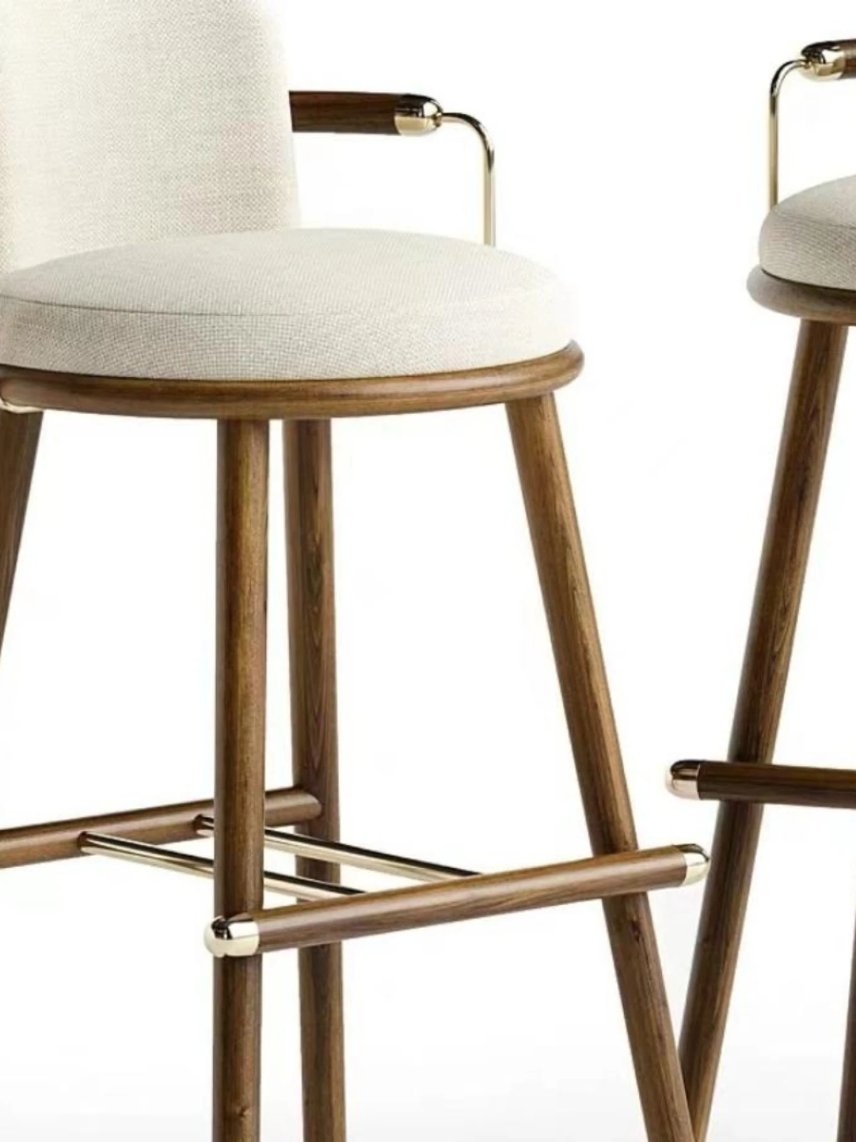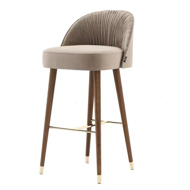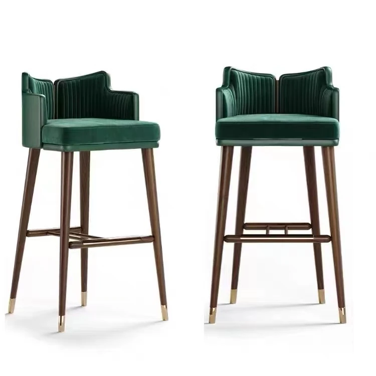 新発売!シンプルでラグジュアリーな無垢材とファブリックのバー椅子。エンターテイメントやKTVにぴったりなデザイナーズ家庭用アイランドカウンター椅子。おしゃれな空間を演出します!
