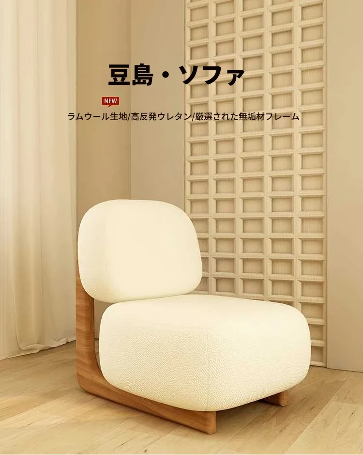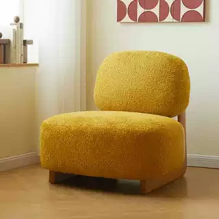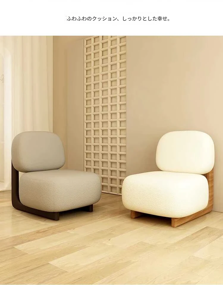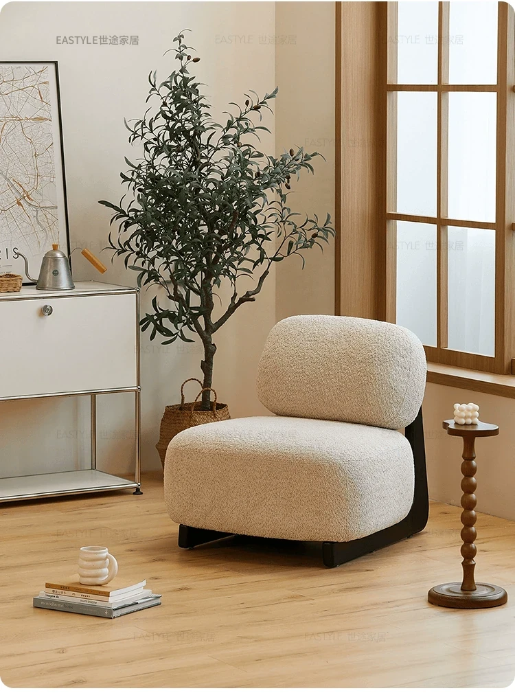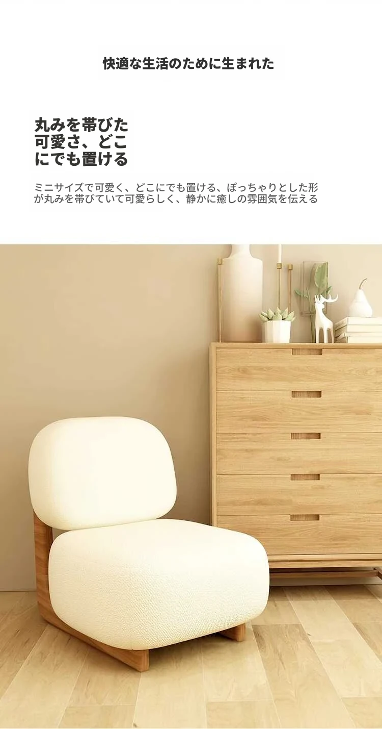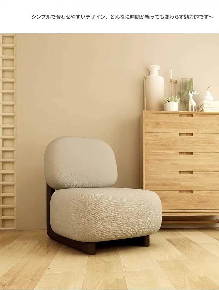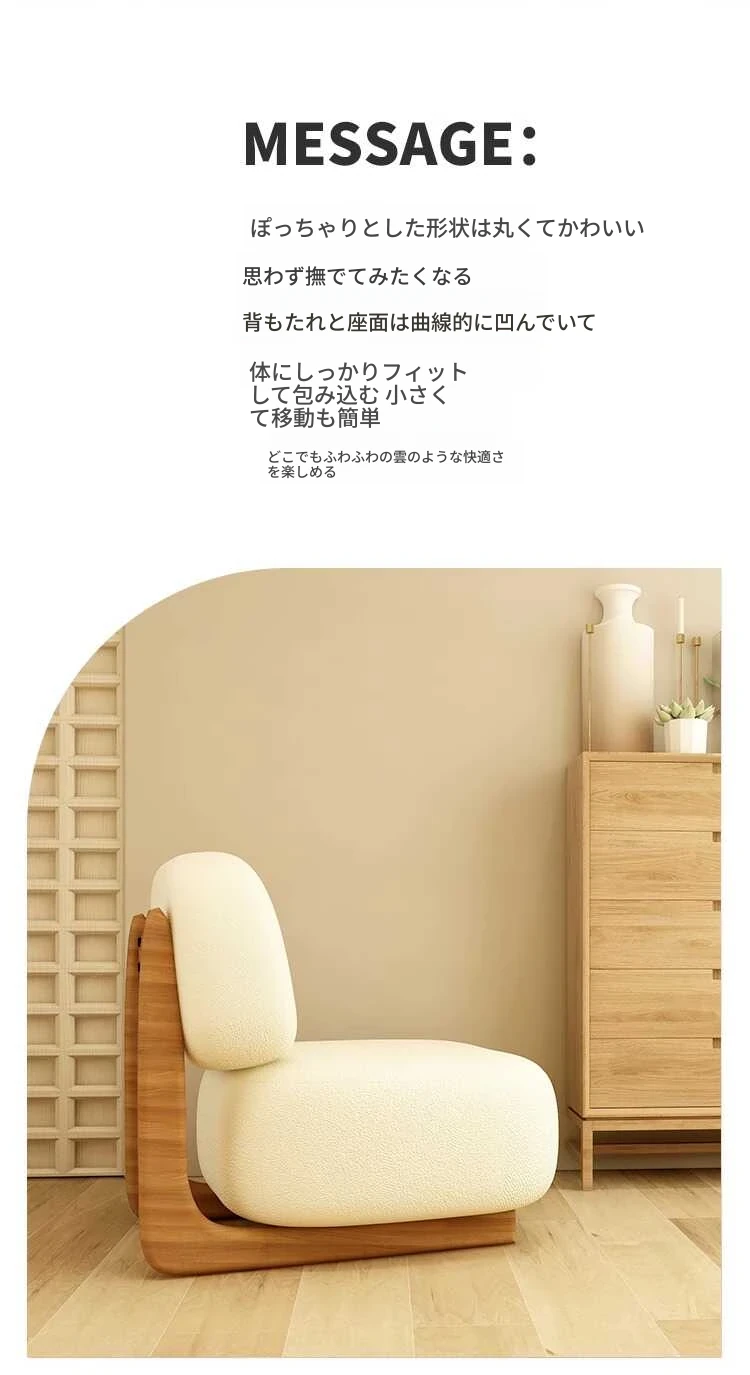 新しいモダンな無垢材のリラックスソファチェア - 侘寂風デザイン、アルパカファー使用、居心地の良い背もたれ付き。リビング、寝室、バルコニーにぴったりのカジュアルな休憩椅子!
