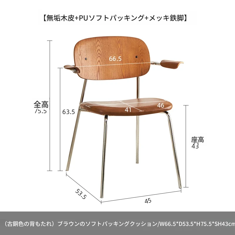 アーム付き淡古銅色背もたれ茶色クッション電鍍銀脚