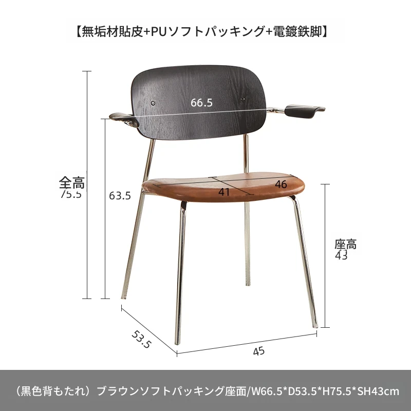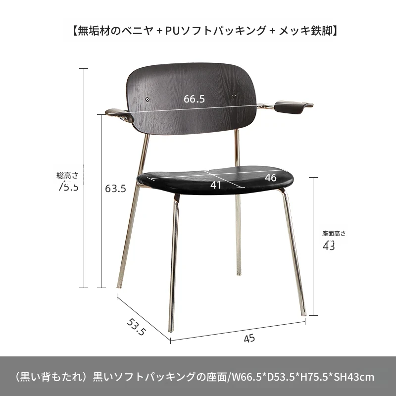 アーム付き黒色クッション黒色背もたれ電鍍銀脚