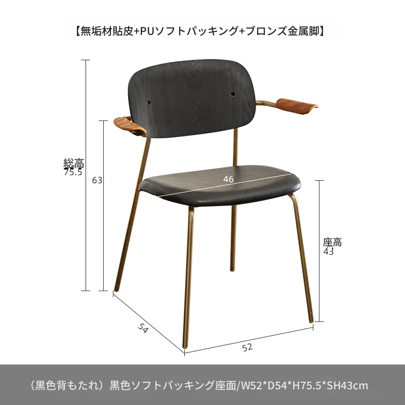 アーム付き古銅色背もたれ黒色クッション電鍍銀脚