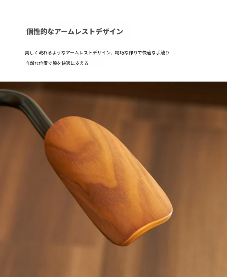 アーム無しナチュラルウッド色背もたれ黒色クッション
