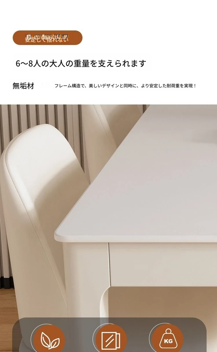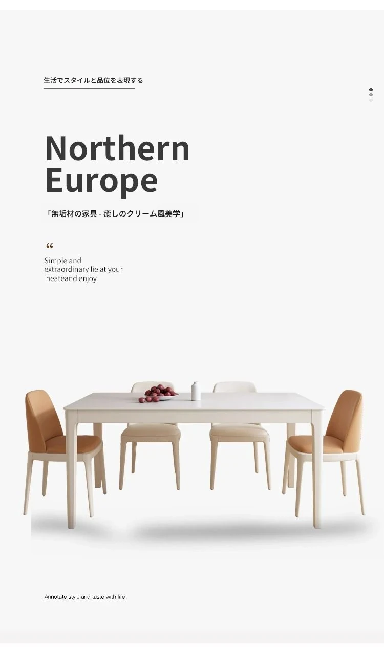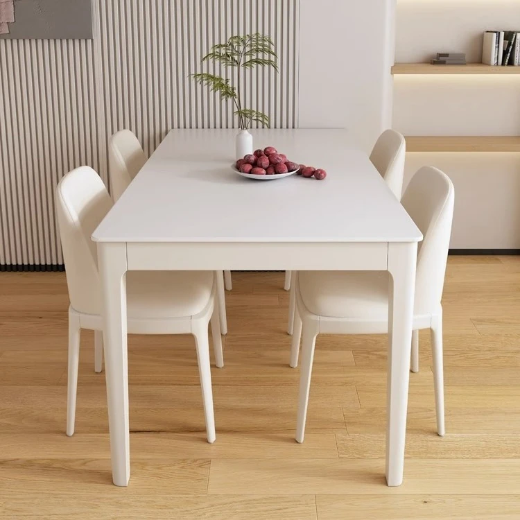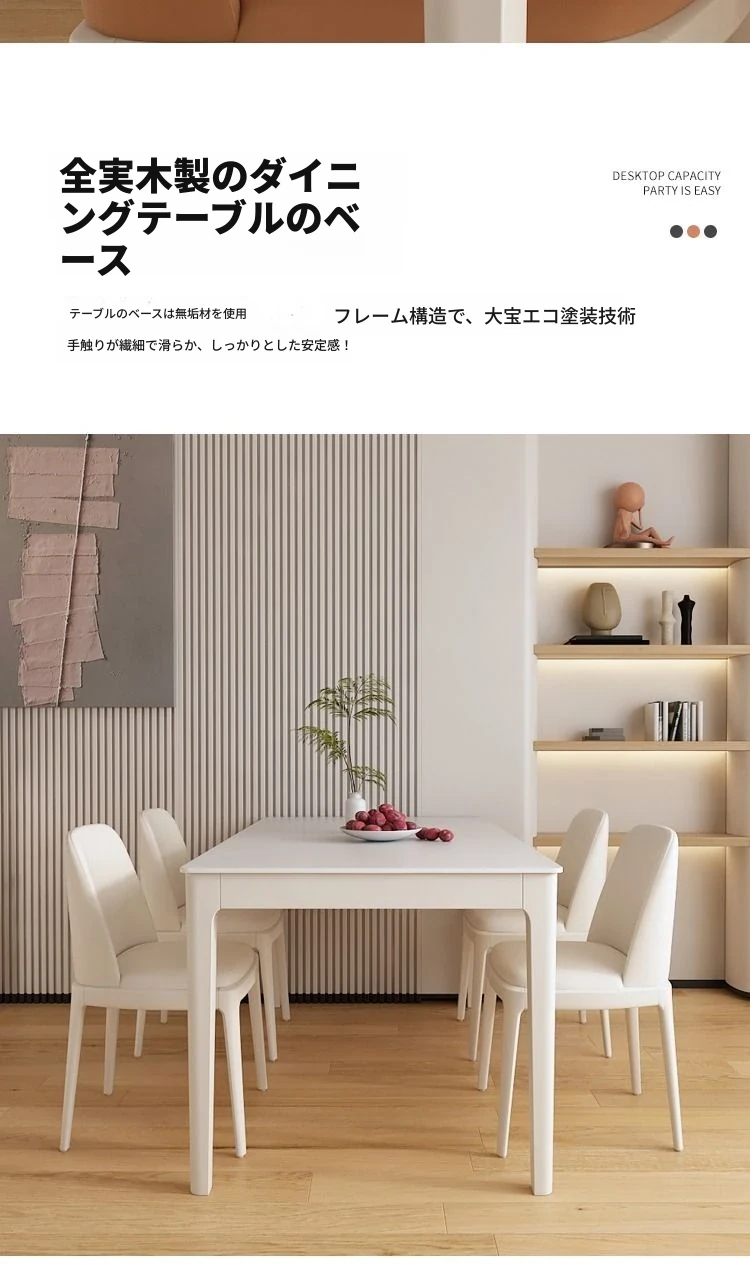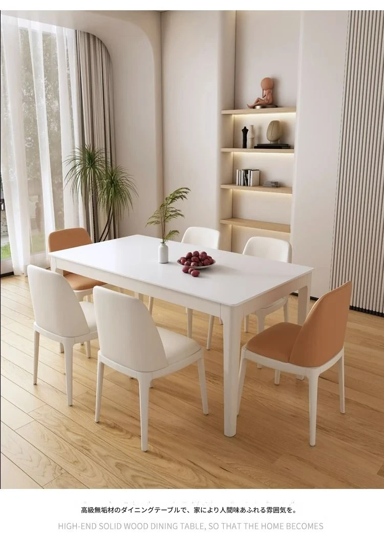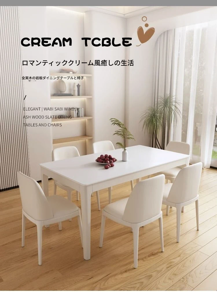 北欧風の光沢ある岩板ダイニングテーブル 小型新作 家庭用のラグジュアリーな食卓 濃厚クリームホワイトの無垢材テーブルと椅子のセットで、洗練された食事空間を演出します!