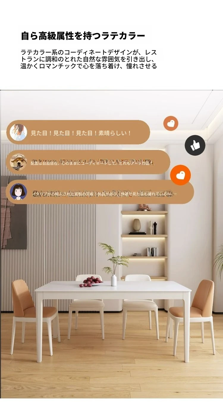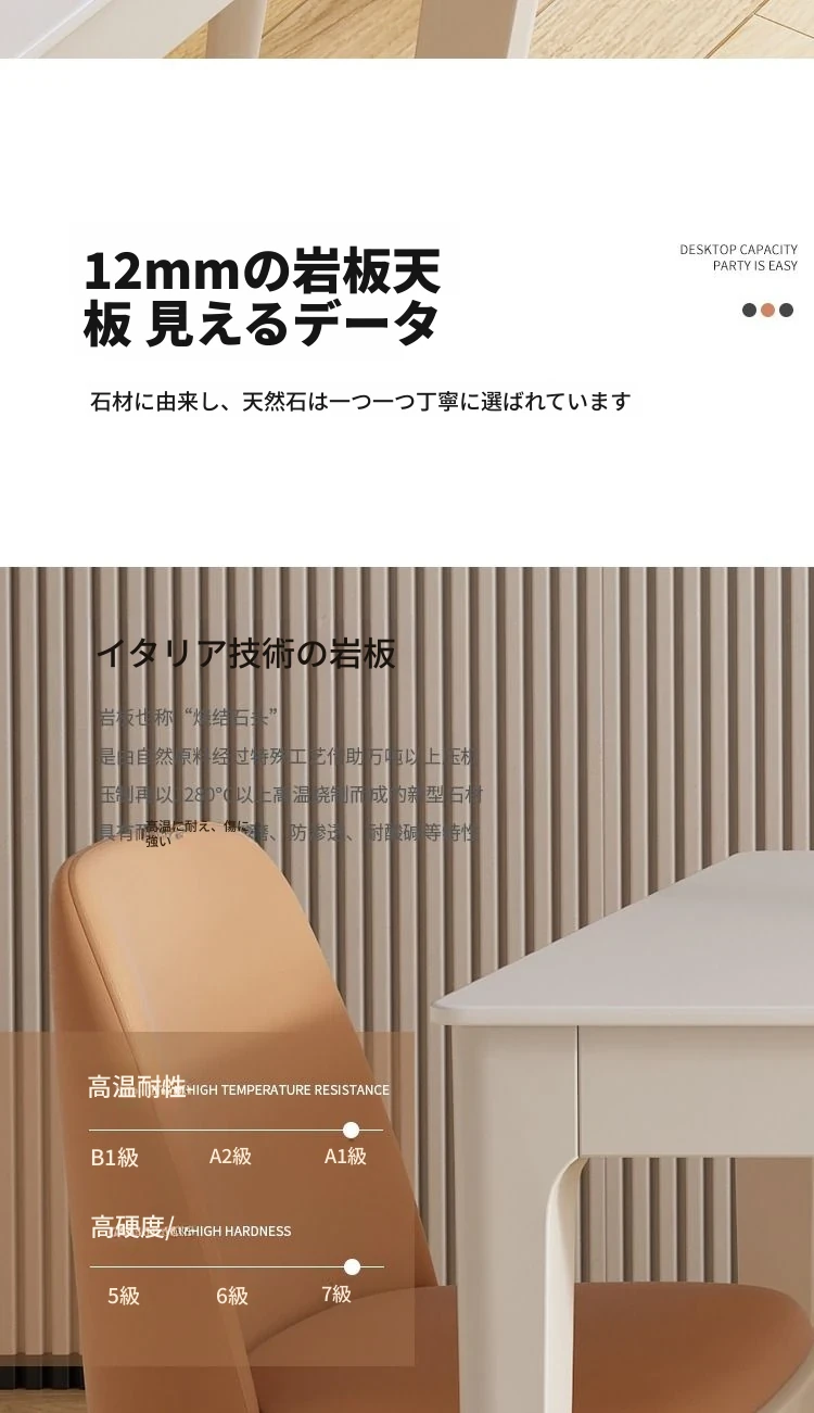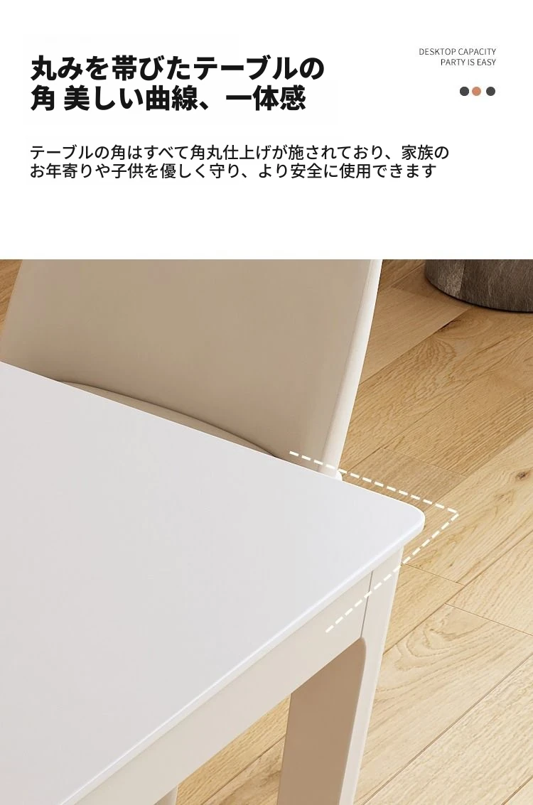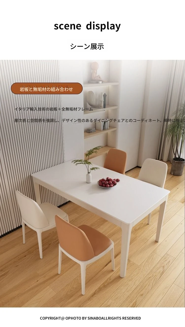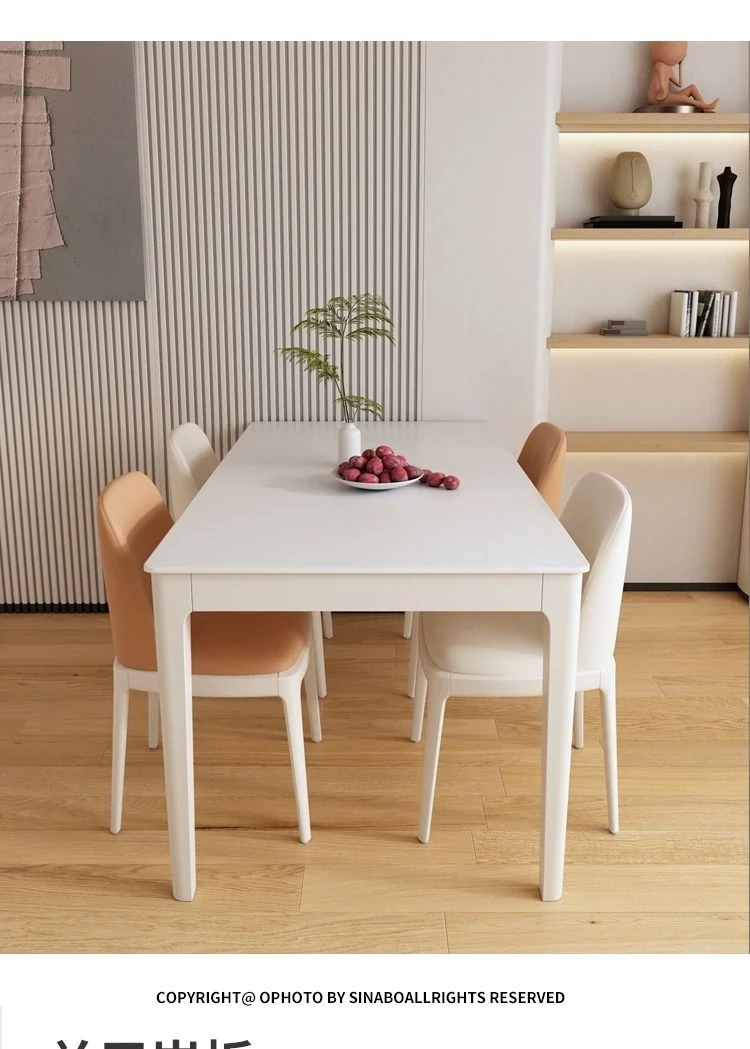 北欧風の光沢ある岩板ダイニングテーブル 小型新作 家庭用のラグジュアリーな食卓 濃厚クリームホワイトの無垢材テーブルと椅子のセットで、洗練された食事空間を演出します!