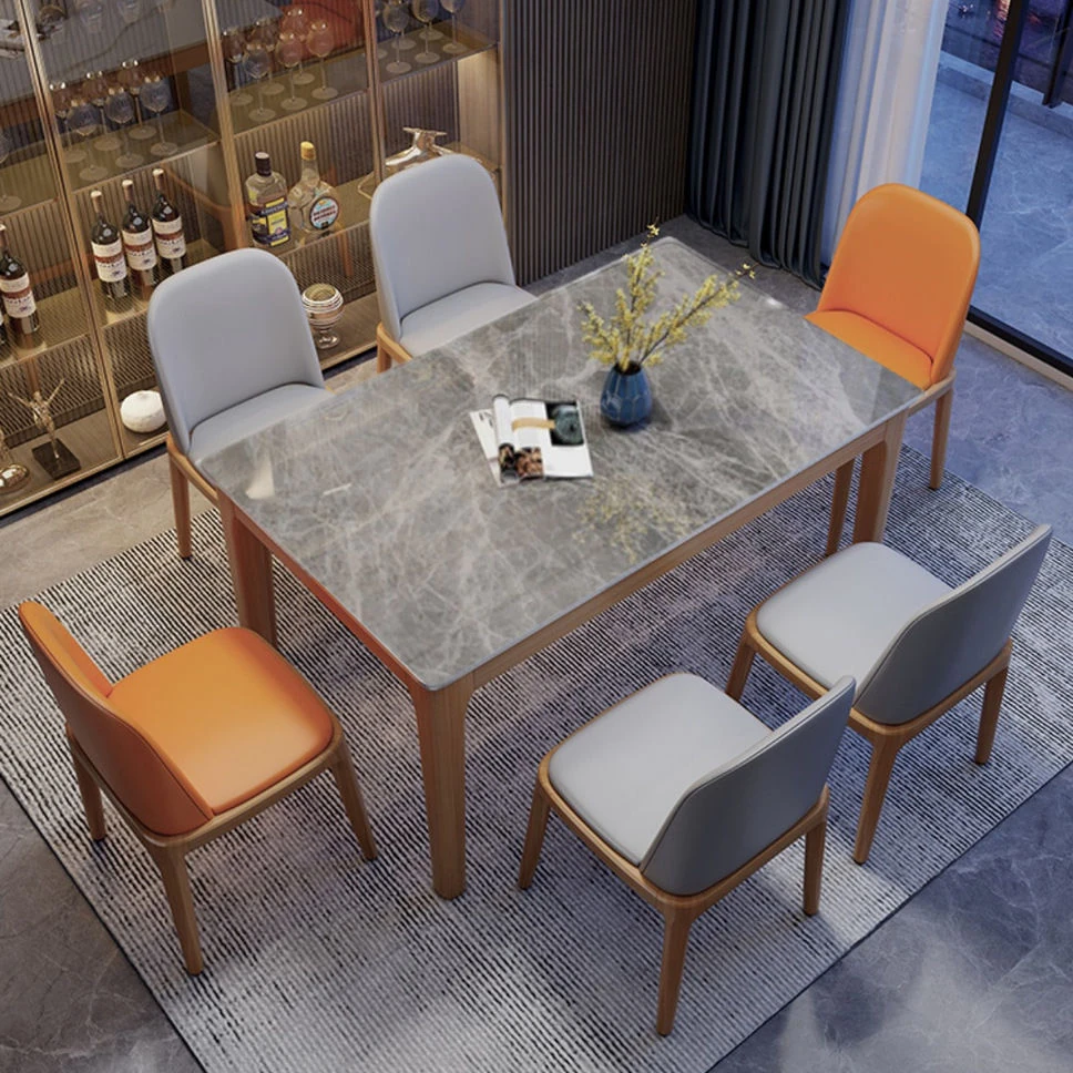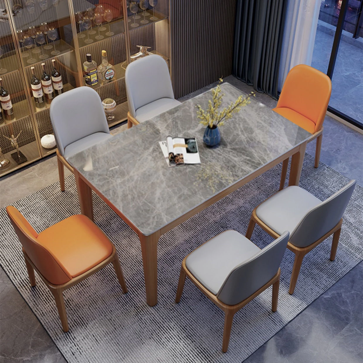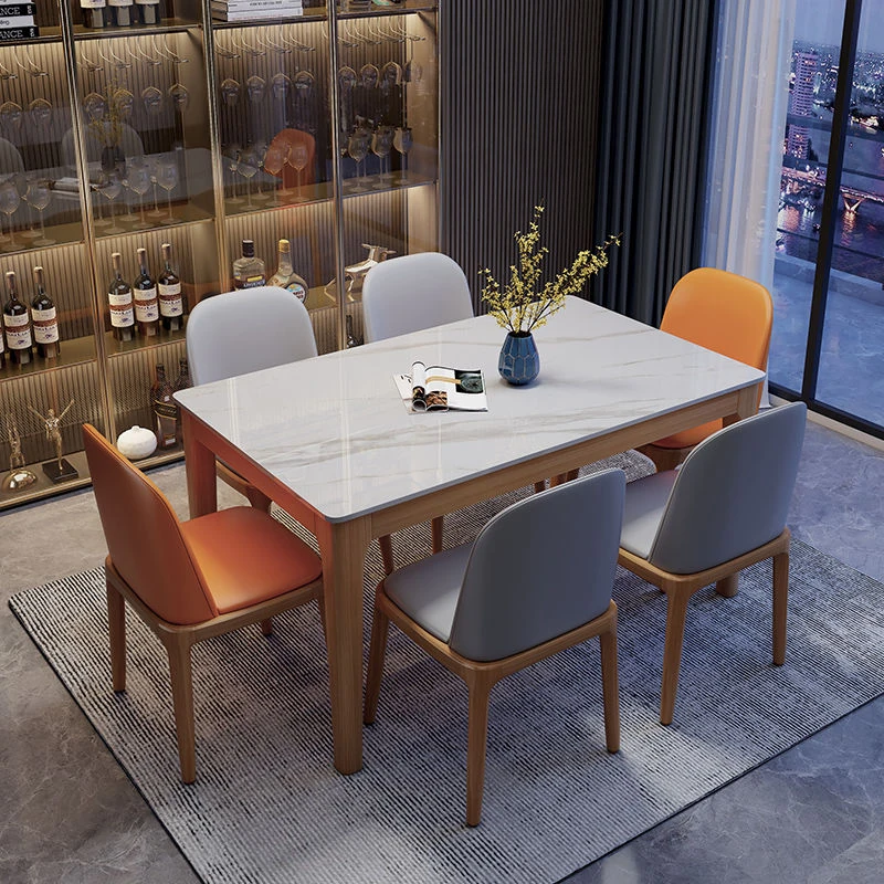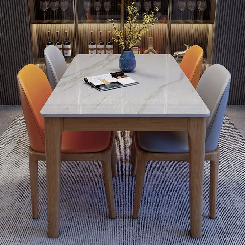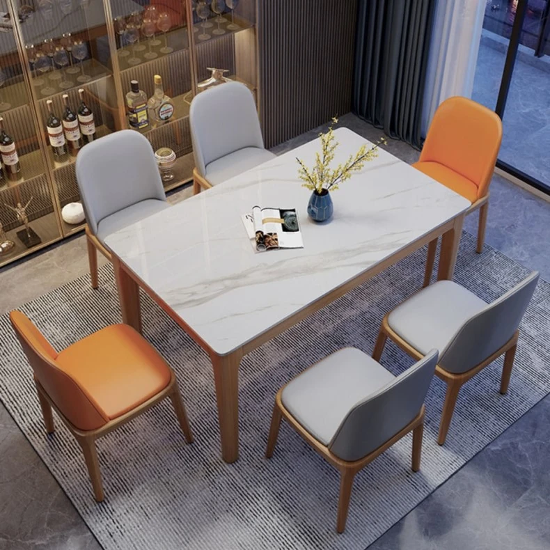 北欧風の光沢ある岩板ダイニングテーブル 小型新作 家庭用のラグジュアリーな食卓 濃厚クリームホワイトの無垢材テーブルと椅子のセットで、洗練された食事空間を演出します!