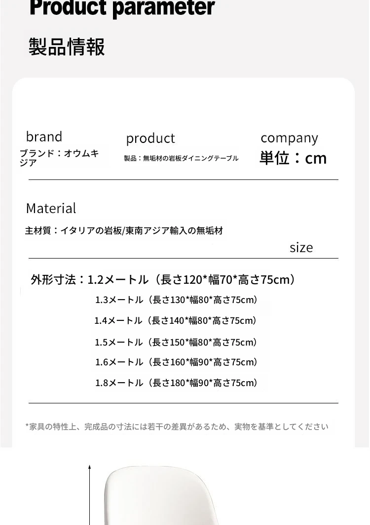 クリームホワイト+純白岩板【入居時設置なし】/1.8メートルダイニングテーブル+6椅子