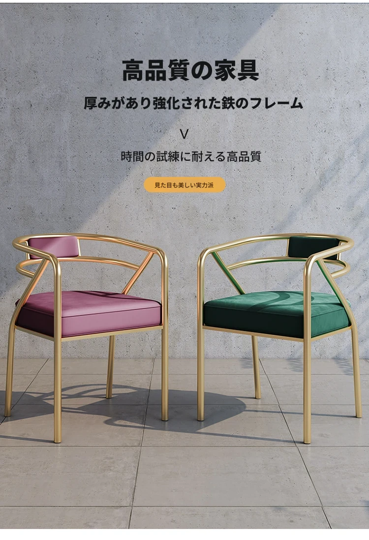 北欧スタイルのイタリアンラグジュアリー・ダイニングチェア|家庭用・背もたれ付き・お茶を楽しむためのテーブルチェア|モダンなレストラン・ホテル・オフィスにも最適なアイアン製椅子!