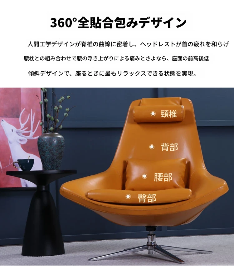 北欧デザインの皮革製回転リクライニングチェア、ラグジュアリーな一人掛けソファ。シンプルでスタイリッシュなトラチェアとスネイルチェアが、あなたのリビングを格上げします!