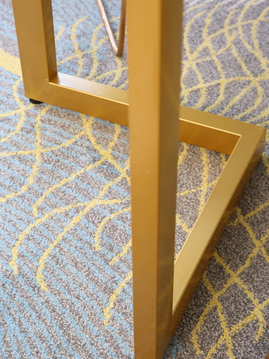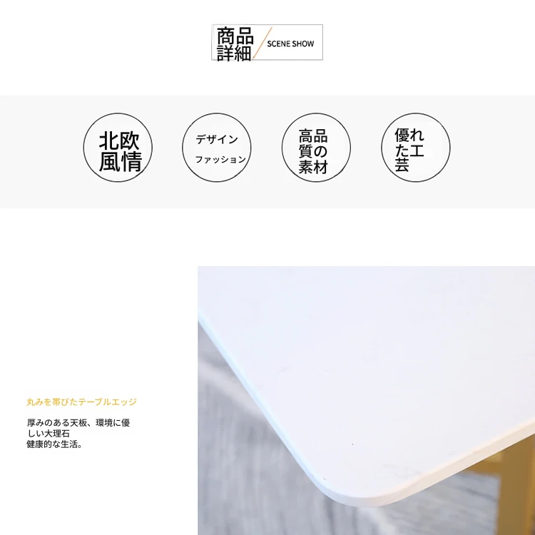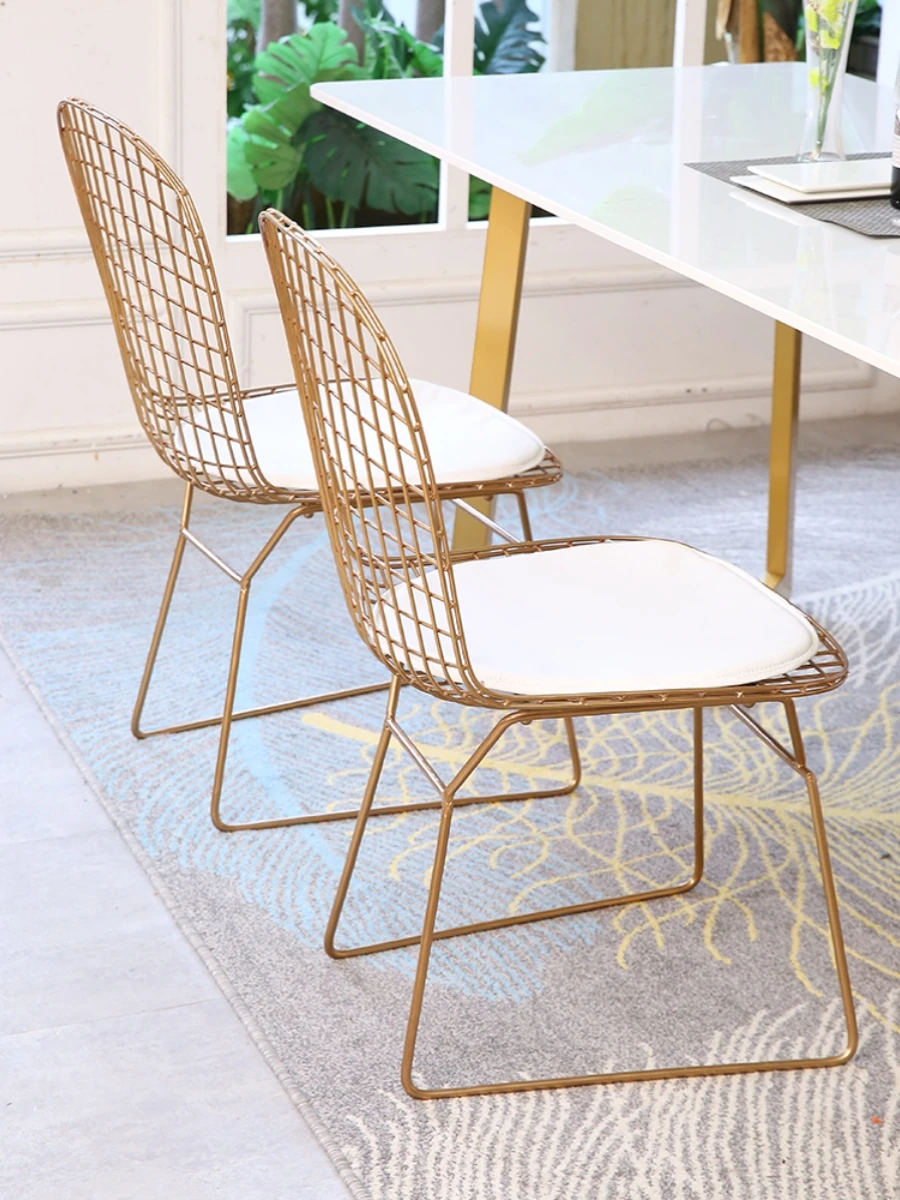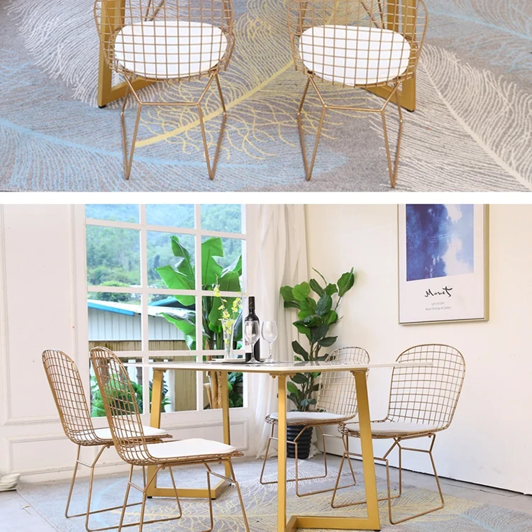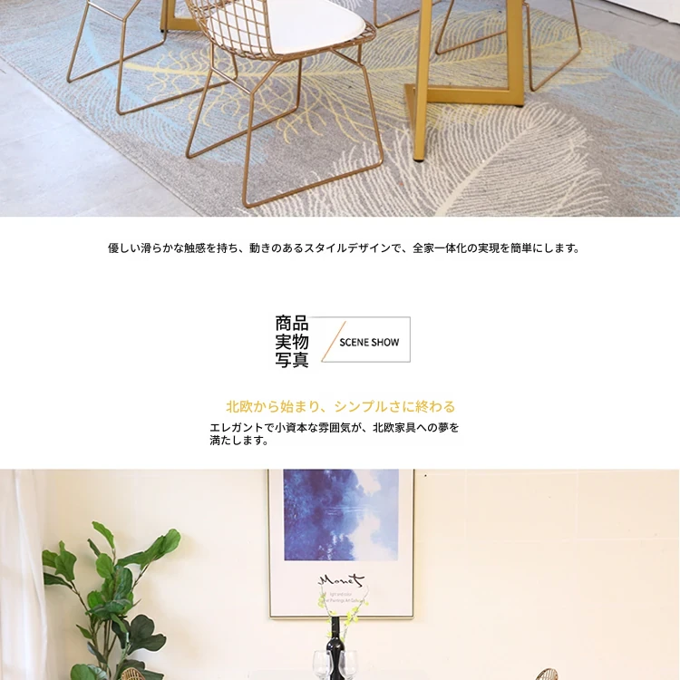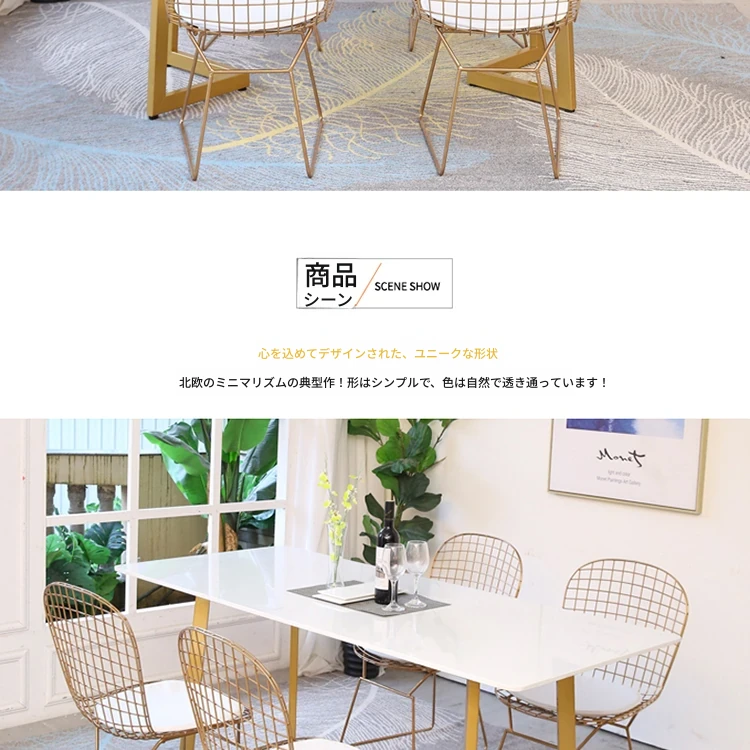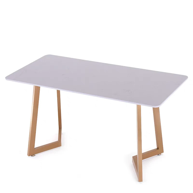 北欧スタイルの大理石ダイニングテーブル&チェアセット - ラグジュアリーな金色アイアンフレーム、コンパクトな長方形デザインで小さなリビングにもぴったり!おしゃれな食卓を演出します。