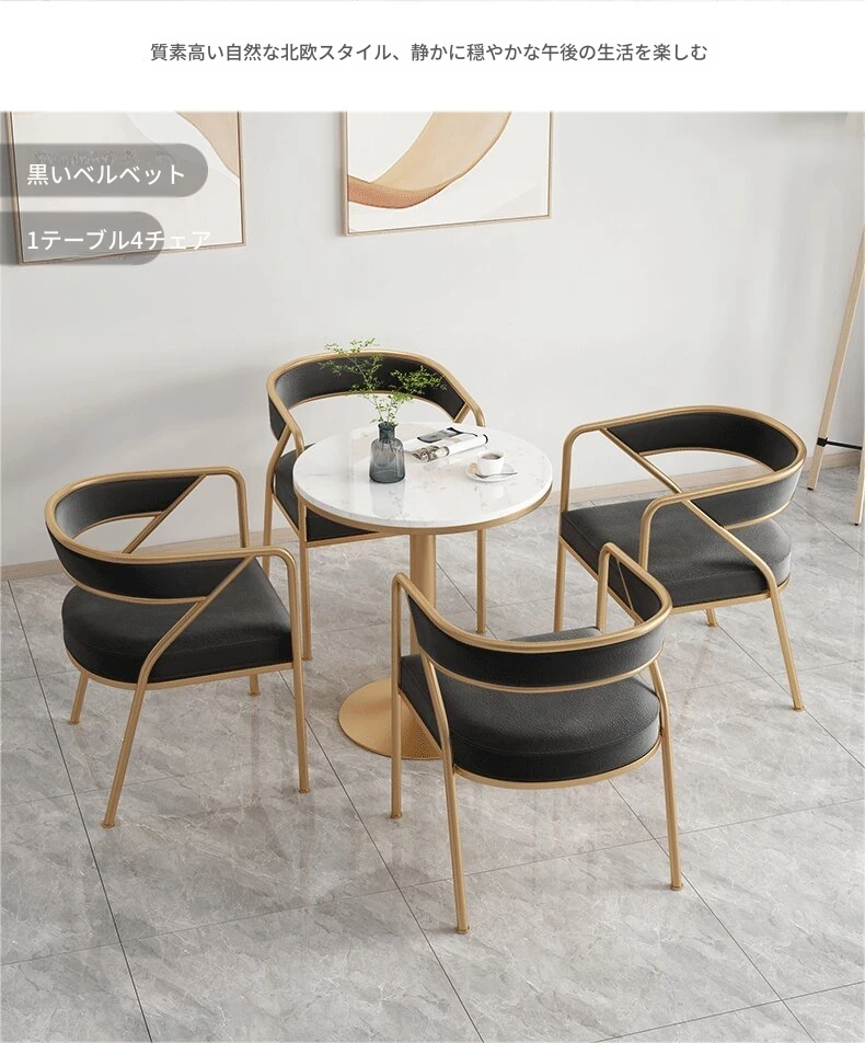 北欧スタイルのシンプルでリラックスできるカフェ&スイーツ・ミルクティー店に最適!おしゃれな西洋レストラン用テーブル&チェアセット、商談や接待にぴったりのインスタ映えするデザイン。