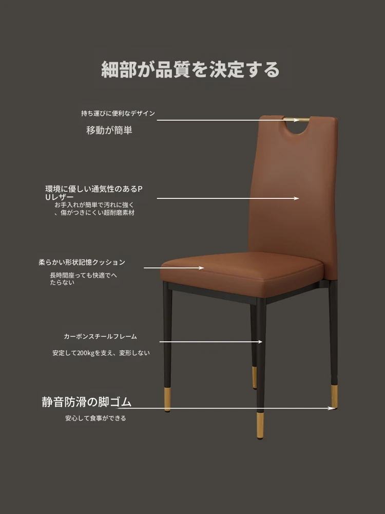 現代的シンプルでスタイリッシュなダイニングチェア、リラックスできる背もたれ付き。小型住宅にもぴったりの軽奢なデザイン。大理石テーブルと組み合わせて、洗練された食卓を演出します!