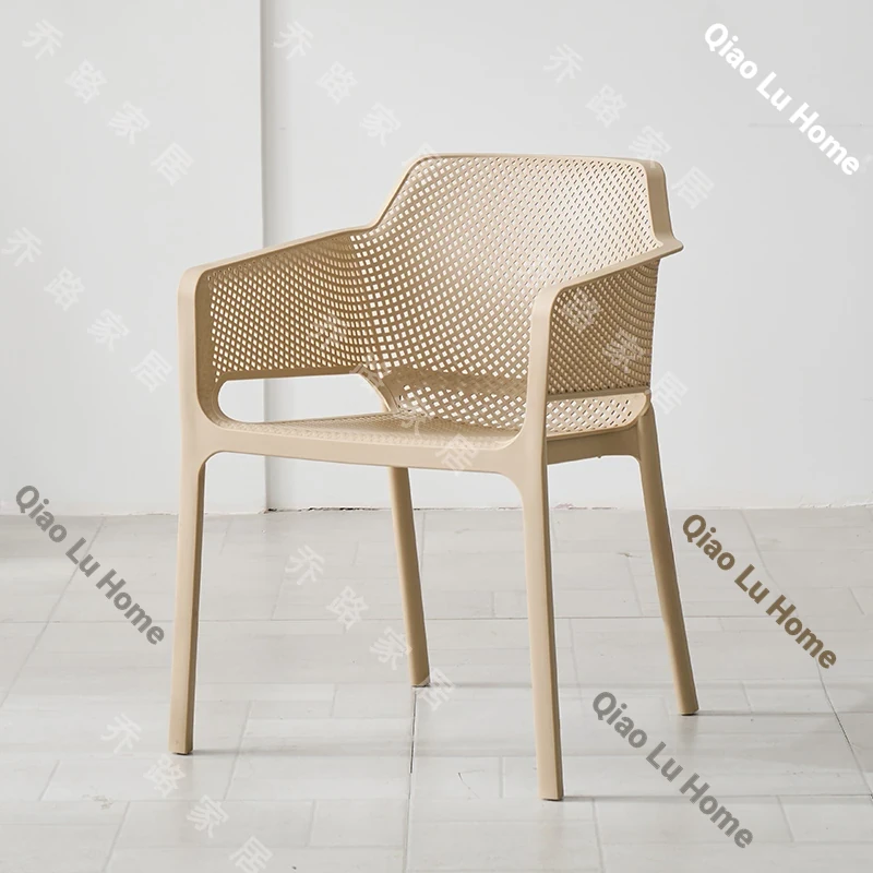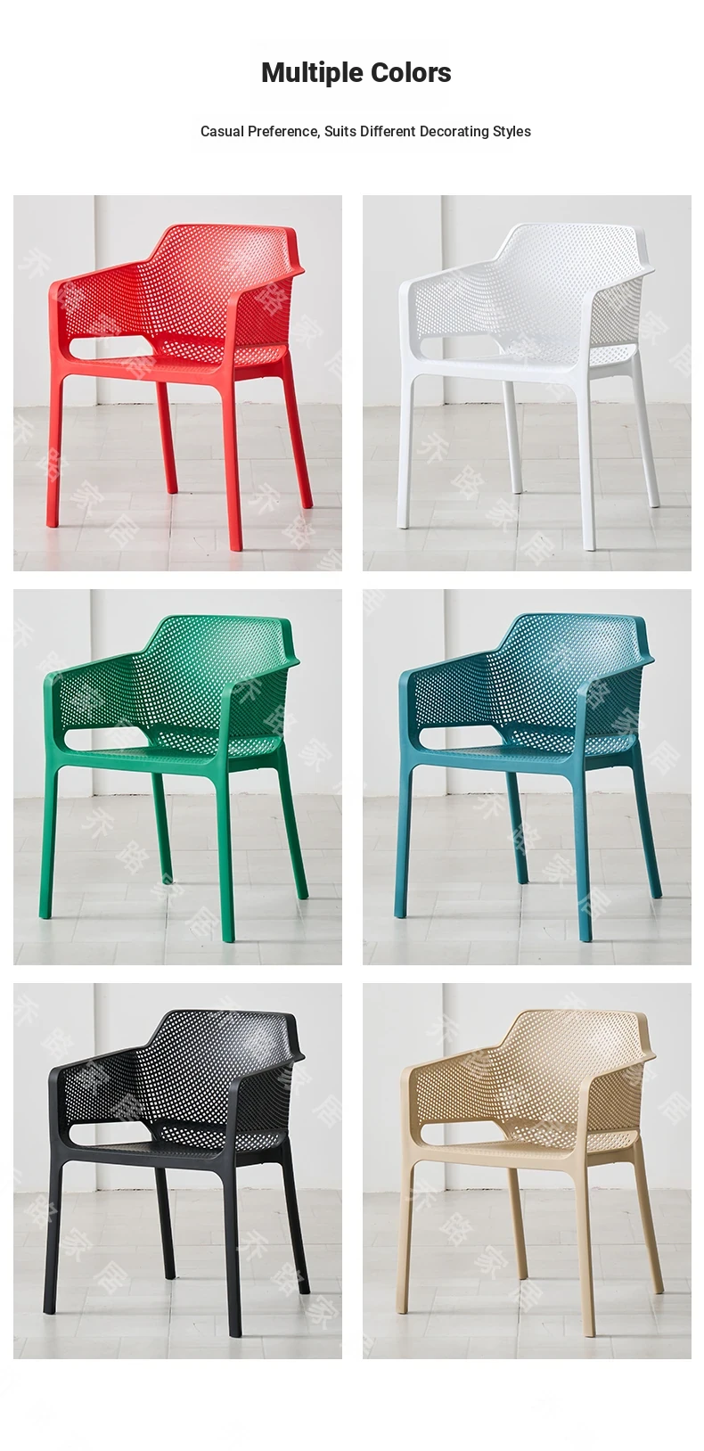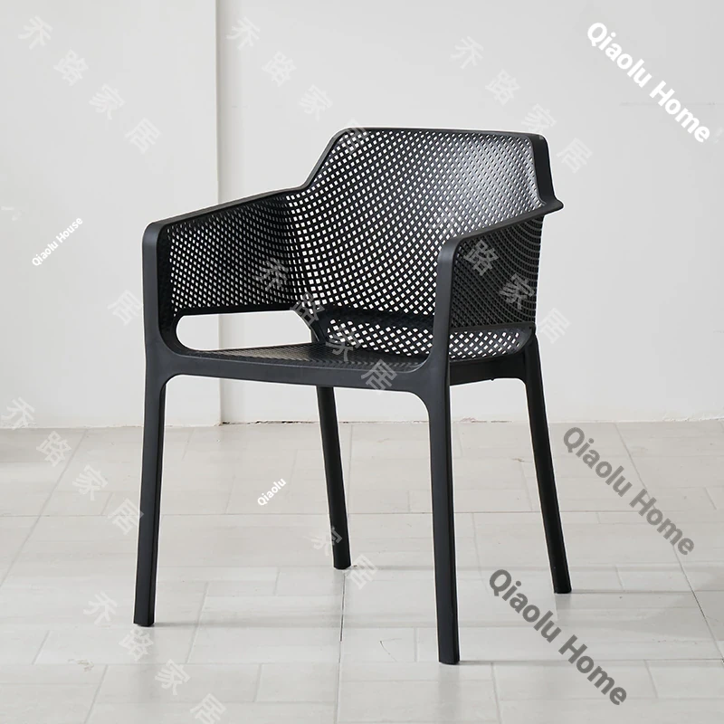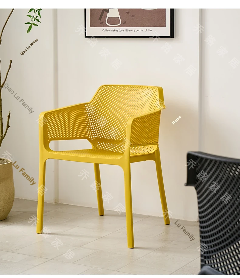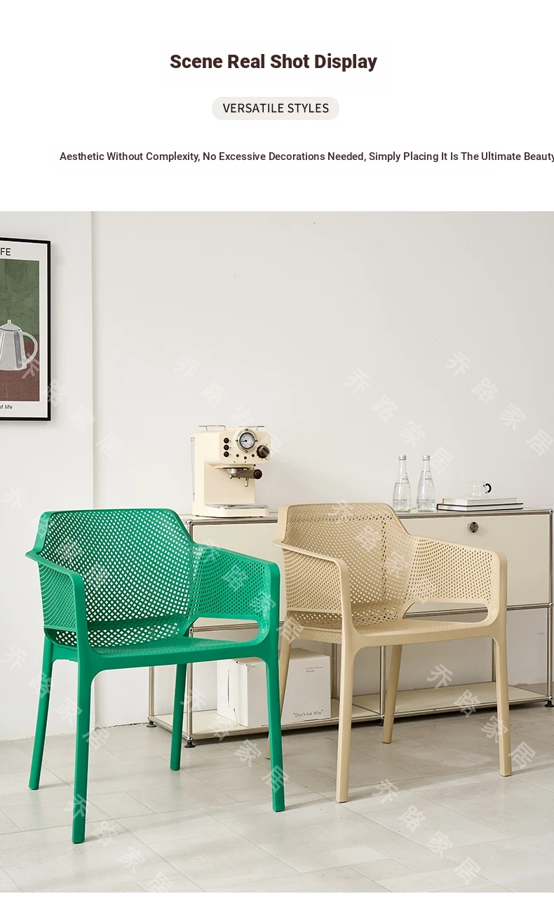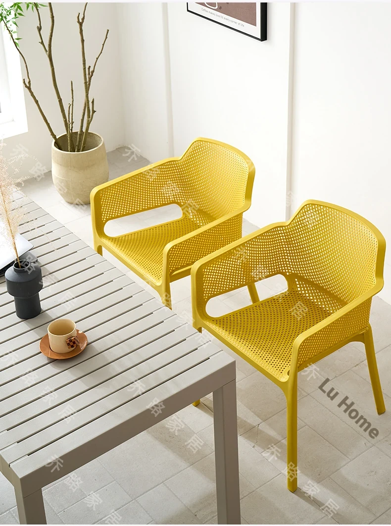 Nordic Minimalist Outdoor Plastic Chairs - Stackable Hollow Design Café Chairs with Armrests for Patio Dining - Perfect for Outdoor Spaces