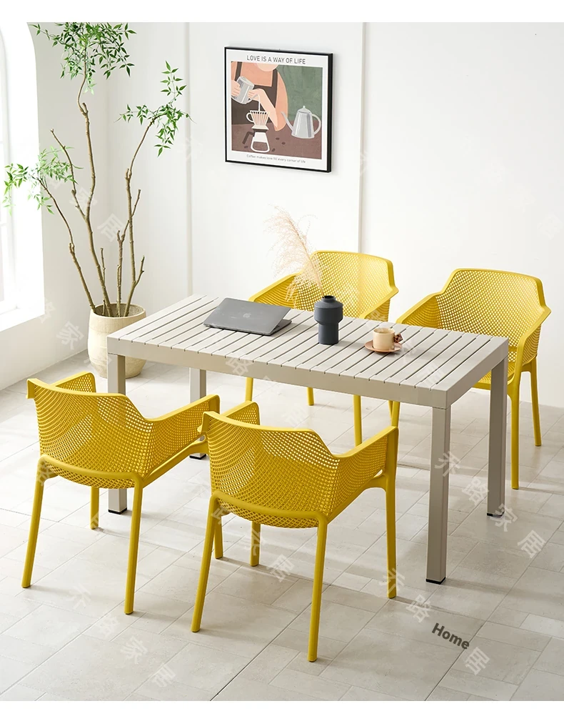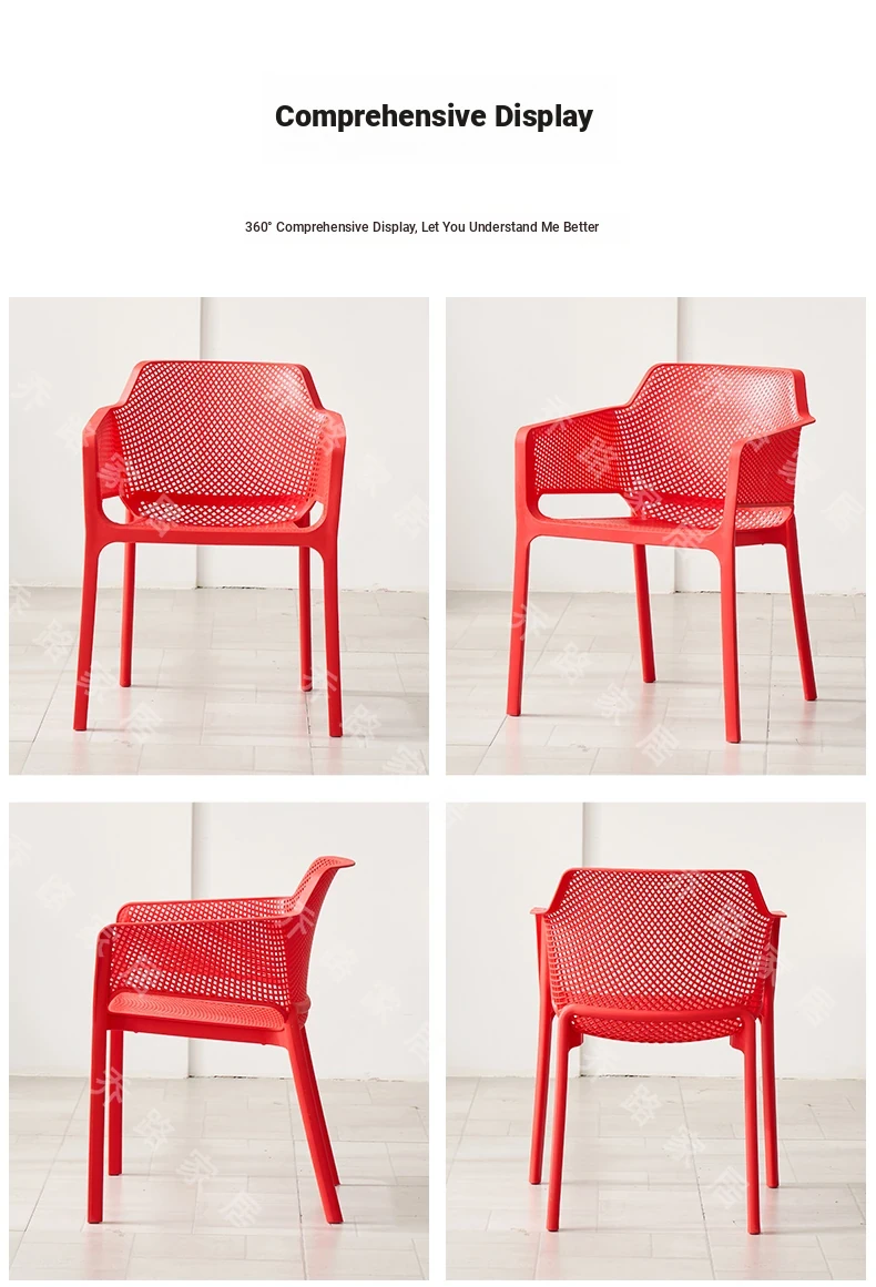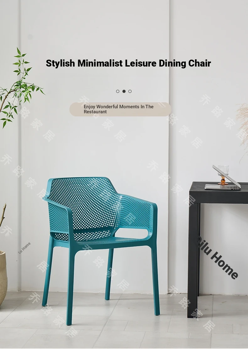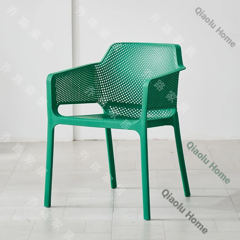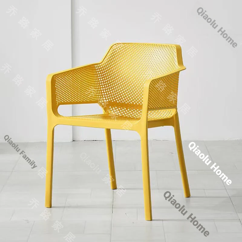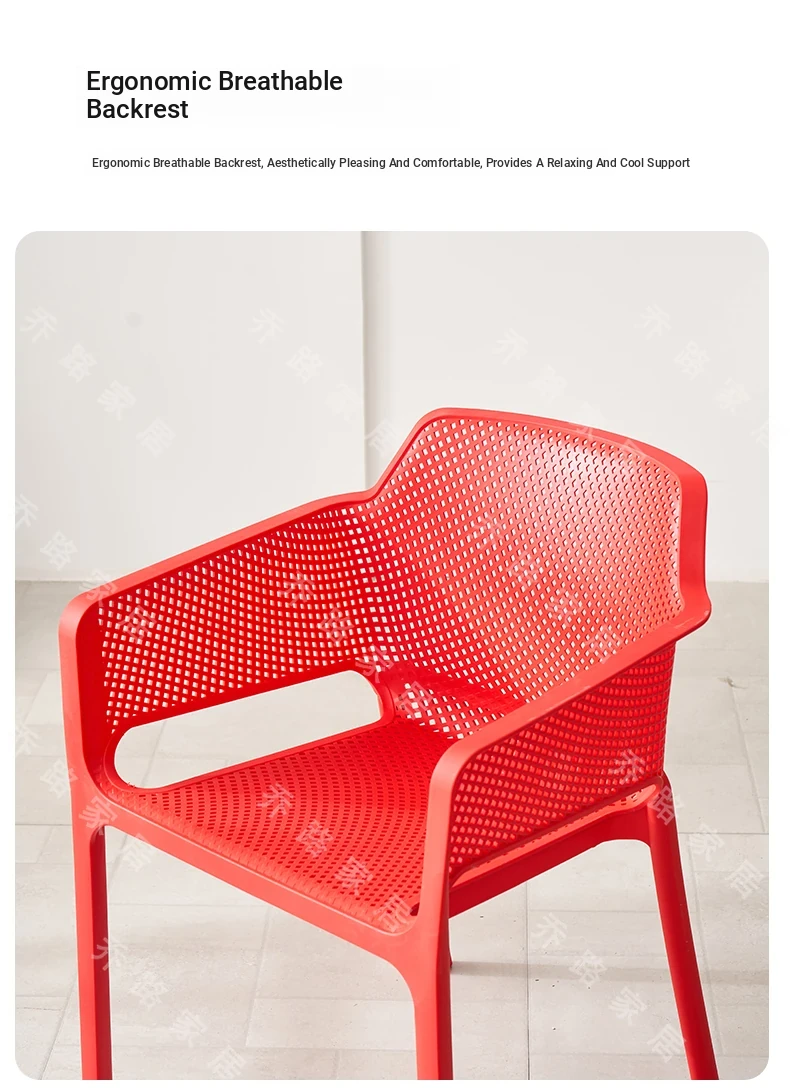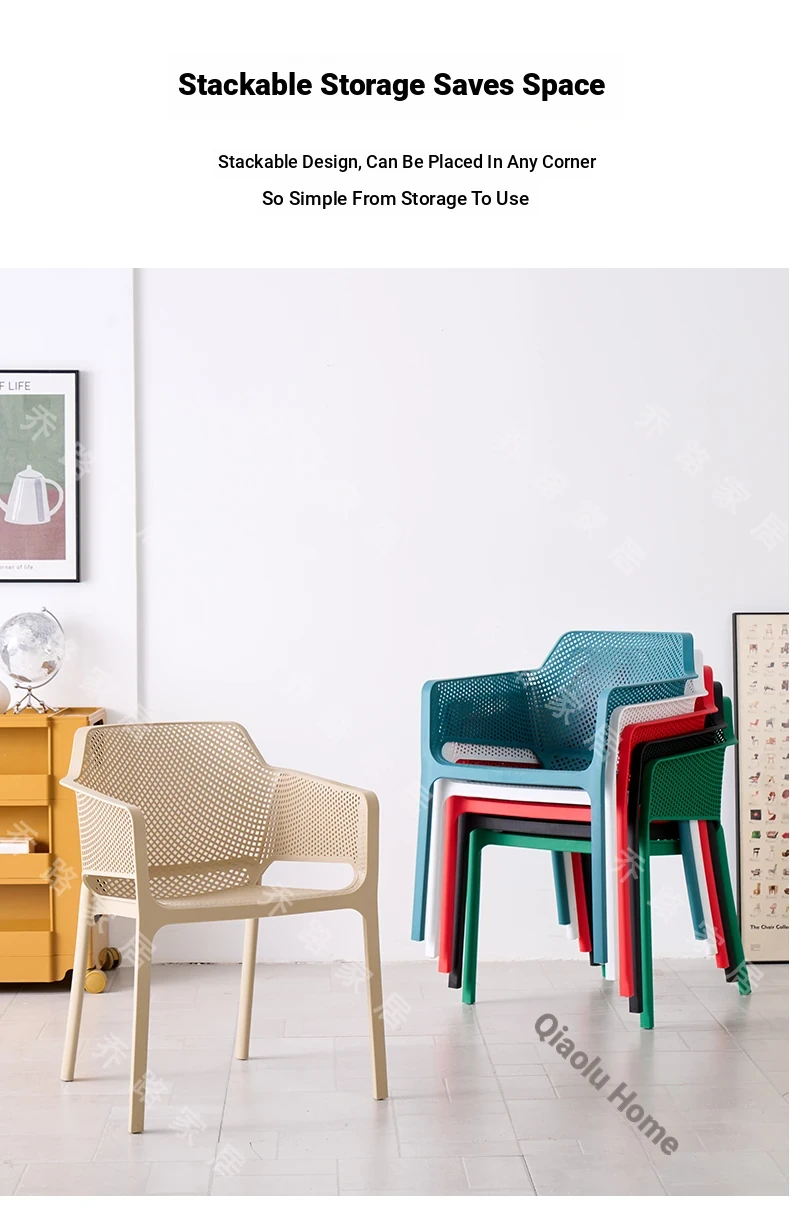 Nordic Minimalist Outdoor Plastic Chairs - Stackable Hollow Design Café Chairs with Armrests for Patio Dining - Perfect for Outdoor Spaces