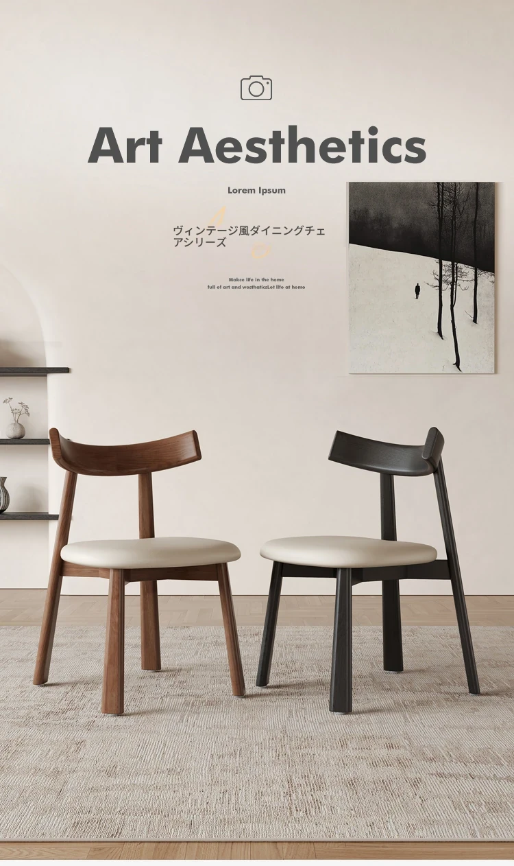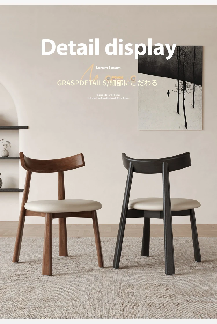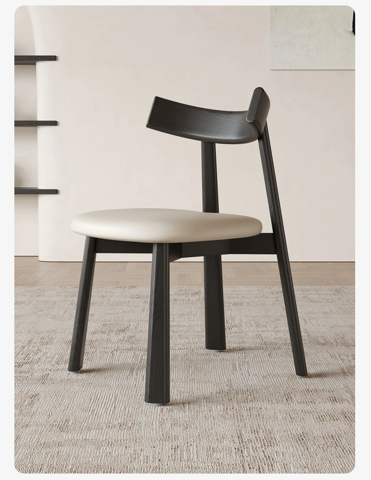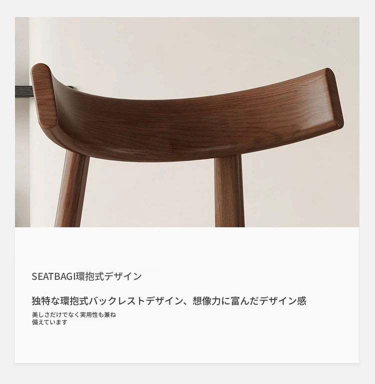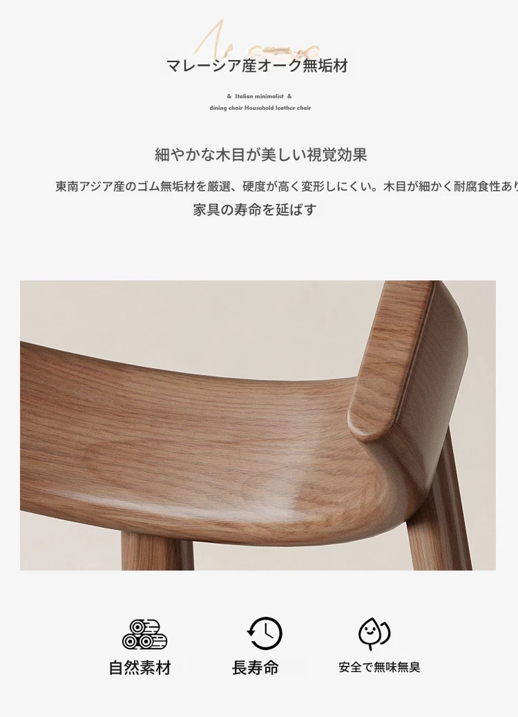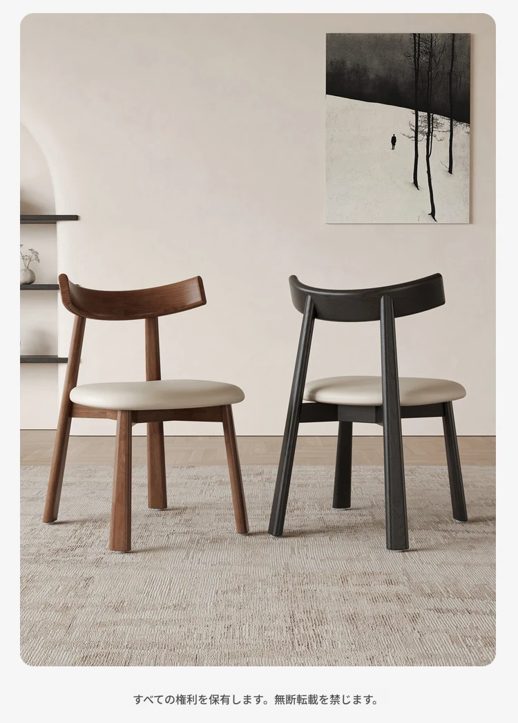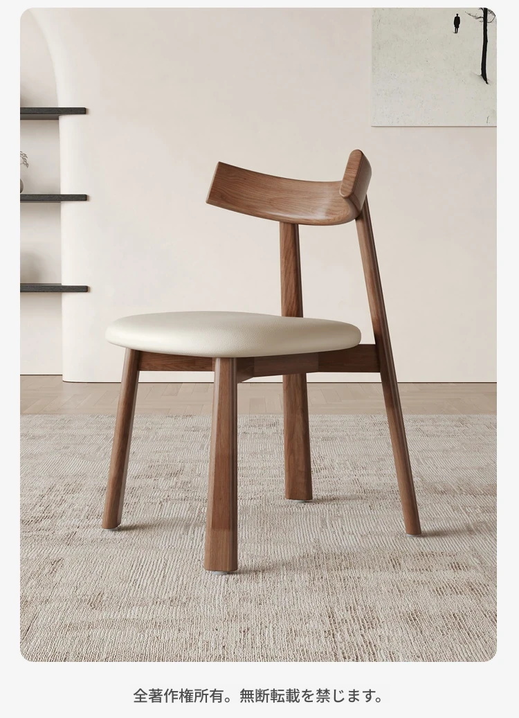 北欧デザインのシンプルな無垢材ダイニングチェア - コーヒーショップや家庭でのリラックスタイムに最適!背もたれ付きで快適な座り心地、スタイリッシュな原木の温もりをお楽しみください。