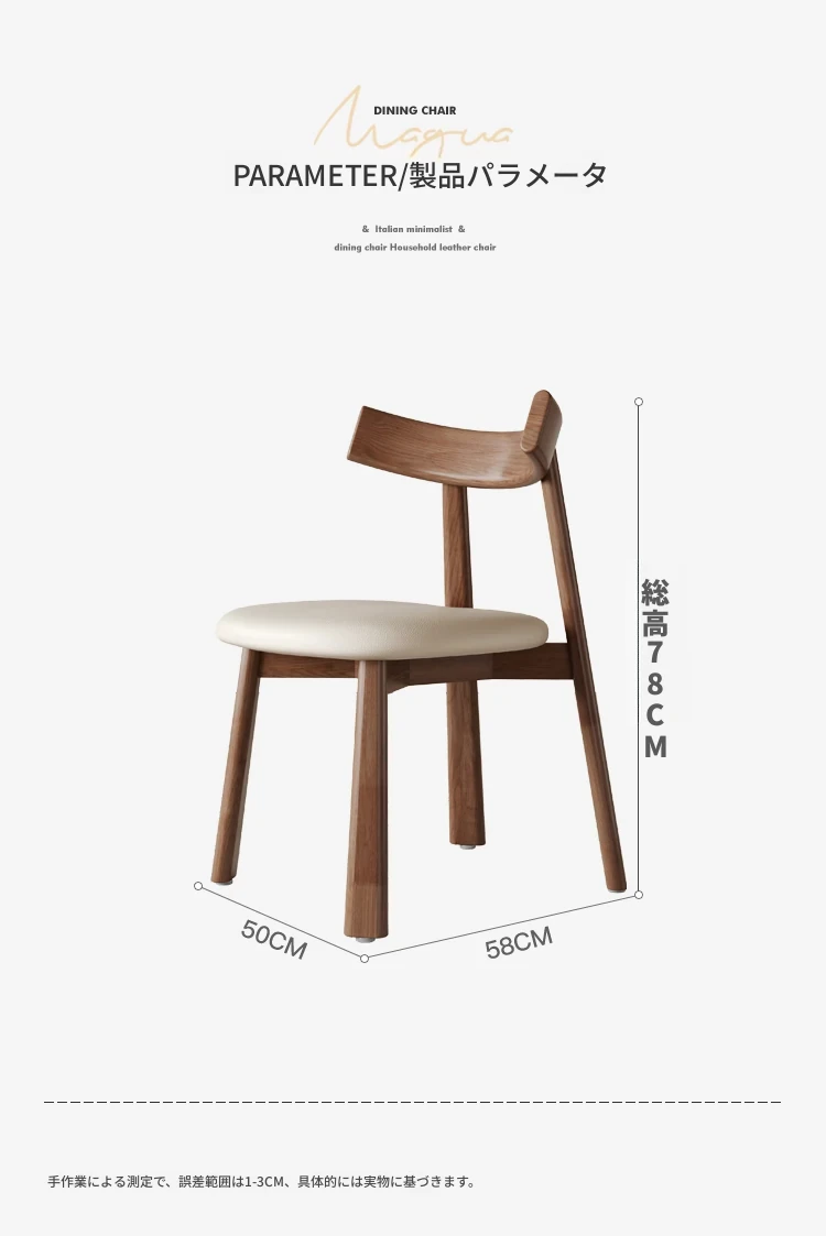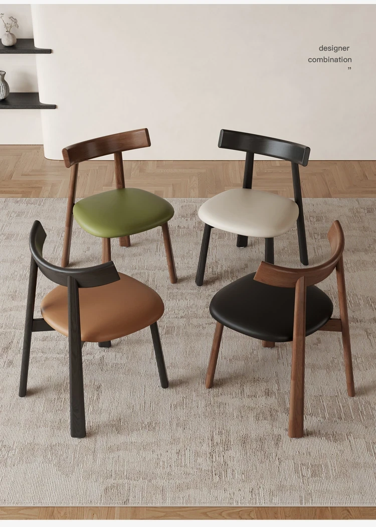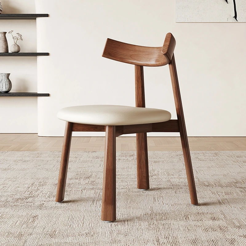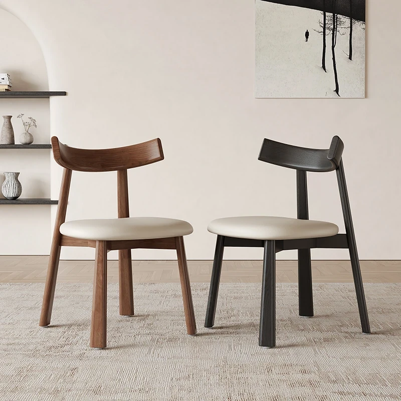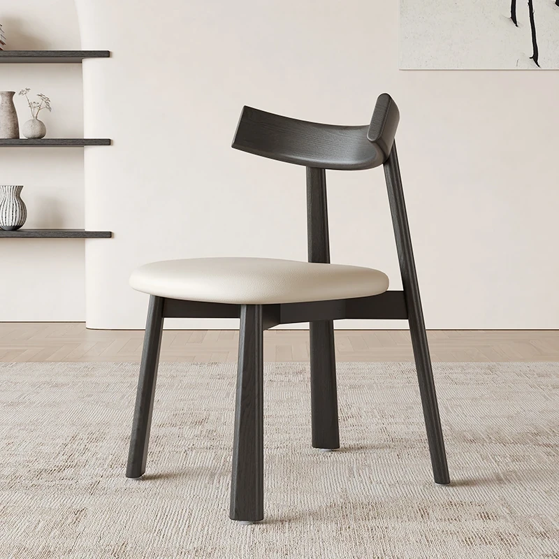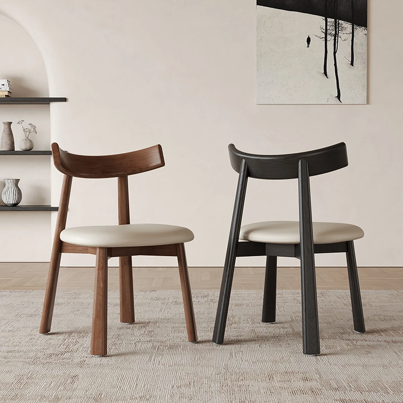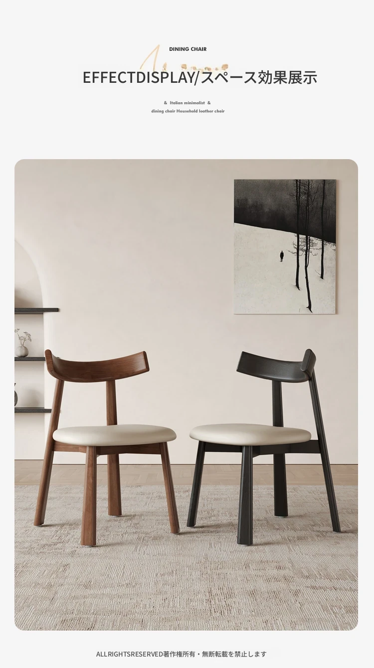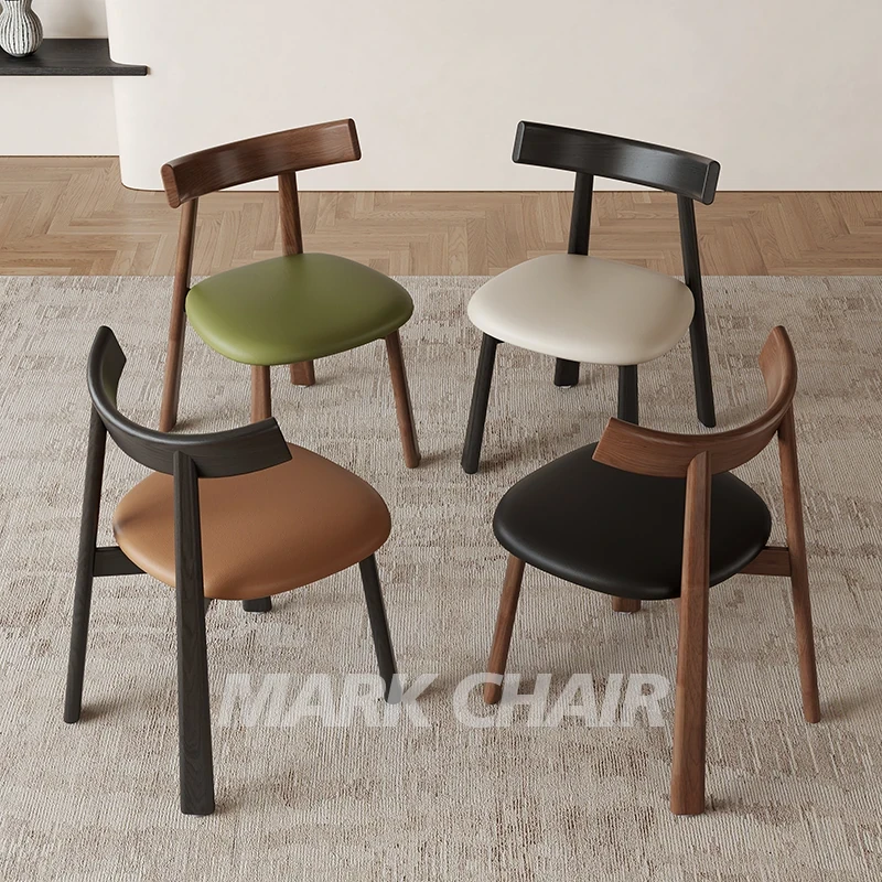 北欧デザインのシンプルな無垢材ダイニングチェア - コーヒーショップや家庭でのリラックスタイムに最適!背もたれ付きで快適な座り心地、スタイリッシュな原木の温もりをお楽しみください。