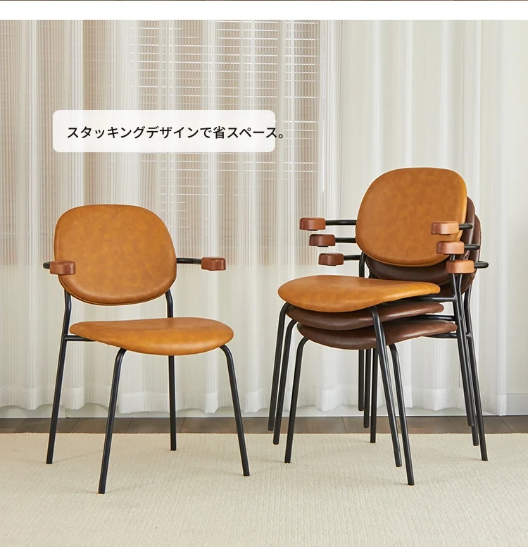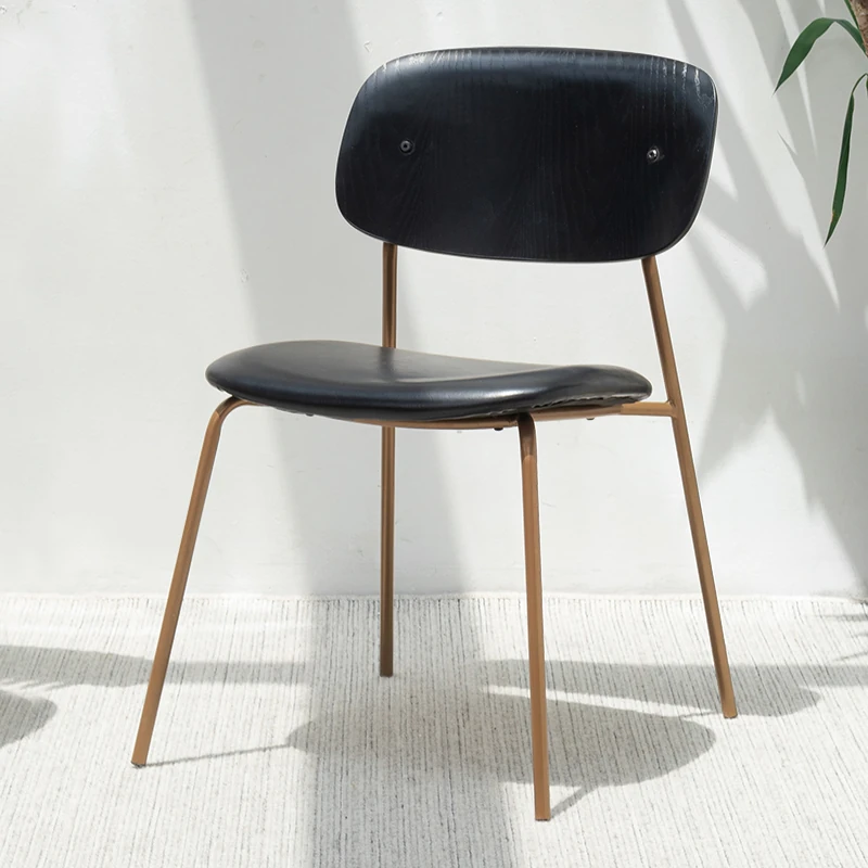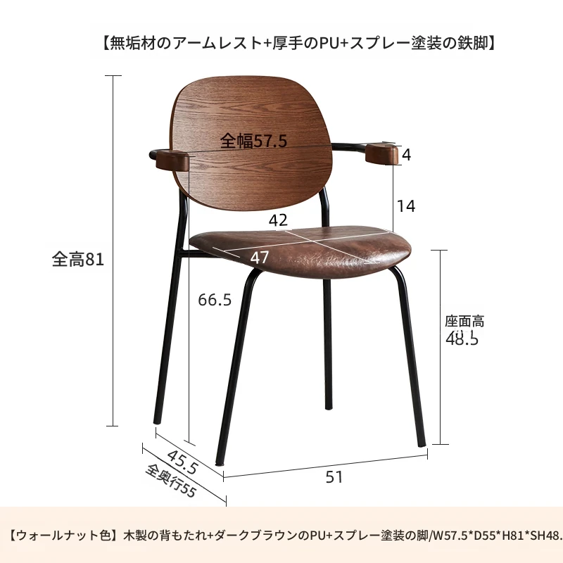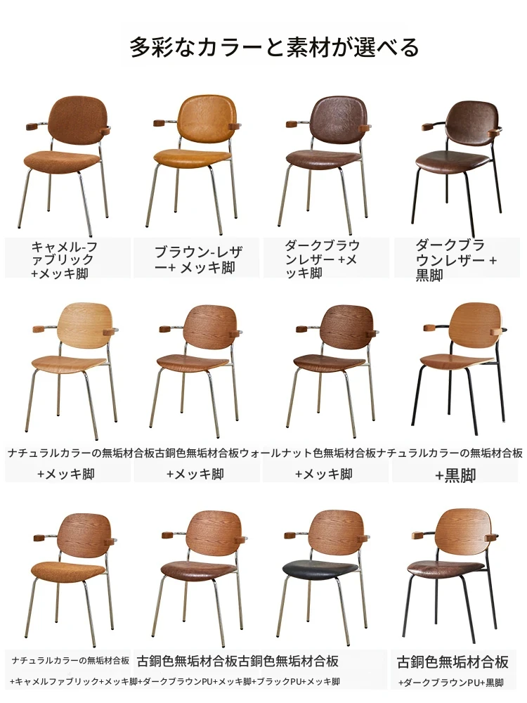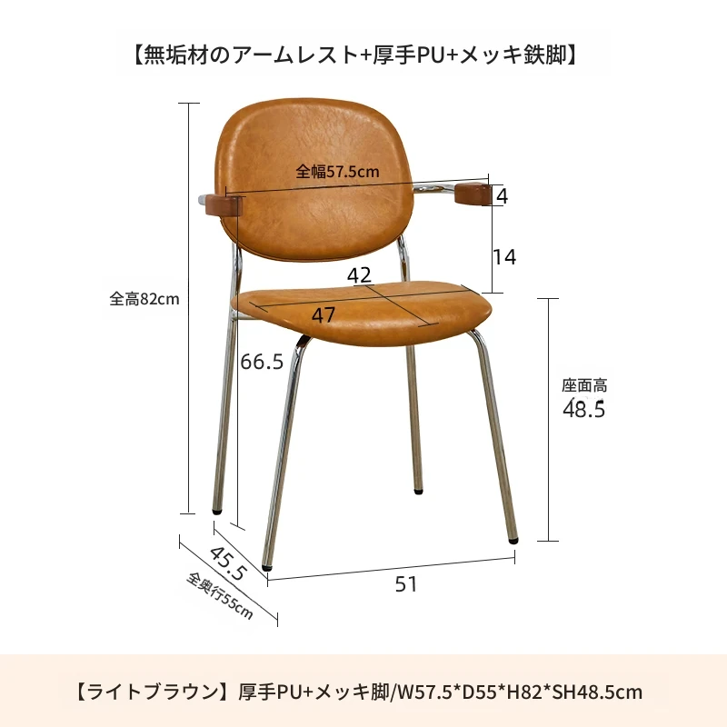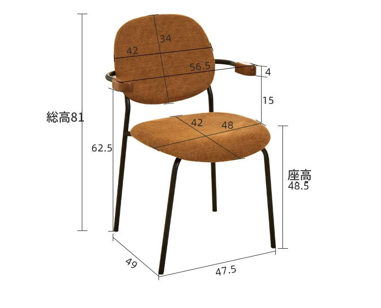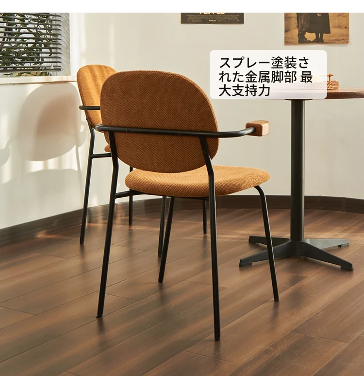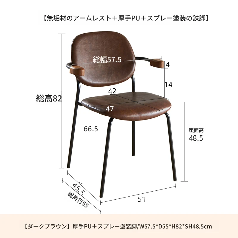 アームレストなし浅古銅色背もたれ茶色クッションスプレー塗装鉄脚