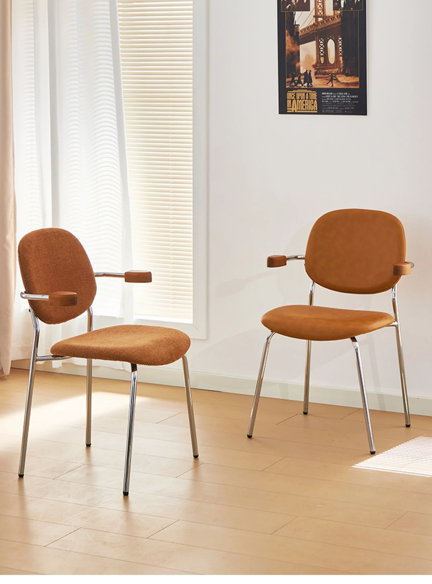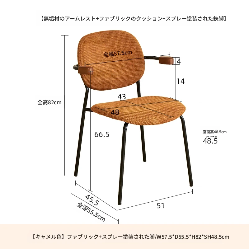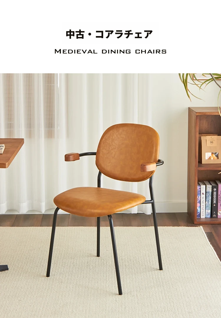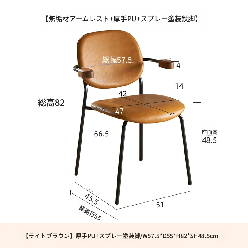 アームレスト付き浅古銅色背もたれ茶色クッションスプレー塗装鉄脚