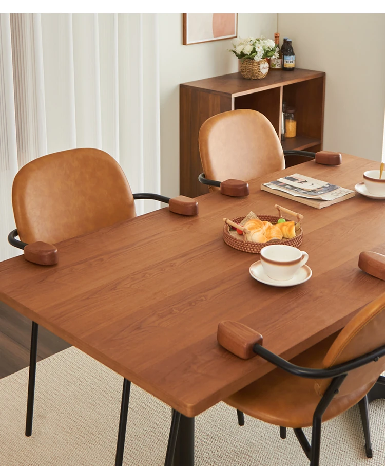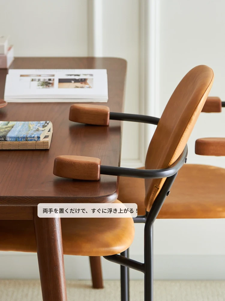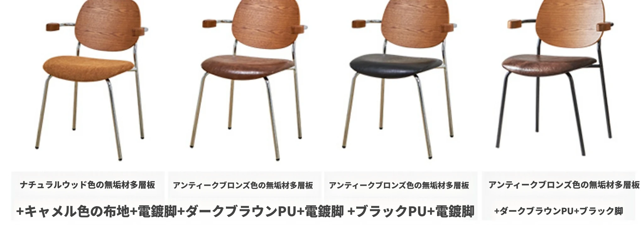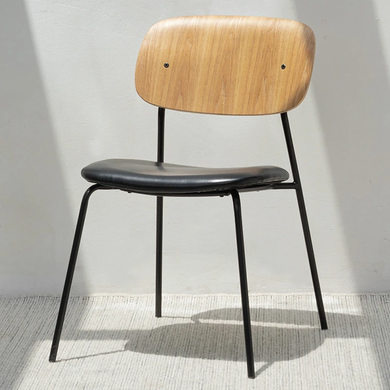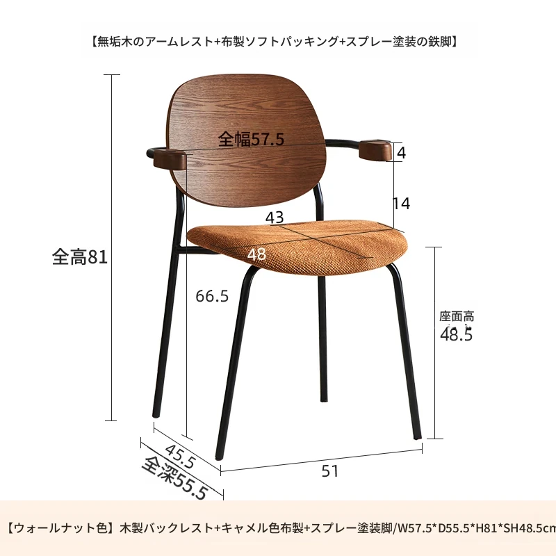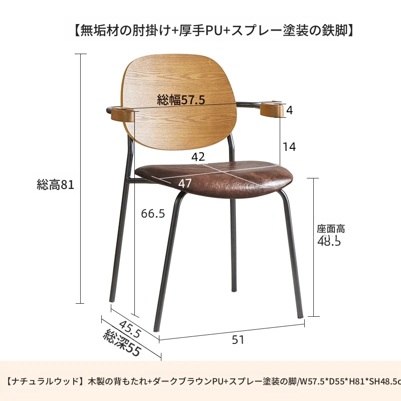 アームレストなしナチュラルウッド色背もたれ黒色クッションスプレー塗装鉄脚