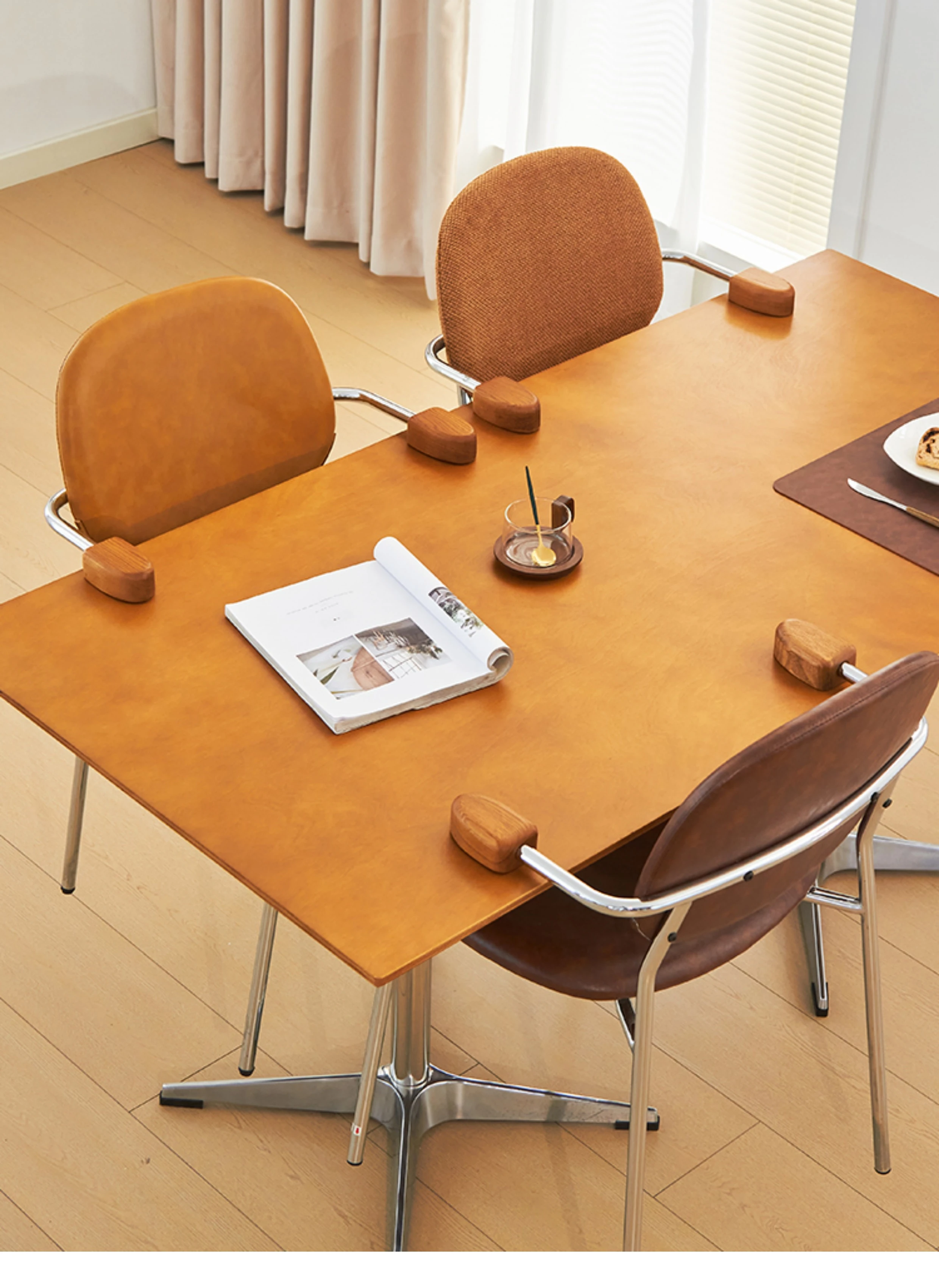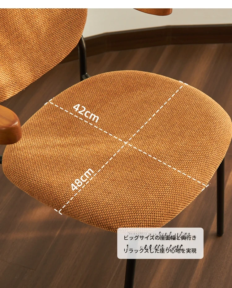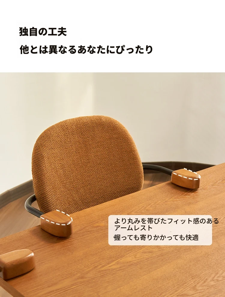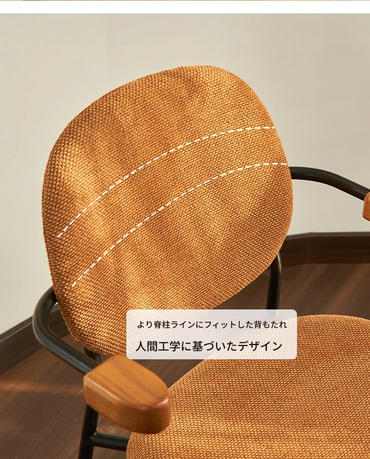 ナチュラルウッド色木製背もたれキャメル色ファブリッククッション